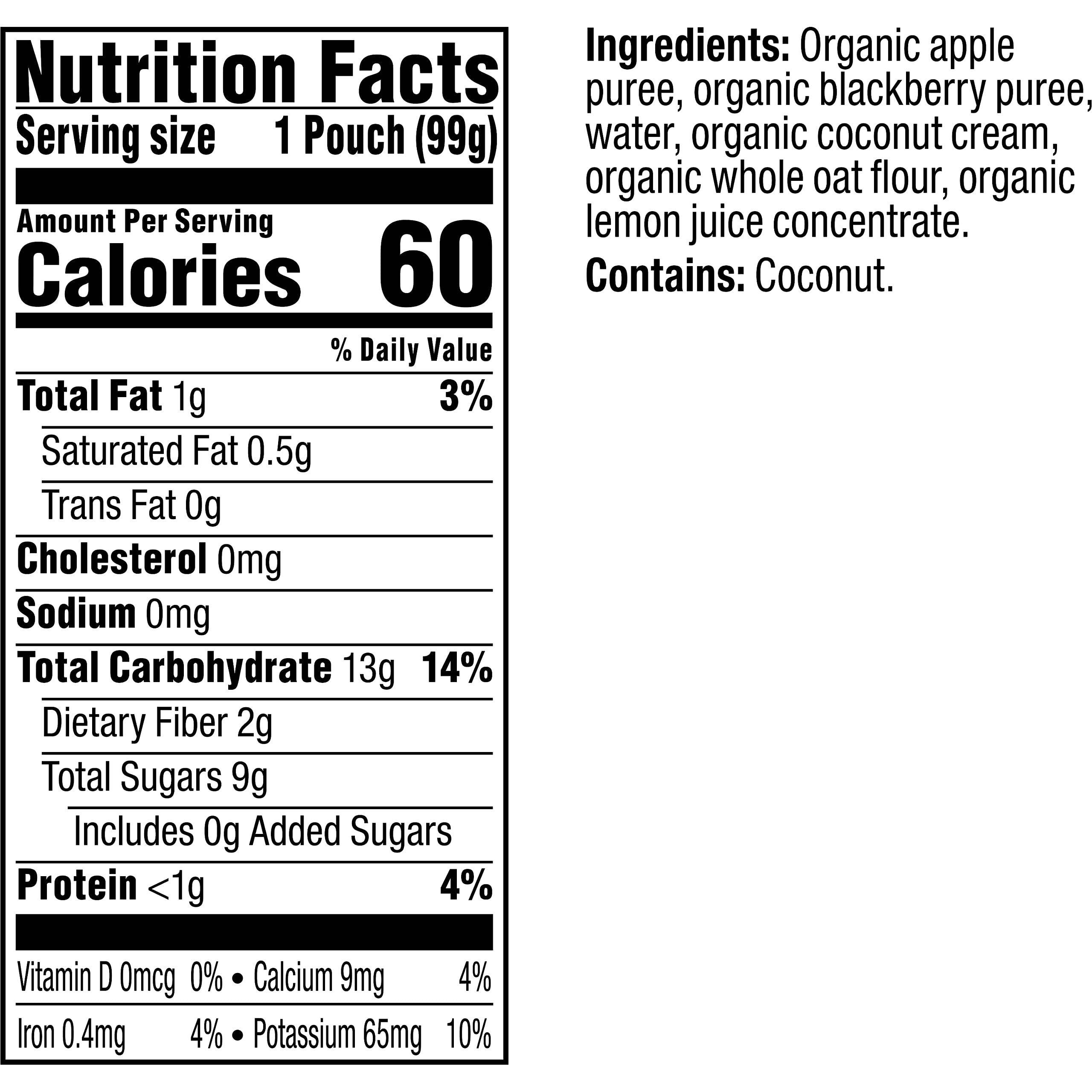 MADE WITH NATURAL FLAVORS: Contains organic apple puree, organic blackberry puree, organic coconut cream, and organic whole oat flour