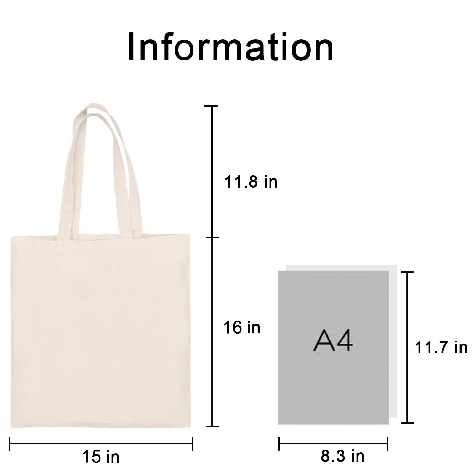 Size: 15 x 15.7 inch, long handle approx 11 inch. The storage space of this large tote bag is big enough for all your daily belongings.
