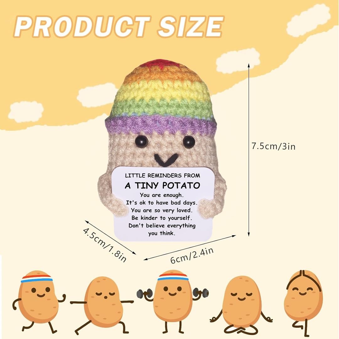 Funny Product: Our funny positive knitted doll is very cute, and the words in the card are inspirational. You will happier if you see the doll when you are happy, while it will make you happy when youβre upset. The positive potato doll will accompany forever.