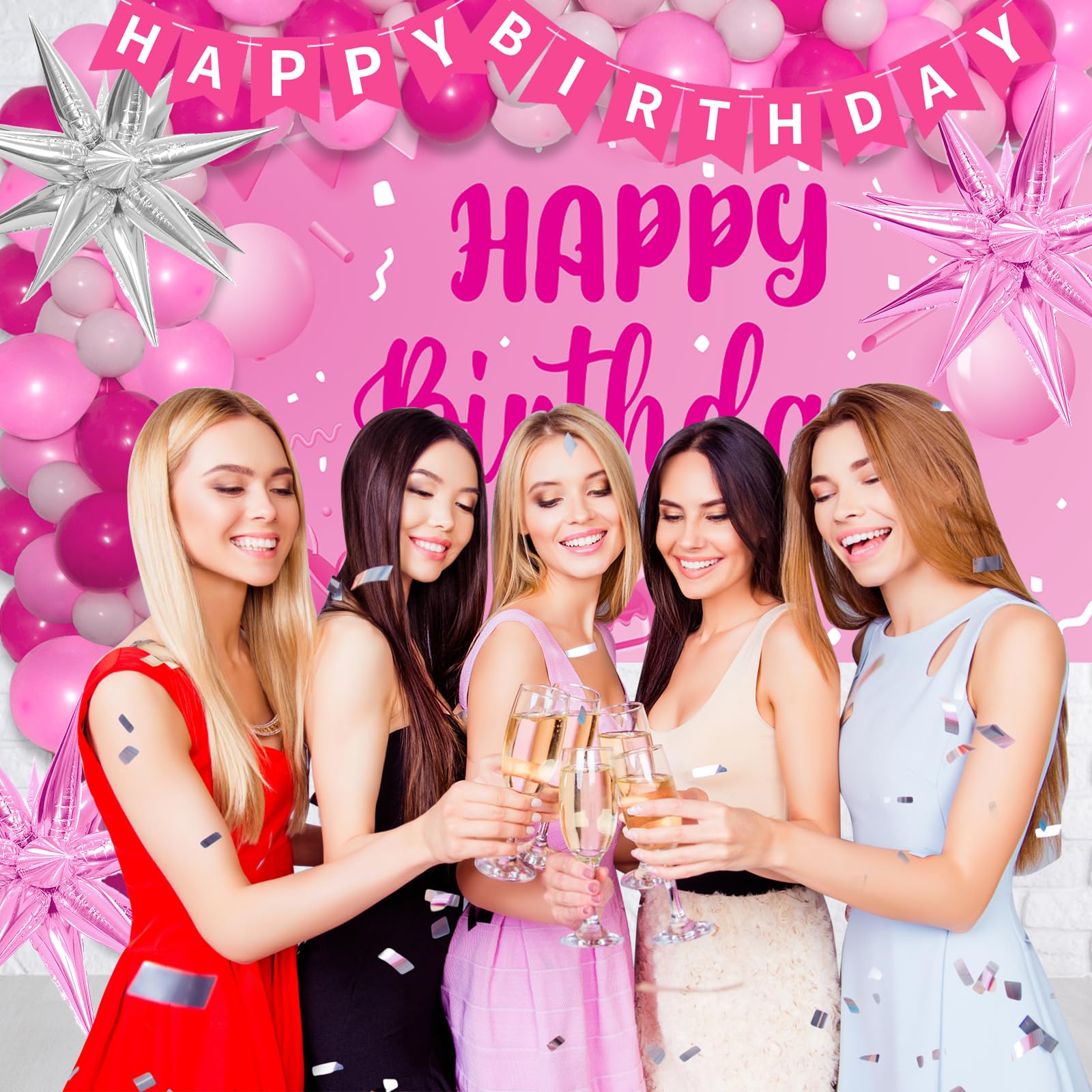 High Quality Balloons --- Thick and strong latex balloons are odorless, non-toxic and sturdy, make it safe to use. Pink and silver foil star balloons make your party more stylish. Fabulous pink happy birthday decorations for women girls 15th 16th 18th 20th 21st 30th 35th 40th 50th etc.