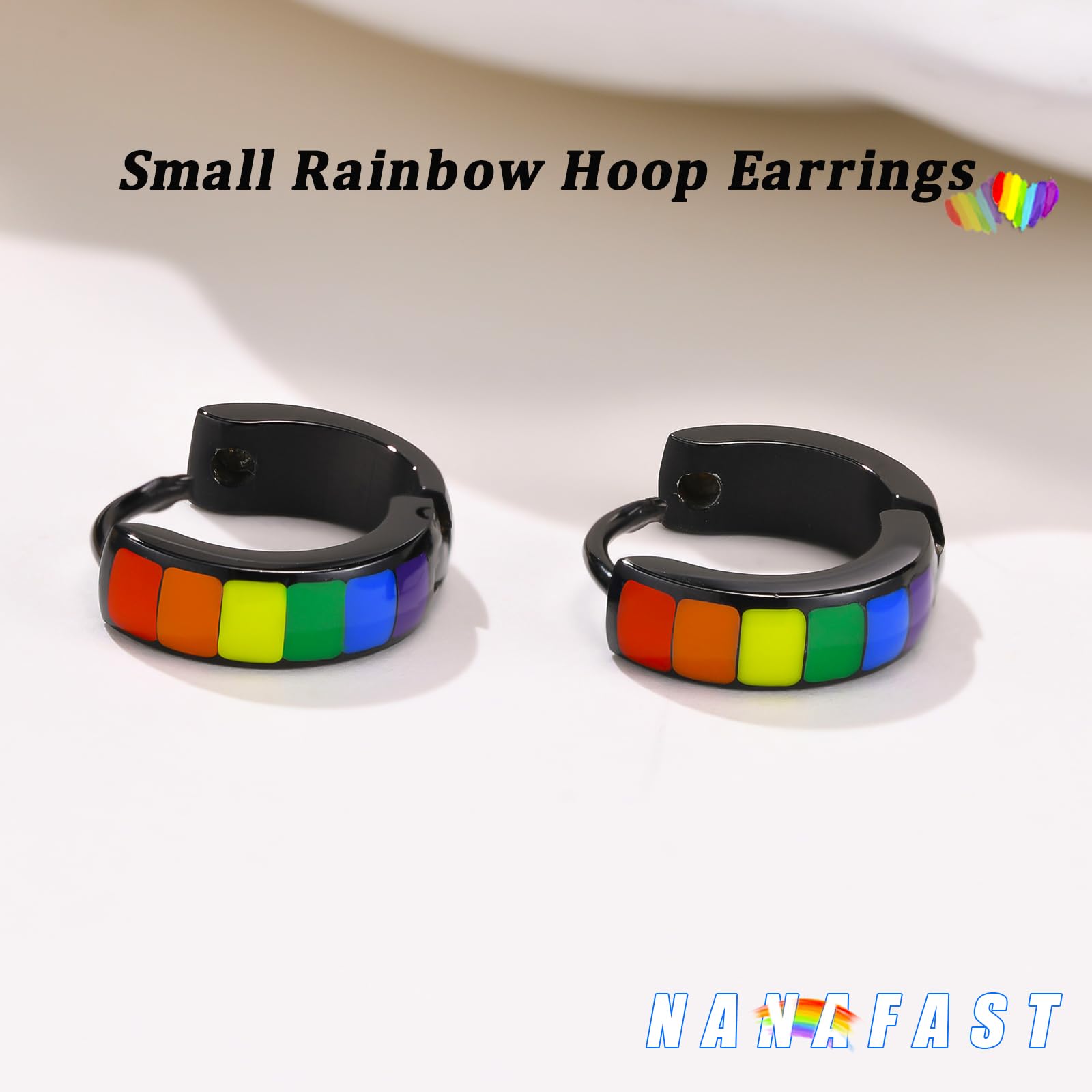 Rainbow Pride Earrings: Show off your pride with Rainbow hoop earrings in iconic lgbtq colors. Whether you're out and proud or still discovering your identity, these LGBT hoop earrings can help express your pride. These LGBT pride earrings make a statement that love is love, perfect for pride month, LGBT community, parades or any pride events.