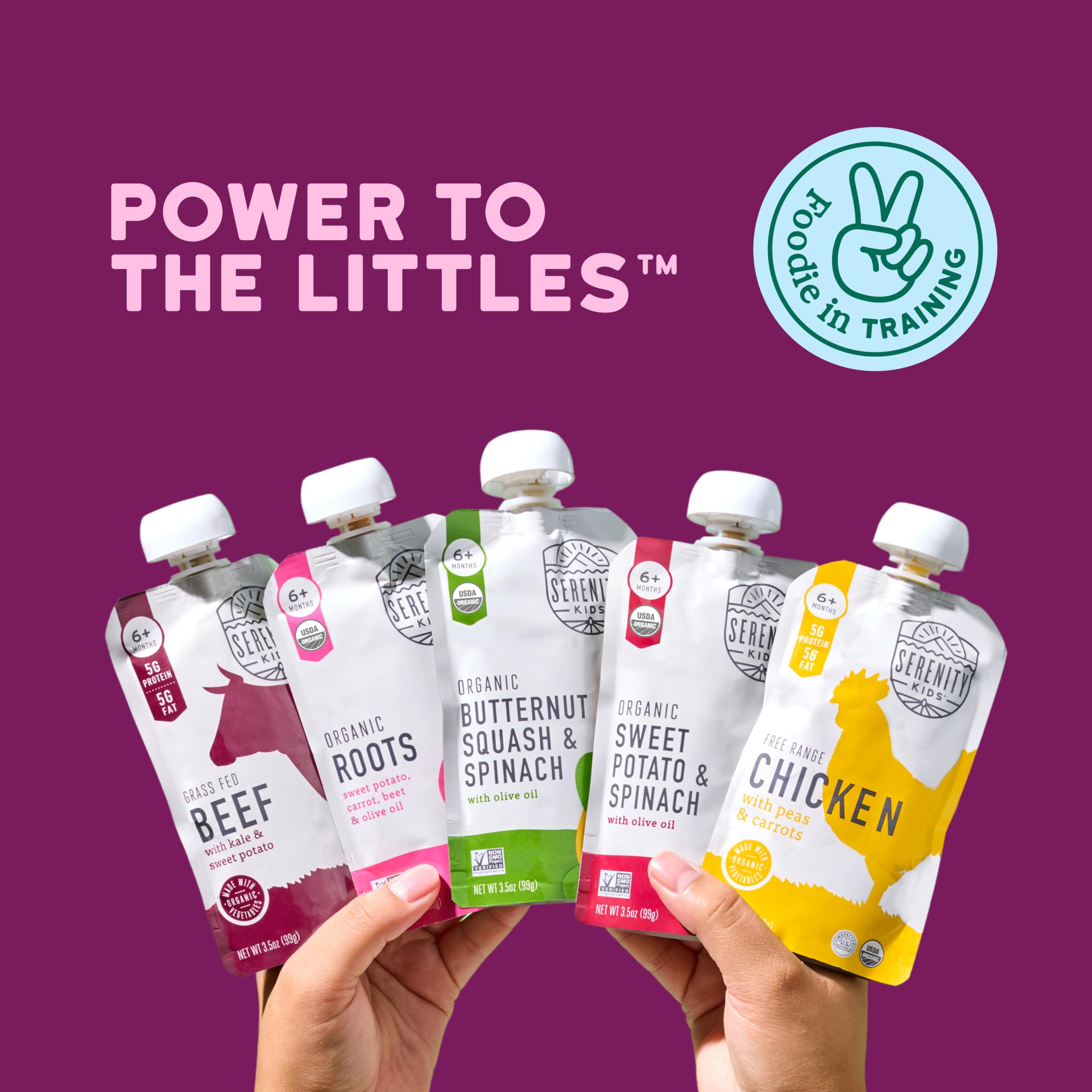 SAVORY BABY ADVENTURE: Dive into the world of Serenity Kids with our baby pouches, blending organic veggies and ethically sourced meats. From sweet potato to grass-fed beef, these are perfect baby snacks for little explorers starting their real food journey