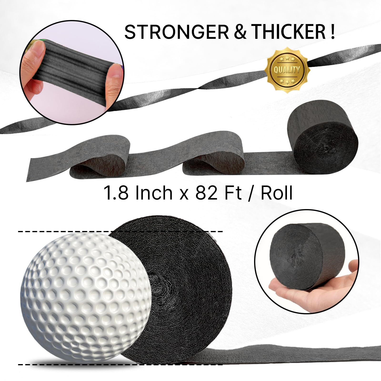 Package includes 4 rolls crepe paper streamer in total, each roll 82 feet long 1.8 inch wide