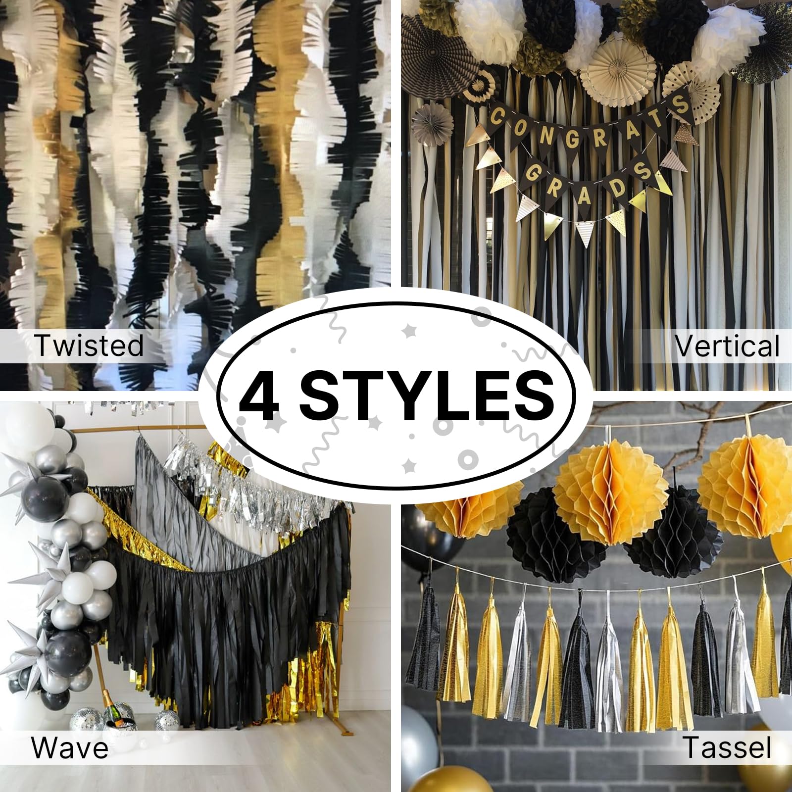 Easy to Use: Pre-rolled, long enough to hang it from ceiling or to twist into spirals, or to use as backdrop