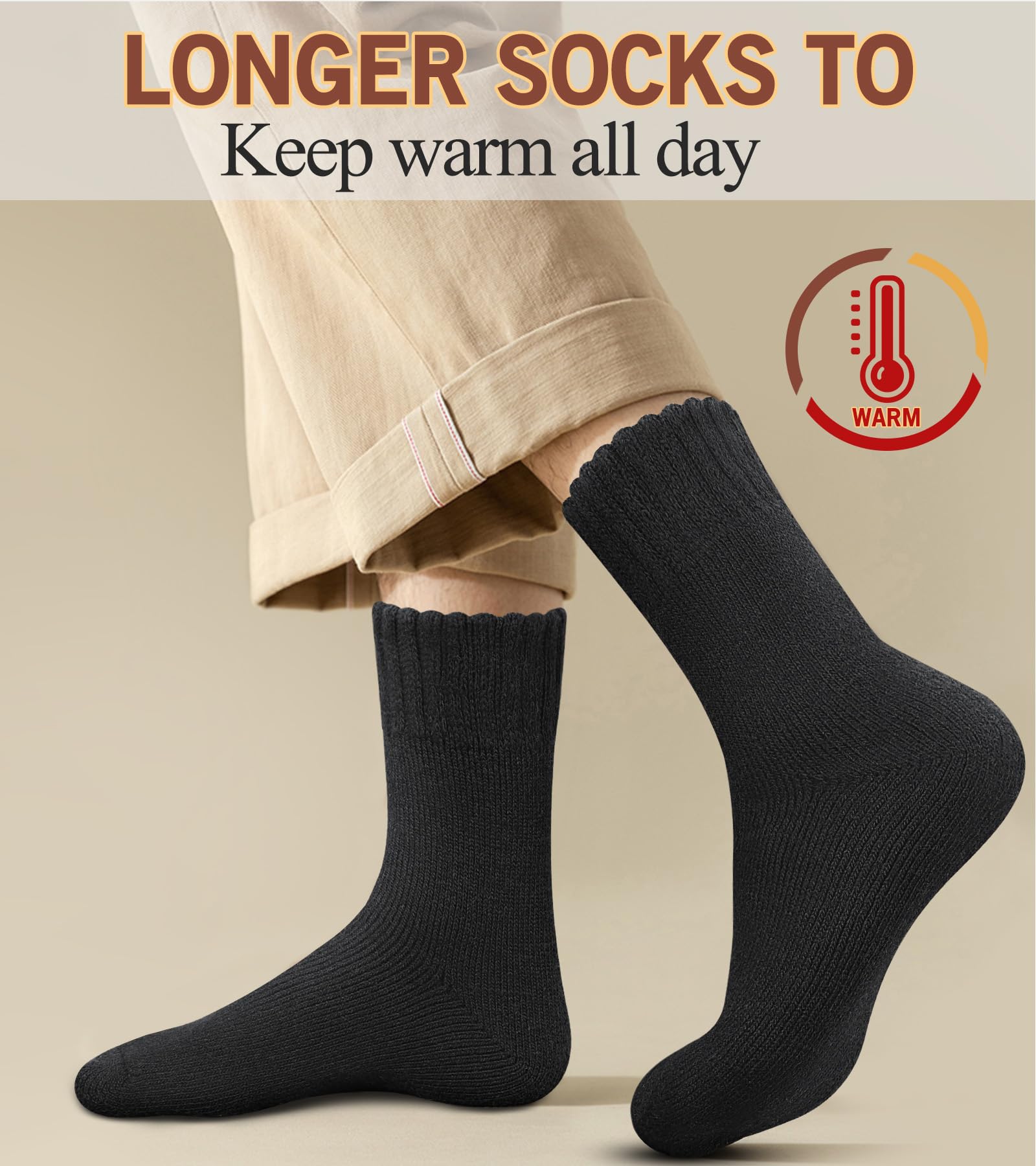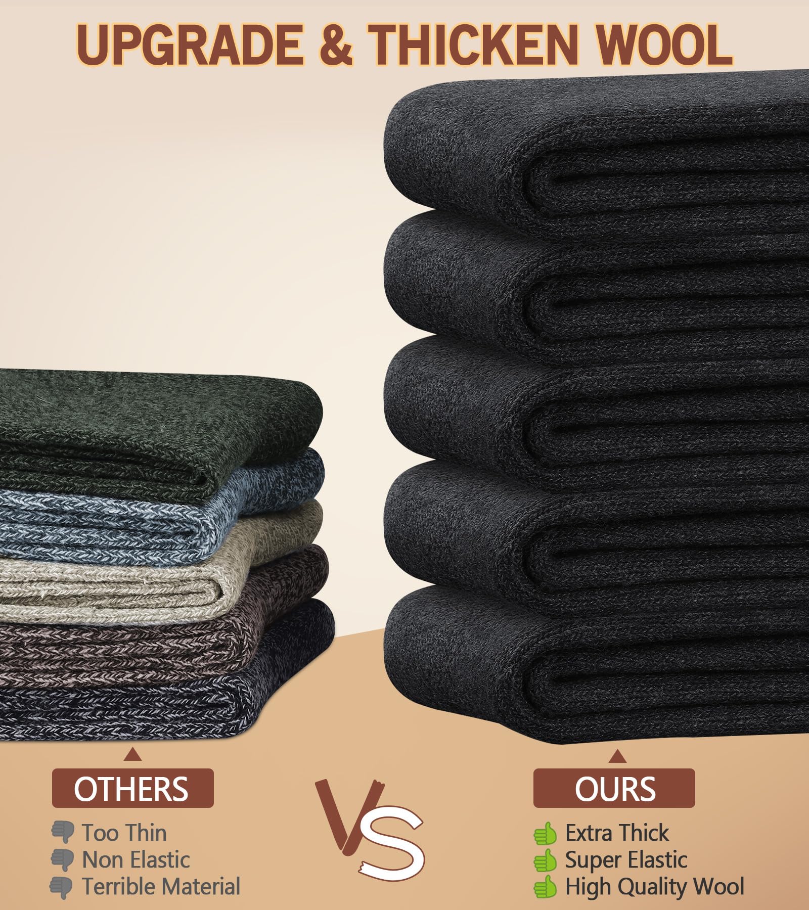 Packing And Size: One pack of 5 pairs of men's wool socks in different colors, which can be matched different clothing. These men's winter warm socks are available in two sizes, suitable for sizes 6-13 and 14-18.