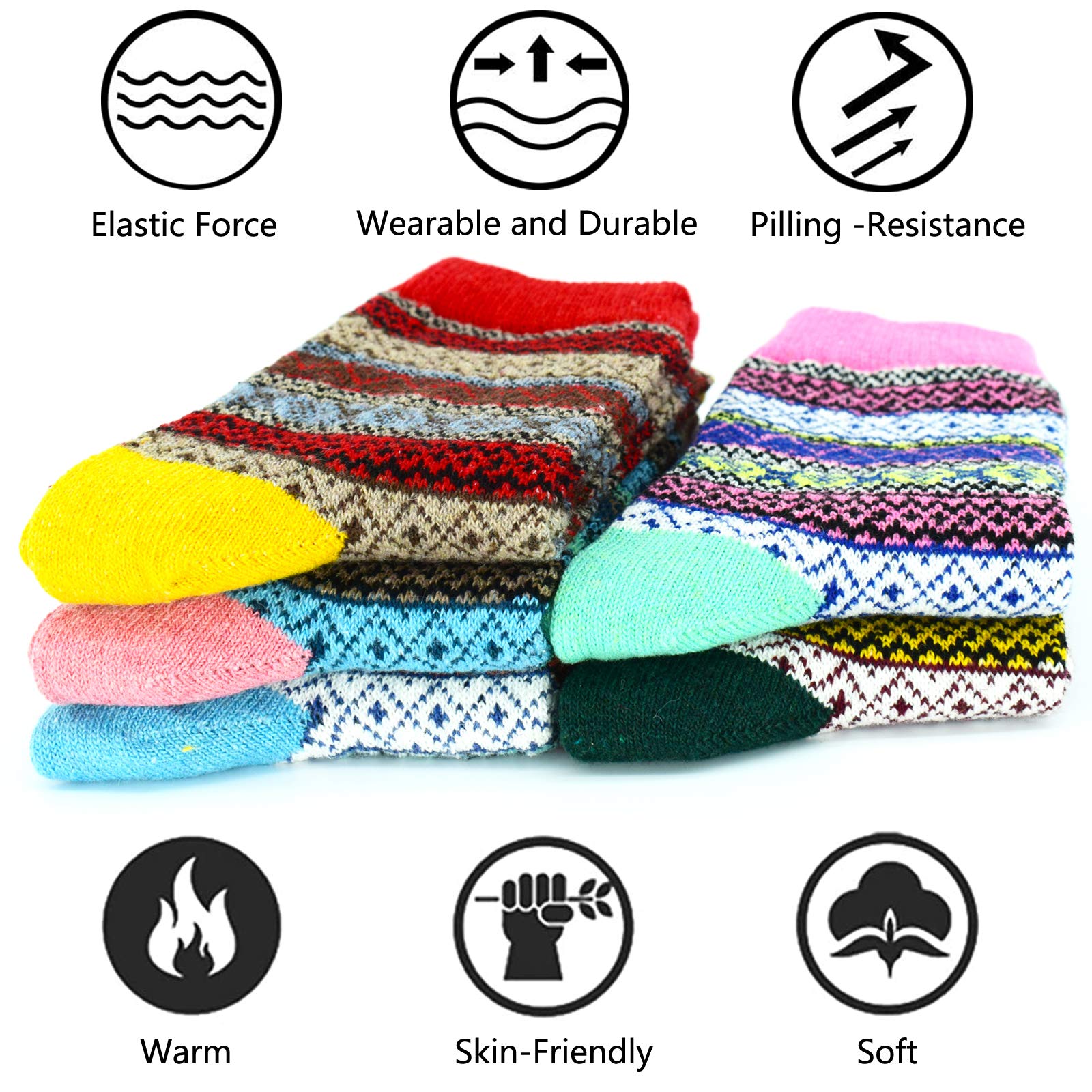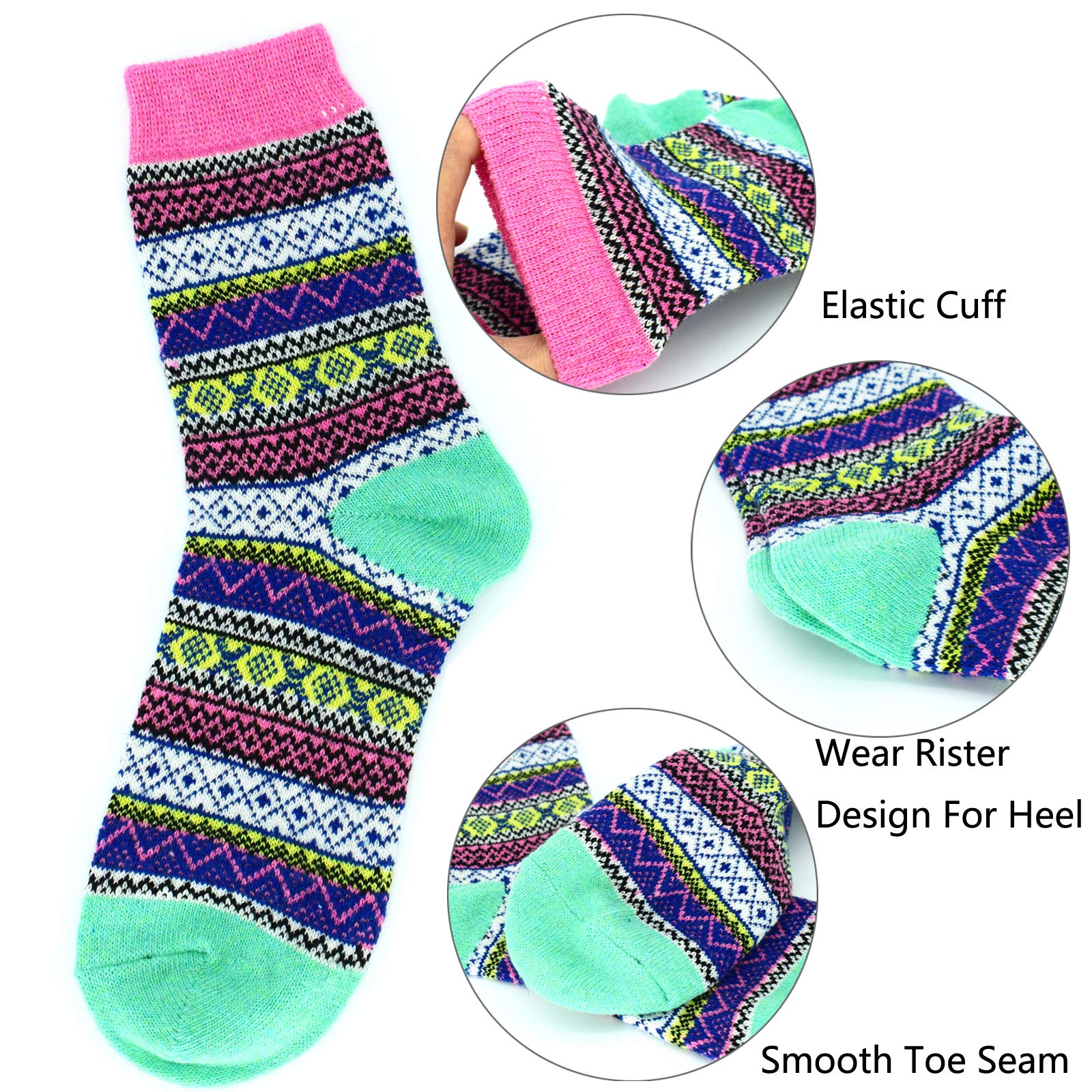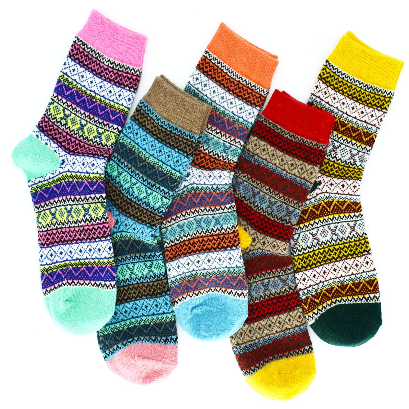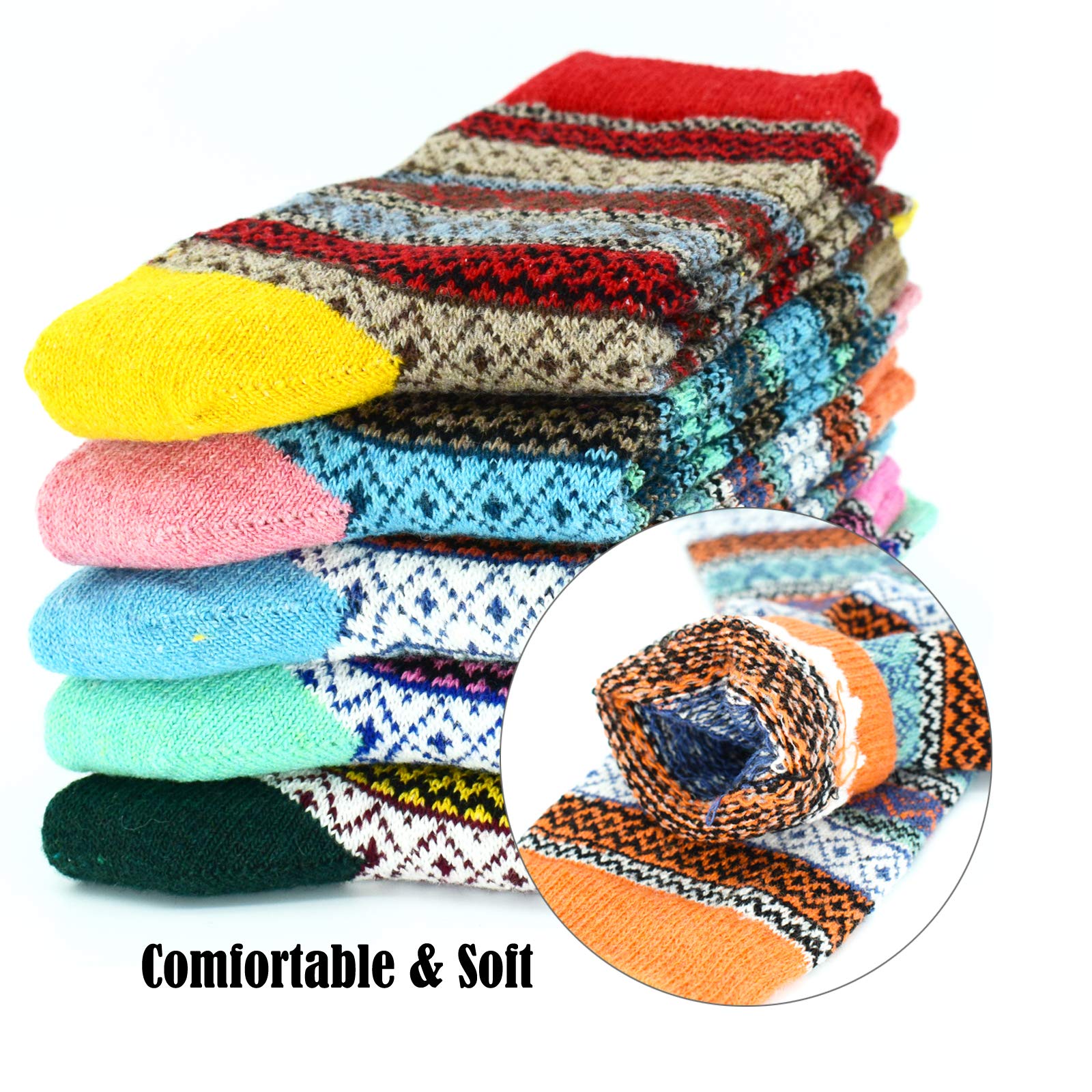 SIZE & CARE : 5 pack Womens wool socks come is a standard US SIZE that fit shoe sizes from US 5 - 9, so everyone can enjoy these colorful socks. Please do not iron them and suggesting wash them by hand, good quality socks require the proper care! advice wash before wear!