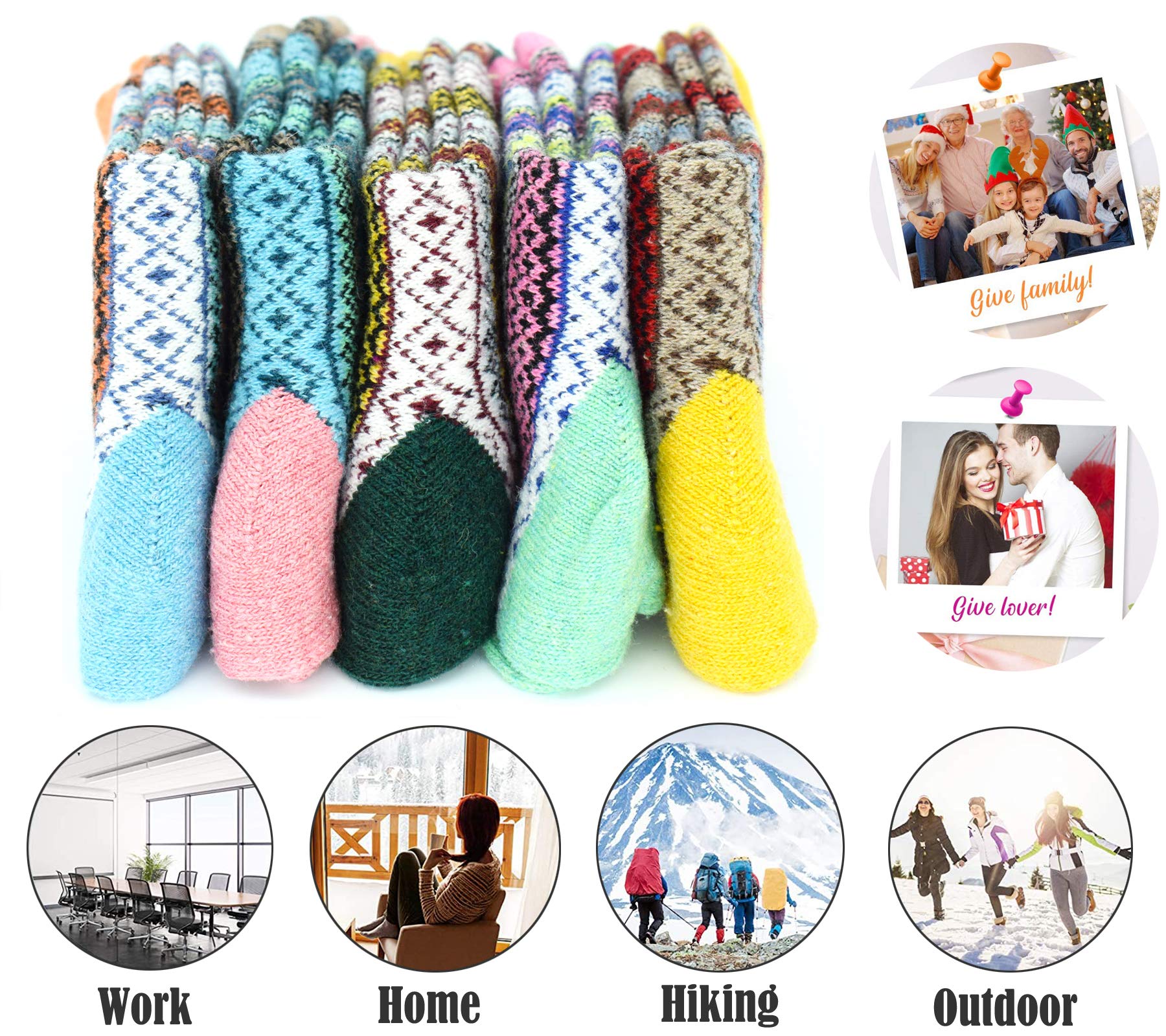 EXCELLENT GIFT CHOICE : Everybody needs more socks. YZKKE winter wool cotton socks make the perfect present for hikers, outdoor walkers, perfect for christmas or daily wear. Beautiful design for the coming Christmas festival.you also could choose for your girlfriend, dauther, wife, as birthdays, Christmas gift. or as women socks gift.