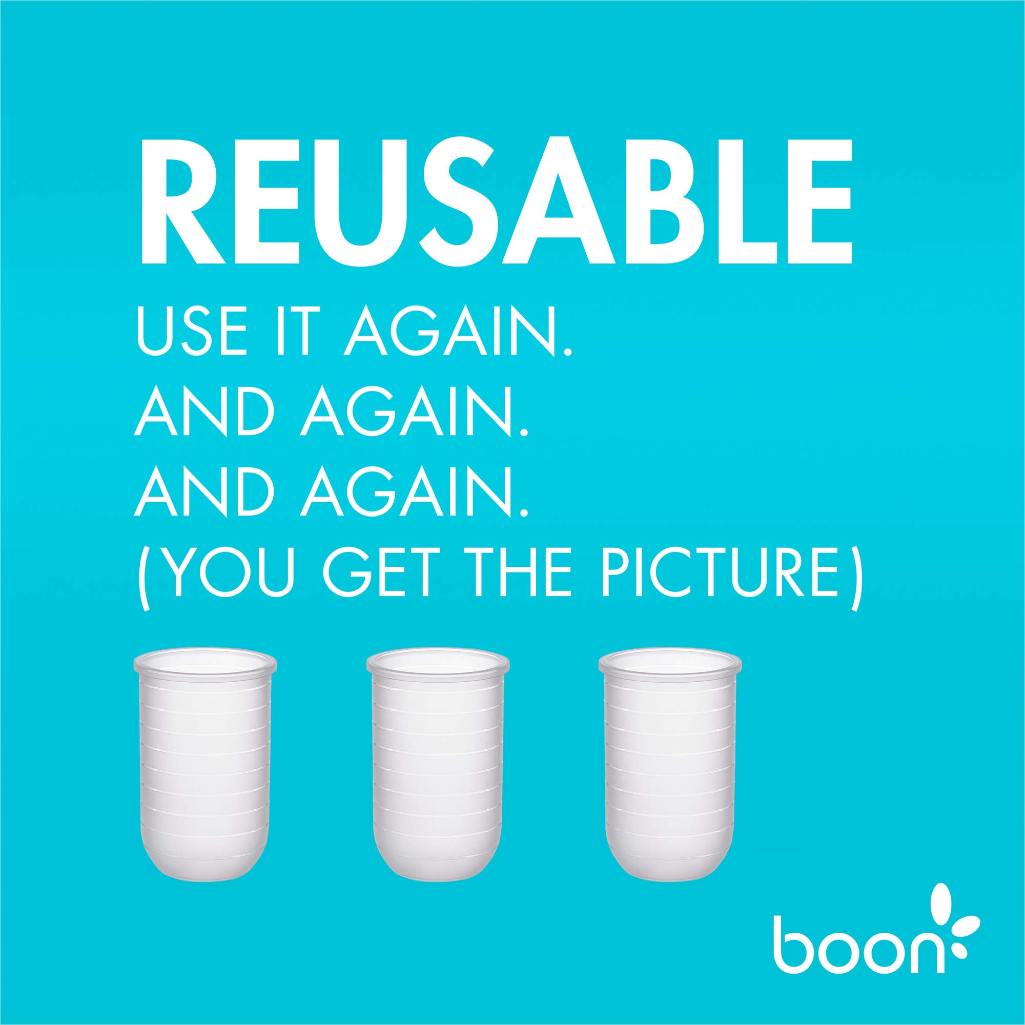 Innovation. Suck on that! It’s the best thing to happen to feeding since nipples. Thanks to the pouch the revolutionary air-free feeding design of our 100% Silicone Nursh Bottles collapses as your little one drinks, squeezing out the nasty gas-inducing air that causes colic. No straws, vents or valves here—so it’s a snap to clean and assemble. The silicone of these reusable pouches can even be boiled, sterilized, and frozen, making it perfect for baby's mealtime at any time of day. The pouches are dishwasher safe for quick and easy cleaning that makes taking care of them a snap. These silicone pouches are great way to extend your supply of existing shells, making sure you always have a baby bottle handy even when another pouch is in the dishwasher. (You're a parent, you know how many bottles baby's go through!) Boon's Nursh collection is perfect for new moms. Explore more of the collection to discover storage lids, buns, additional pouches, and more!