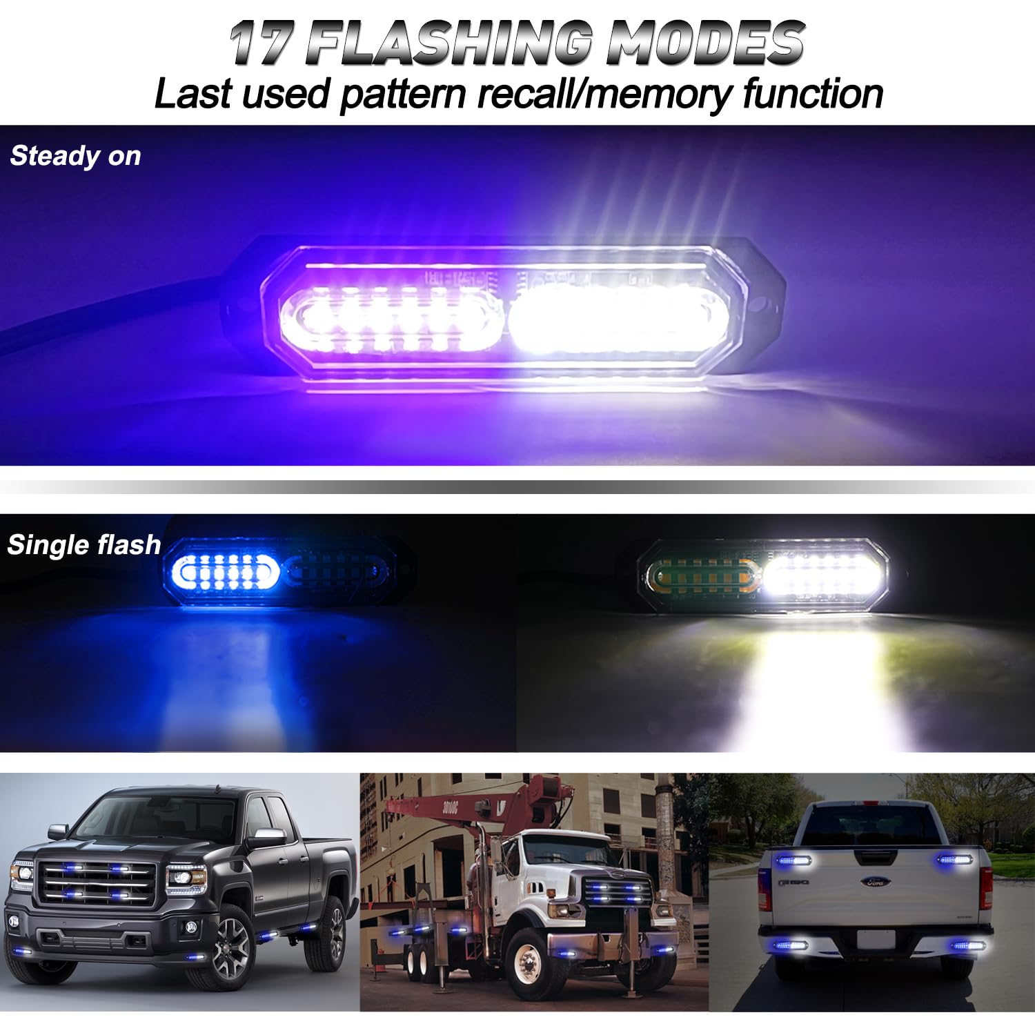 【SUPER VISIBILITY】ASPL 8Pcs 12LED Surface Mount Strobe Lights, each light has a total of 12 high-intensity Led chips. Use aluminum alloy housing + ABS magnifying lens for maximum brightness to ensure more effective warning to other vehicles. These strobe lights can be seen from hundreds of feet away.