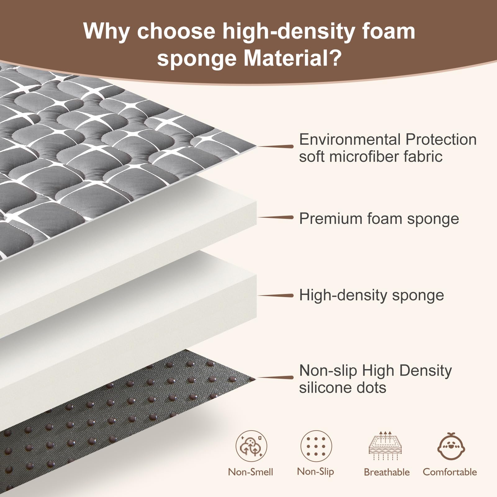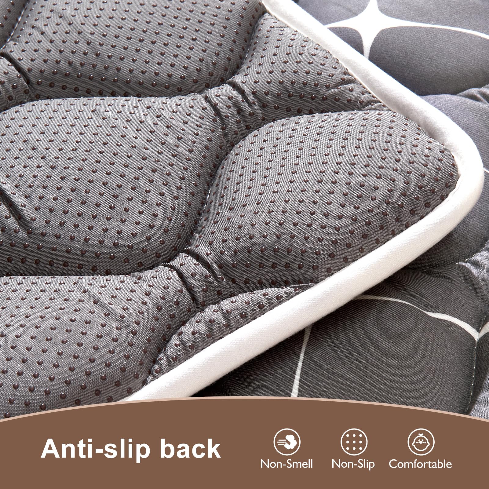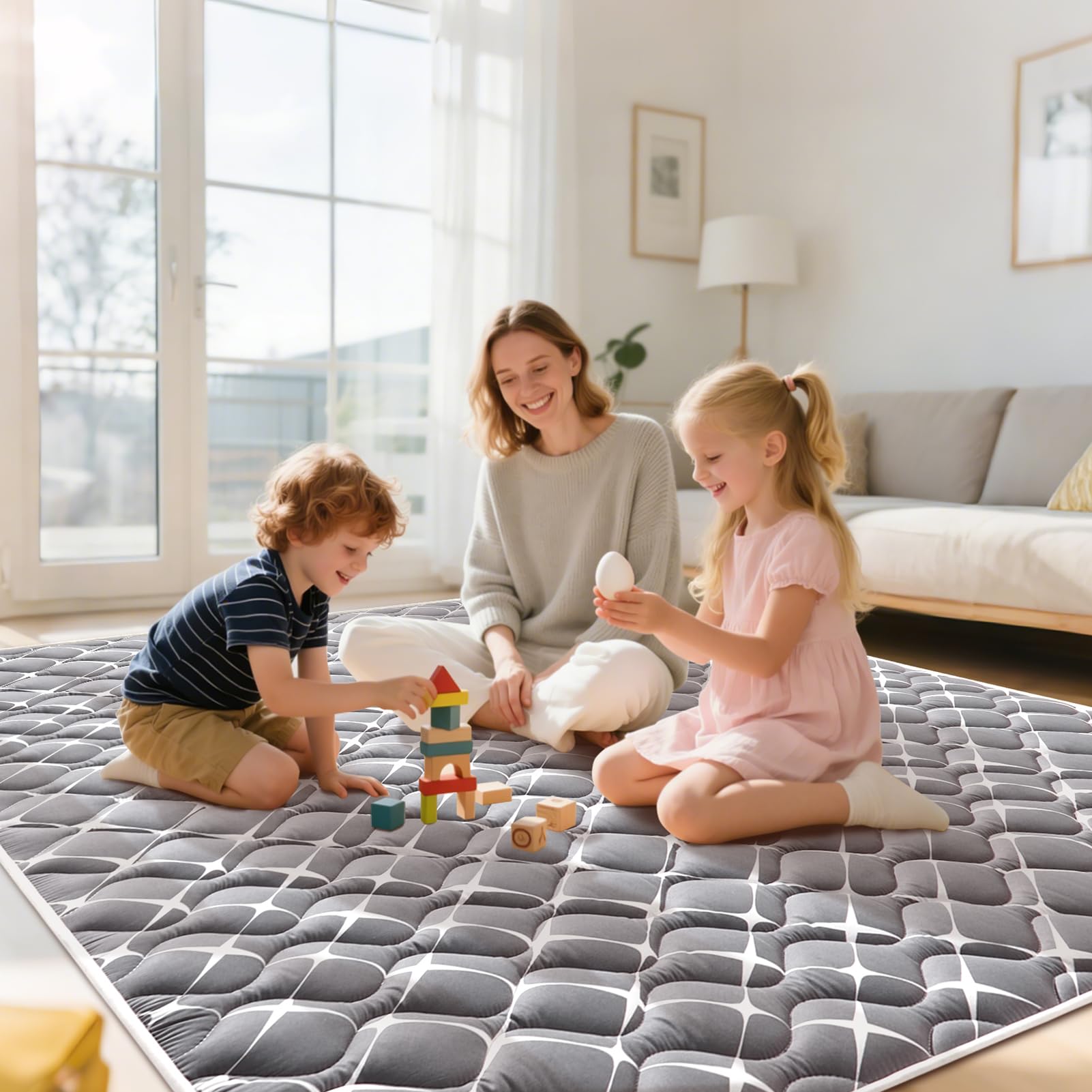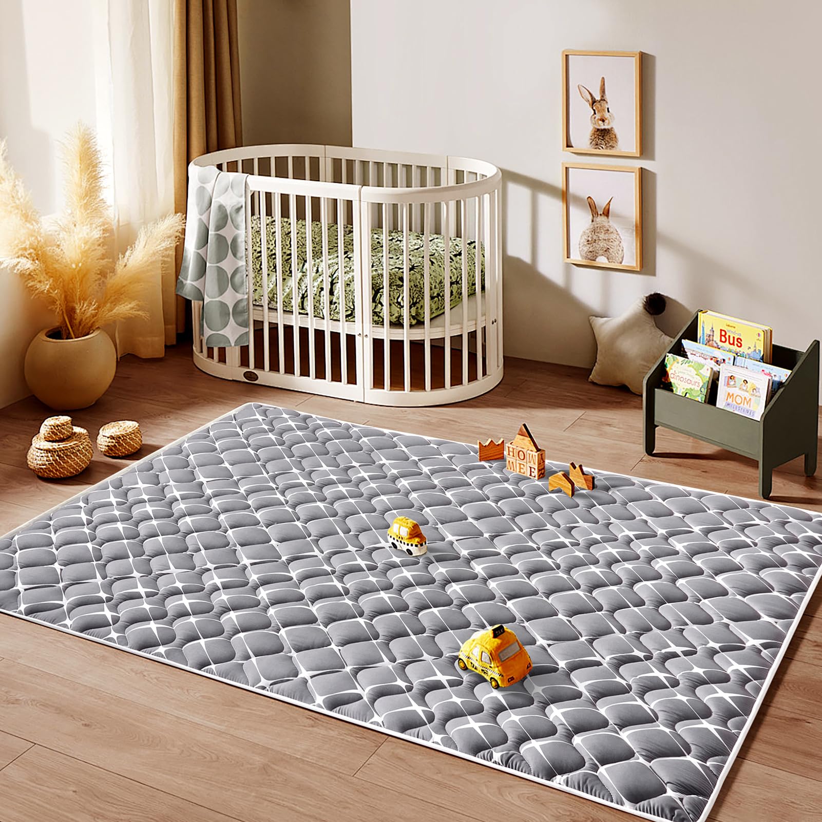 Easy to clean: No worries at all about mats stained with urine, milk, juice and other stains, our mats are machine washable and can be washed in a large washing machine and dried at low temperatures, which is very convenient, especially for busy parents.