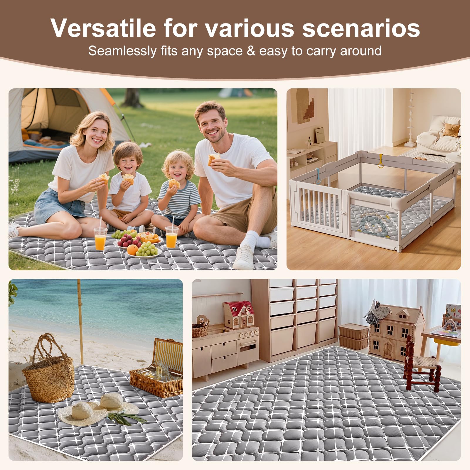 Extra Baby Large Play Mat: The baby floor mat measures 71*59 inches and is suitable for indoor and outdoor activities and can accommodate a family for fun times together. It's also foldable and easy to pack, saving you space and making it easy to store.