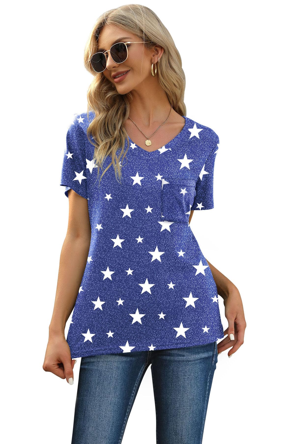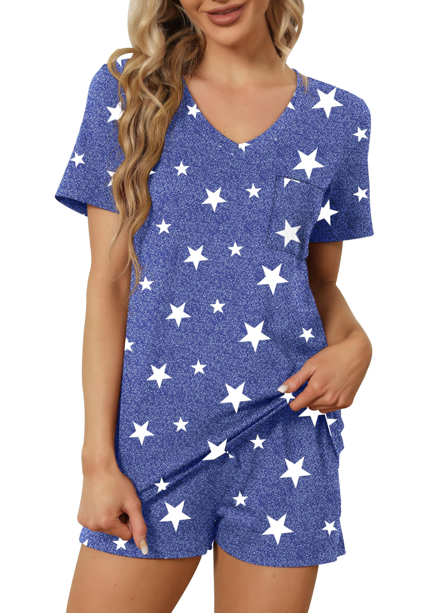 FEATURE --- The package including 1 x short sleeve t-shirt and 1 x short. The top has classic v neckline and a pocket. The short has elastic drawstring and side pockets. The cute top is perfectly complemented by shorts. Casual and sexy in daily life.