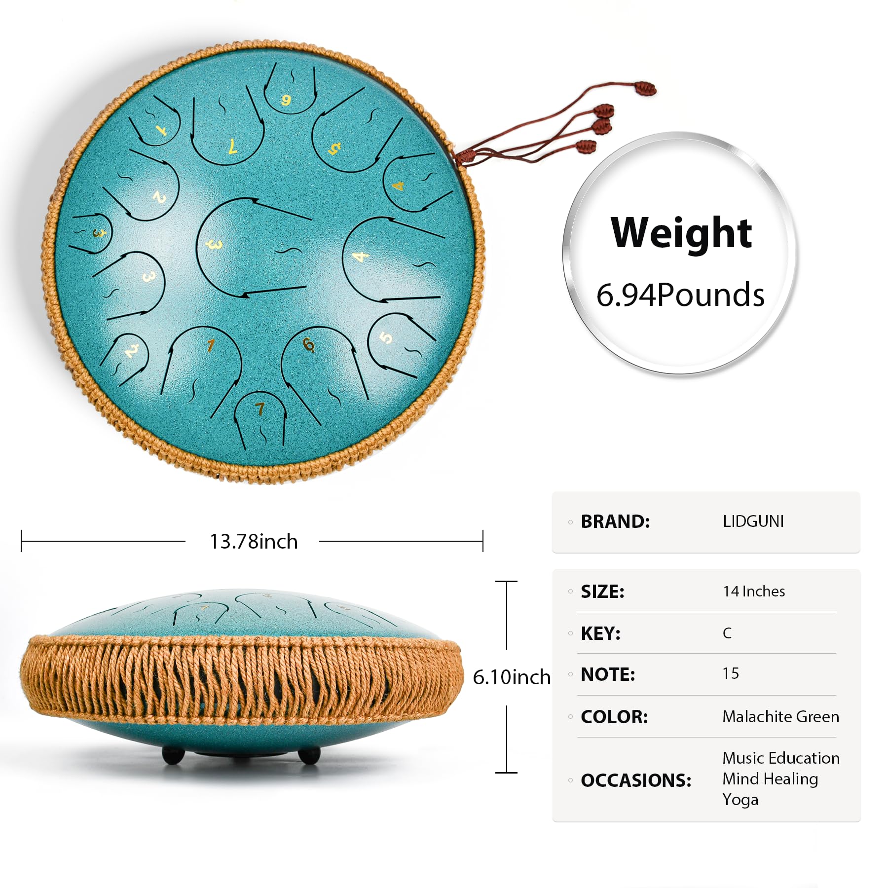 Professional Steel Drum: Lidguni steel tongue drum 15 note allows you to play complex melodies and harmonies. It can meet professional performance needs and also beginner friendly