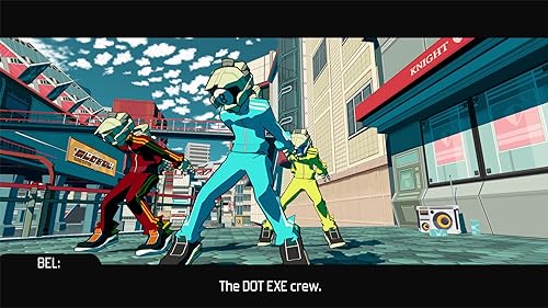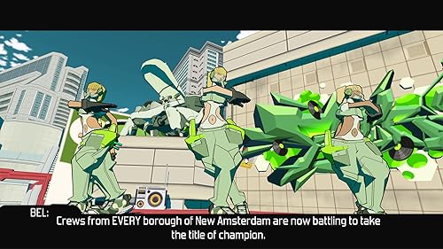 Team Reptile brings you Bomb Rush Cyberfunk, a future world from the mind of Dion Koster where self-styled graffiti crews equipped with personal boostpacks are battling each other for control of the streets. Start your own cypher and dance, paint graffiti, collect beats, combo your tricks and face off with the cops to stake your claim to the sprawling metropolis of New Amsterdam. Red is a graffiti writer who lost his head and instead uses a cyberhead to get around. In search of his roots he joins the Bomb Rush Crew, Tryce and Bel. Together they decide to go All City, to become the best graffiti crew in the city. The more territory they gain, the more they discover who it was that cut off Red's head and how deep his human side is linked to the graffiti world