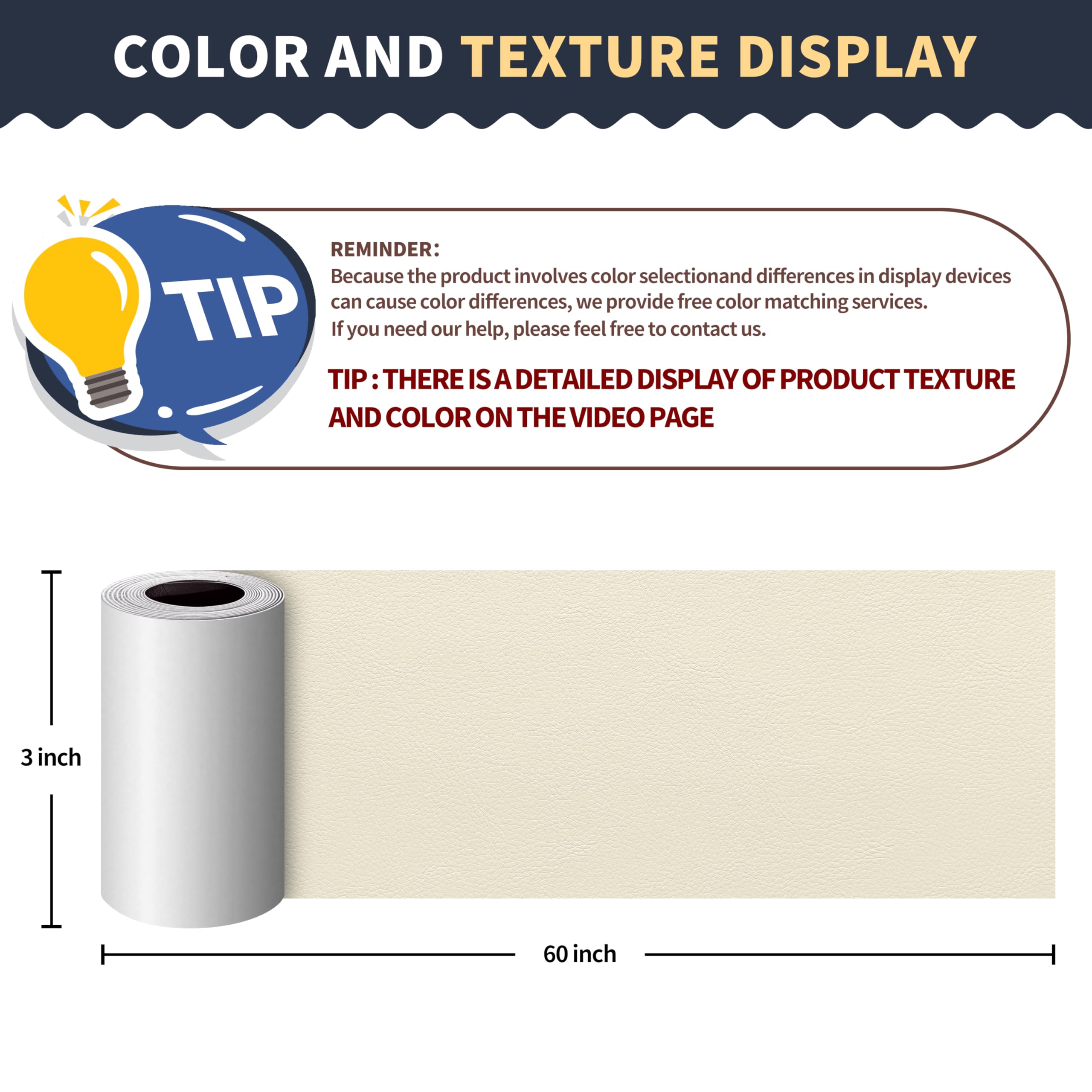 Classic Size: 3 x 60 inches leather repair tape, you can cut any size as needed. Leather texture is soft and smooth, medium thickness, good repair leather repair tape.