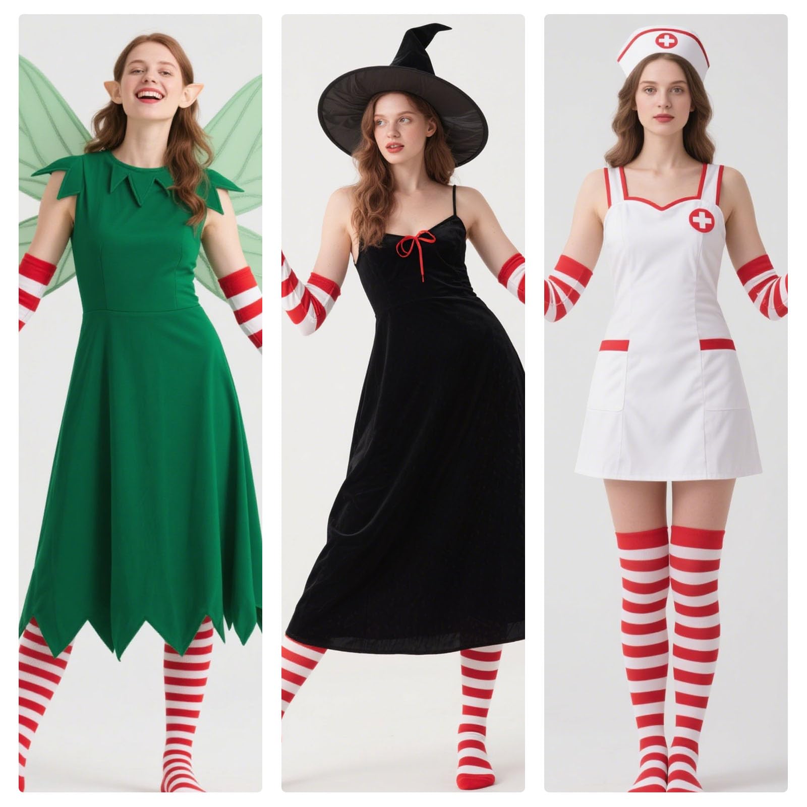 Classic Striped Design: Classic candy-cane stripes bring playful charm to outfits. Arm sleeves and stockings (one-size) fit most women/girls (above 13 years old). Perfect for festive looks, sports, or casual layering