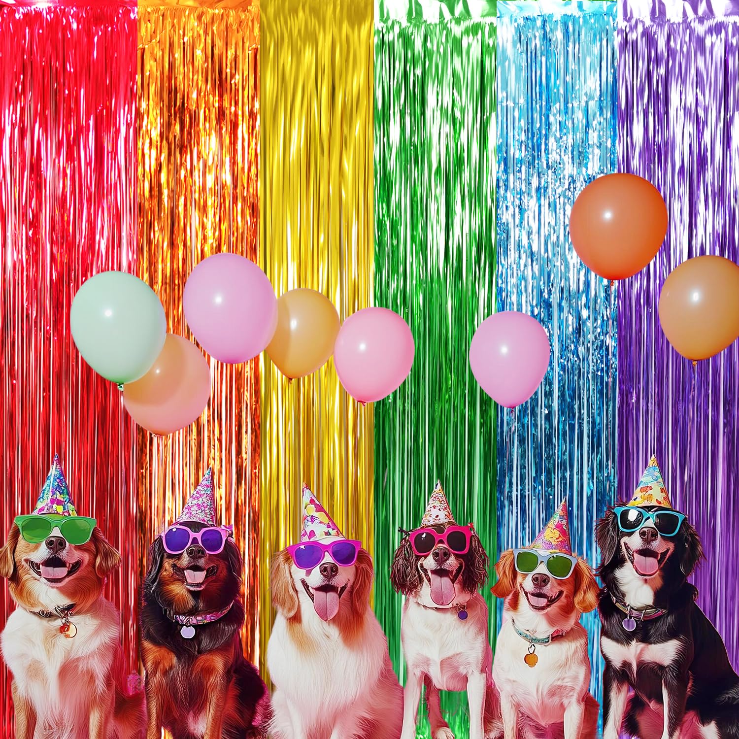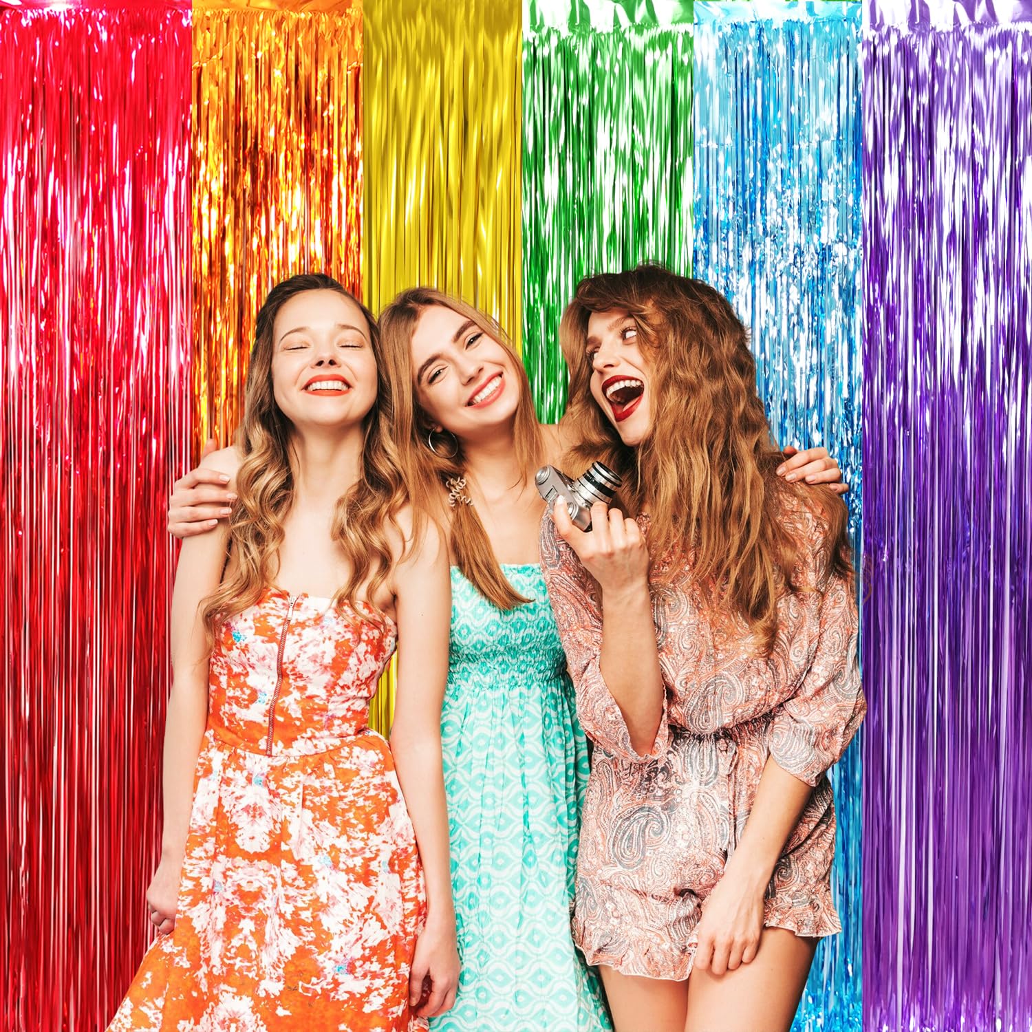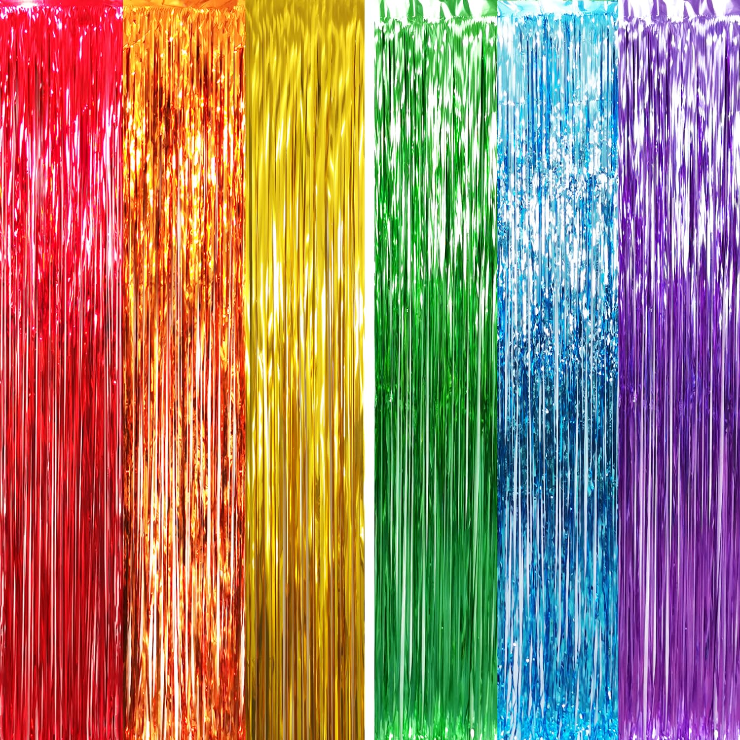 When Rainbow is the theme whether your celebrating a event or a party,this GOER gold party backdrop is the perfect decorating piece. Package Includes:2 packs rainbow foil fringe curtain. Size:3.2 ft x 8.2 ft each Material:Thickened mylar,can be reused Suitable for hanging on a door or coverage a wall fully. Perfect as a party backdrop birthday,wedding,bridal shower,baby showers,graduations and more.