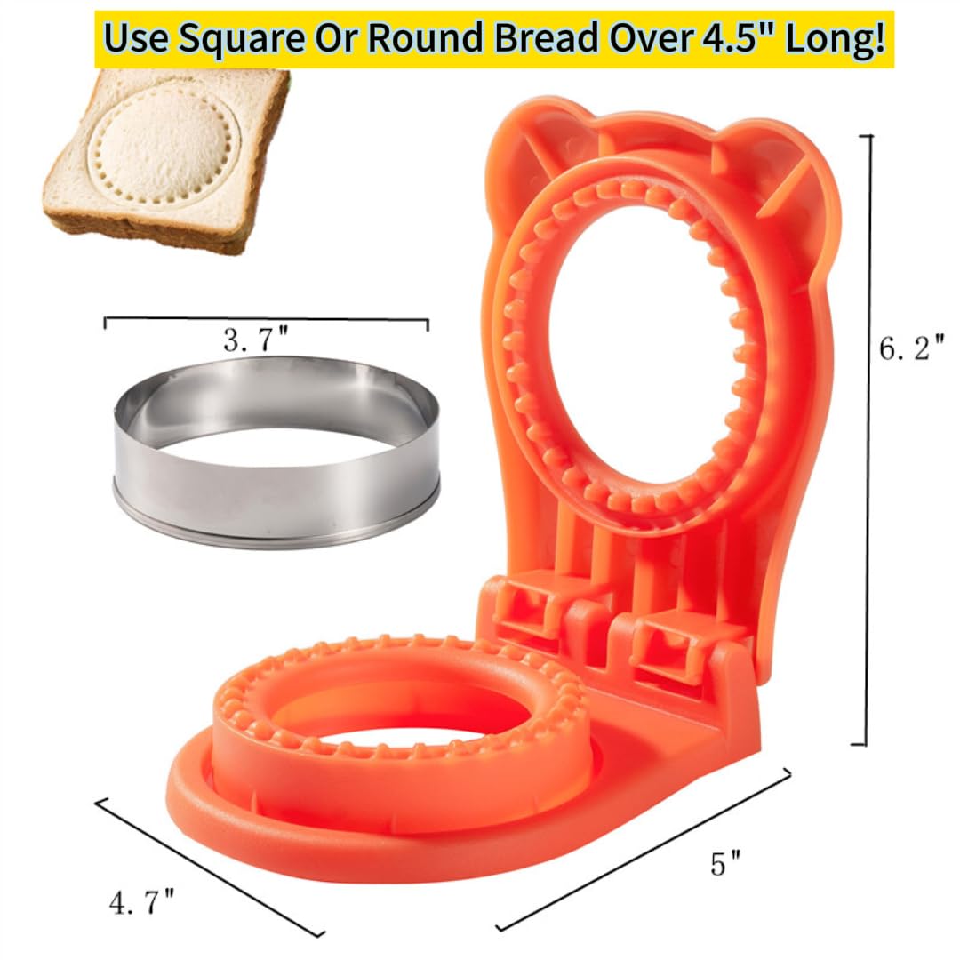 Sandwich Cutter and Sealer 2 for 1:This Uncrustables Sandwich Maker is easy to use. You can make a sandwich in just two steps. One step, filling anything you would like on the bread. The secent step:Press down to cutter and seal one step design. The sharp cutting edge will create the pocket sandwich shape while also sealing the edges of the sandwich.
