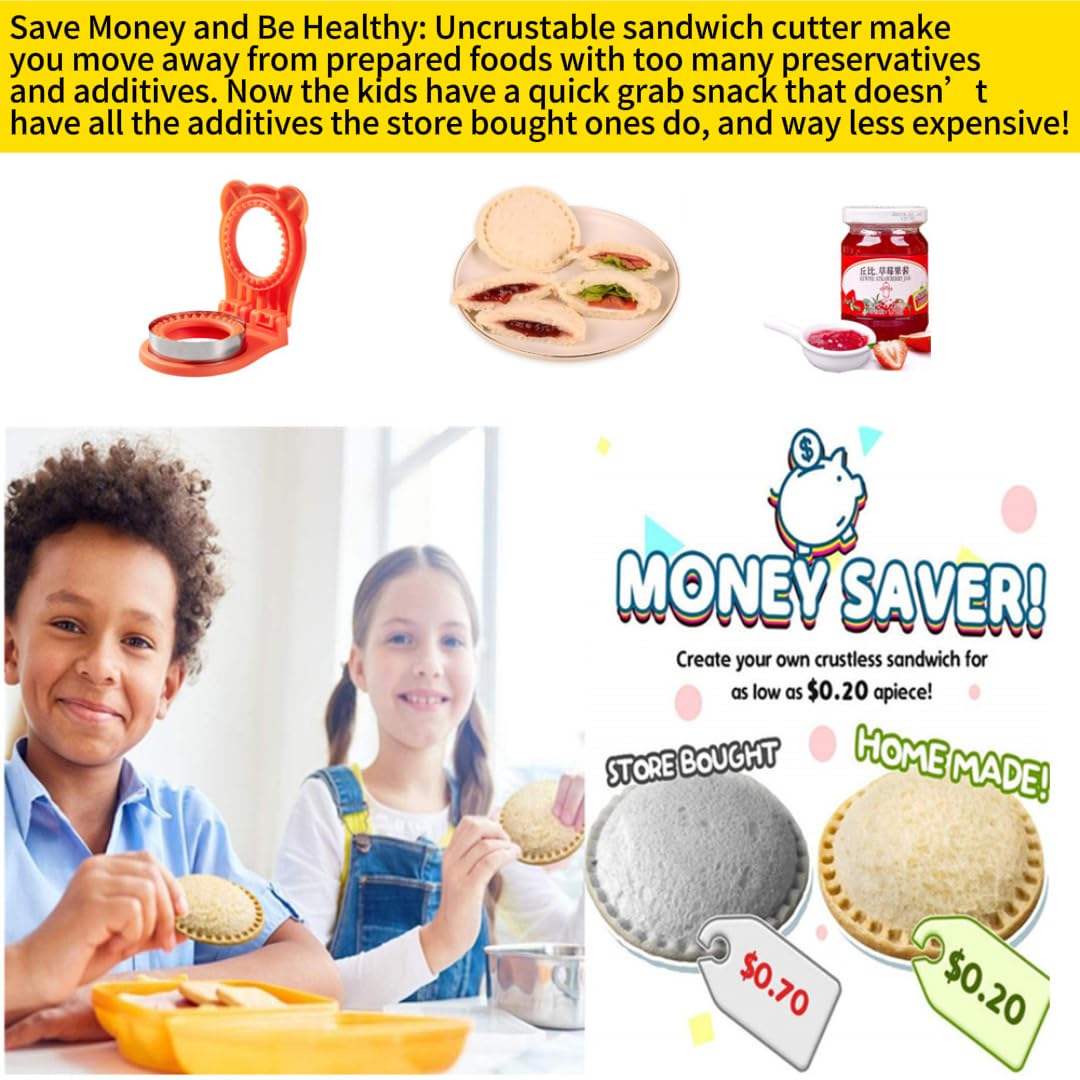 Save Money and Be Healthy: Uncrustable sandwich cutter make you move away from prepared foods with too many preservatives and additives. Now the kids have a quick grab snack that doesn't have all the additives the store bought ones do, and way less expensive! If you're looking to save approximately 40 cents per sandwhich it's a good option. Saves tons of money.