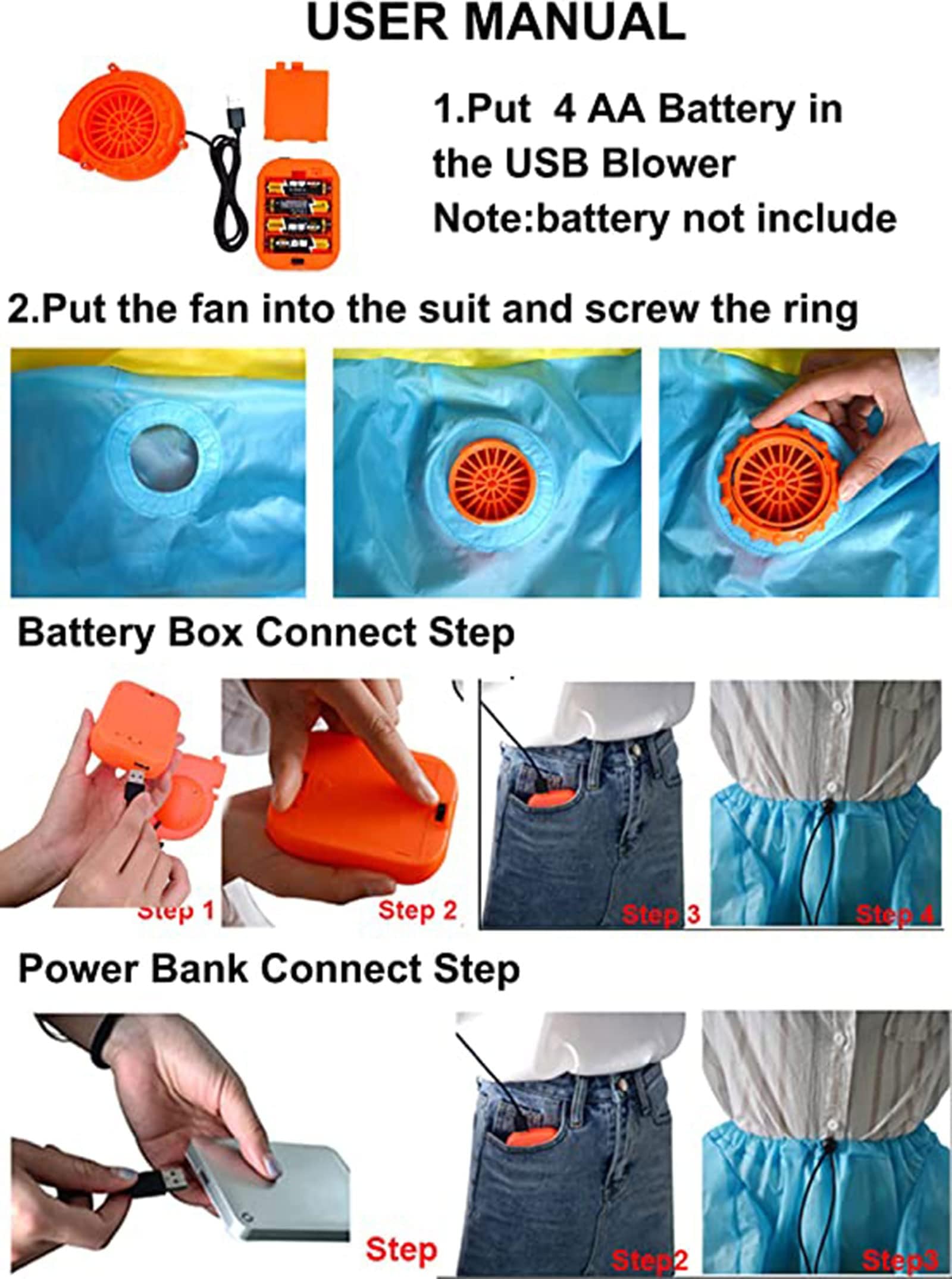INFLATABLE ZEBRA COSTUME Adult PACKAGE INCLUDE:zebra inflatable suit come with 1 x onesie zebra Inflatable Costume,1 x usb mini fan blower(not including battery),inflatable adult zebra costume adult mini fan requires 4 AA batteries and USB connected mobile power