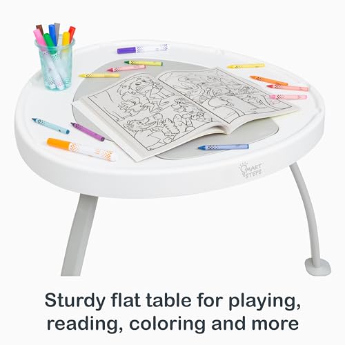 Created to grow with baby, our multi-functional Smart Steps by Baby Trend 3-in-1 Bounce N’ Play Activity Center easily converts from an activity center, to an Activity Play Table, then to a Flat Table allowing your baby to discover and develop. With the sturdy 3-point leg support, parents can have peace of mind watching your kids play while learning. Baby's curiosity is captured with the 360 degree rotating seat, bouncing board and removable toys. The bouncing board that has three position height adjustment will support your baby’s height and body motion as well as help them learn tip toeing. We designed 5 unique toys attached to the table so your little one can learn while playing. It will also improve their eye-hand coordination and brain development. The toys are removable and can be used as standalone toys. As your baby grows, our Smart Steps Bounce N’ Play Activity Center can convert into a clean, sturdy flat table for playing, reading, coloring and more. The activity center is designed for babies aged 6 month and up. Recommended Use: Sit upright unassisted 6 m ~ 30 lbs or 32"