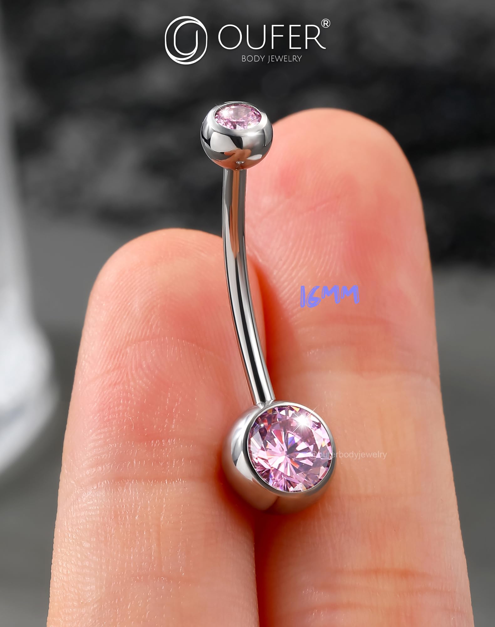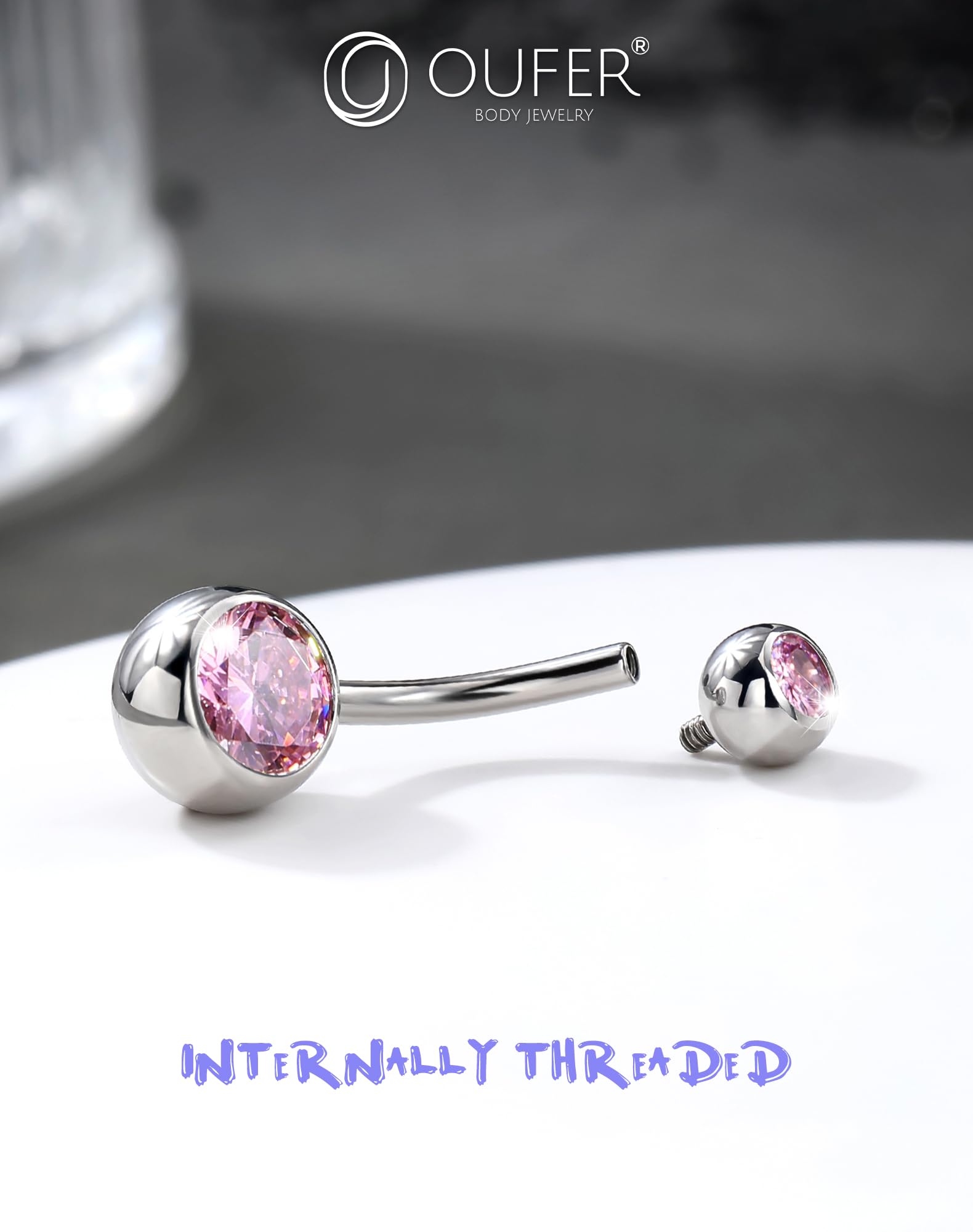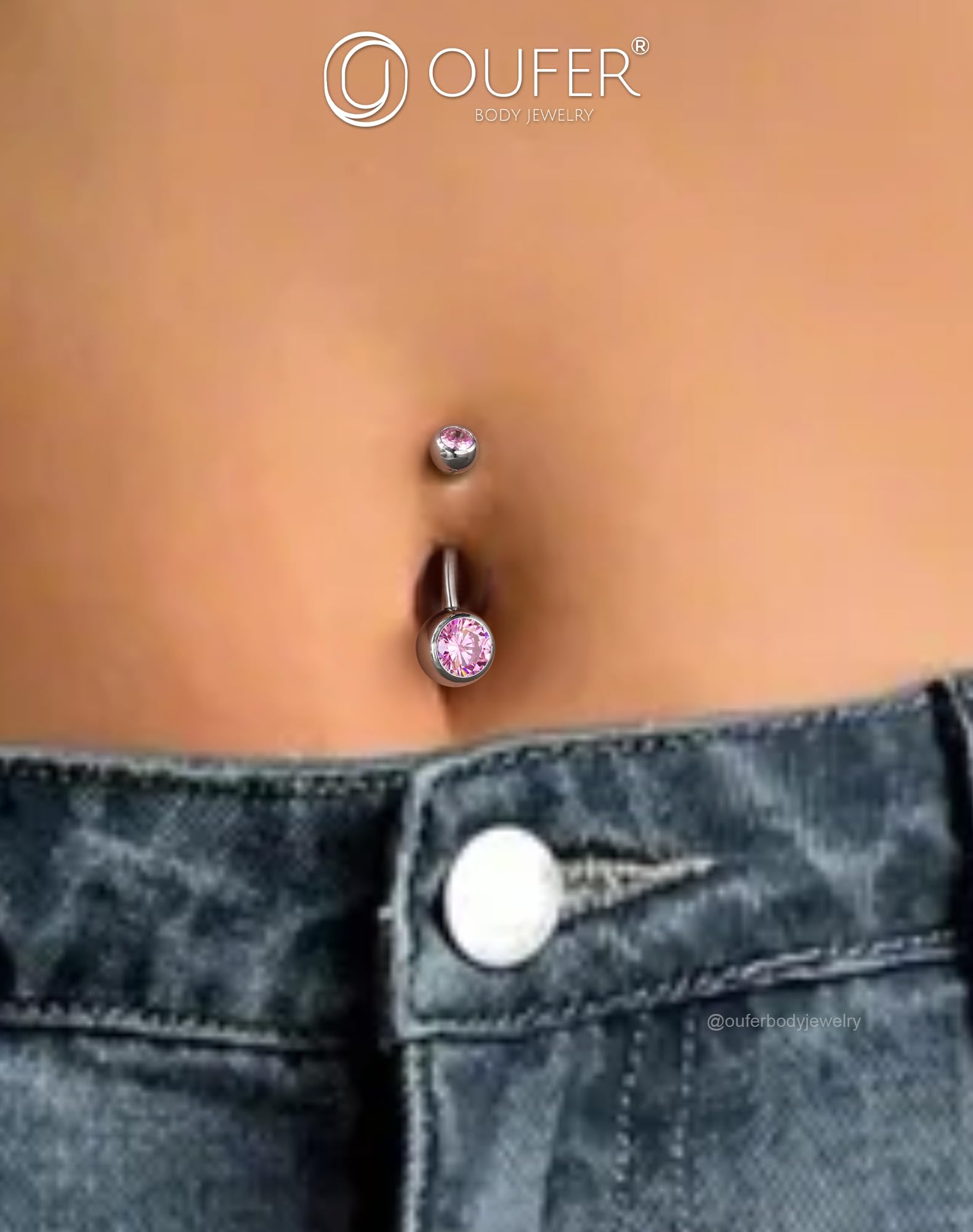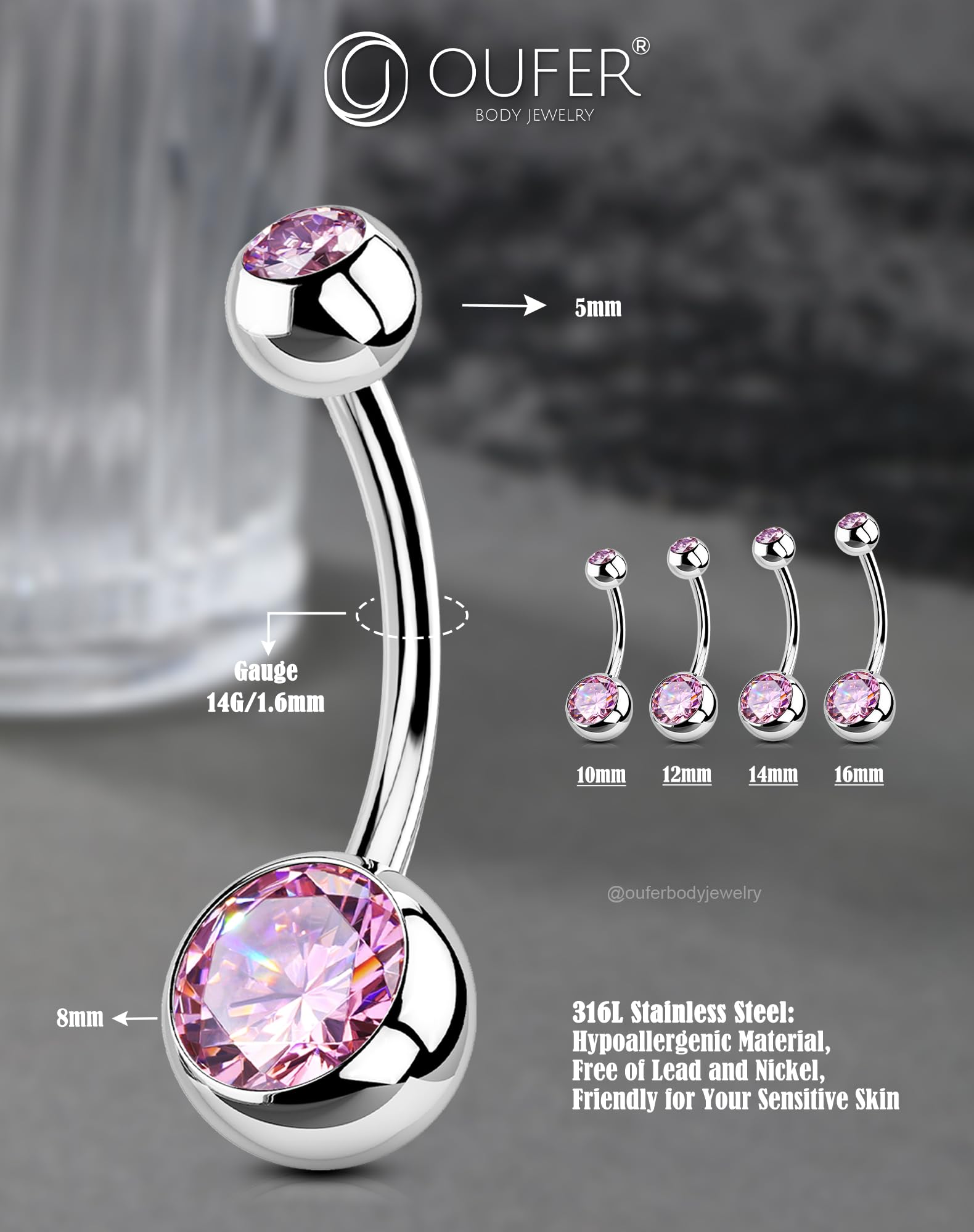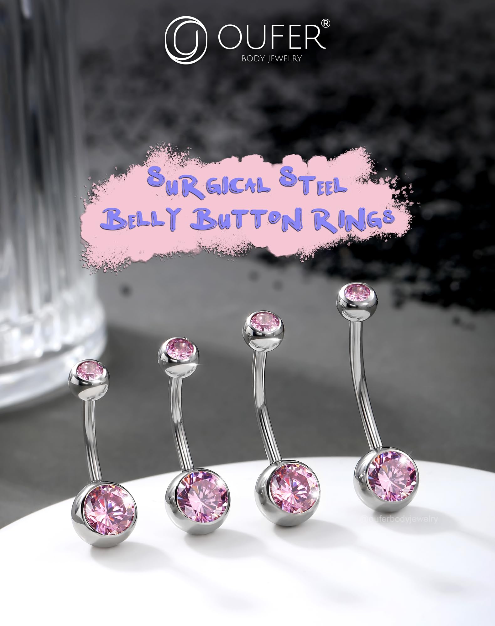 【Fashion Belly Button Ring】1PC Internally Threaded 316L Surgical Steel Belly Button Ring with Elegant Pink Cubic Zircon, Simple and Generous