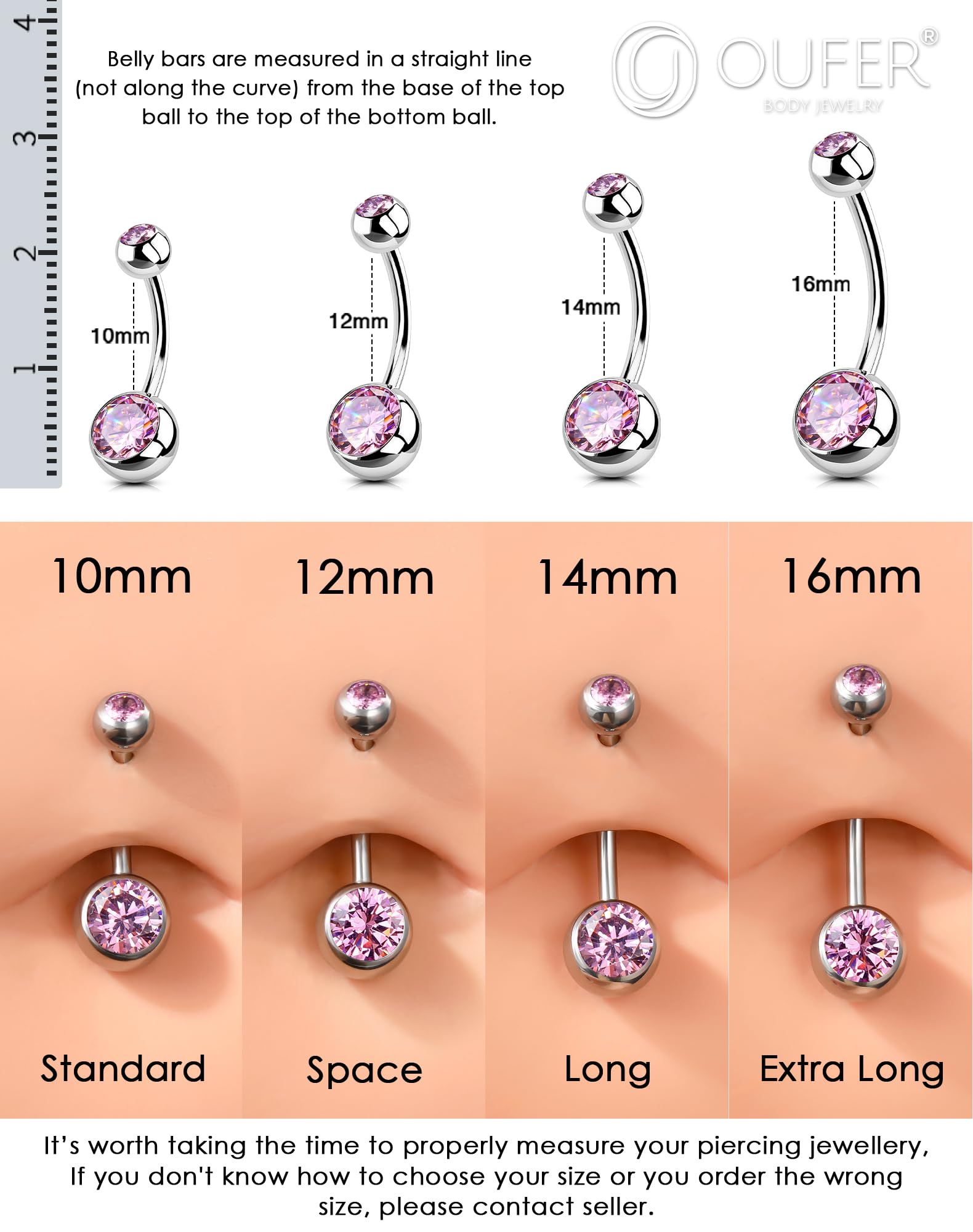 【Gauges of Belly Ring】the bar thickness is 14G/1.6mm and the bar length is 16mm, also have 10mm 12mm and 14mm, Four sizes for you to choose