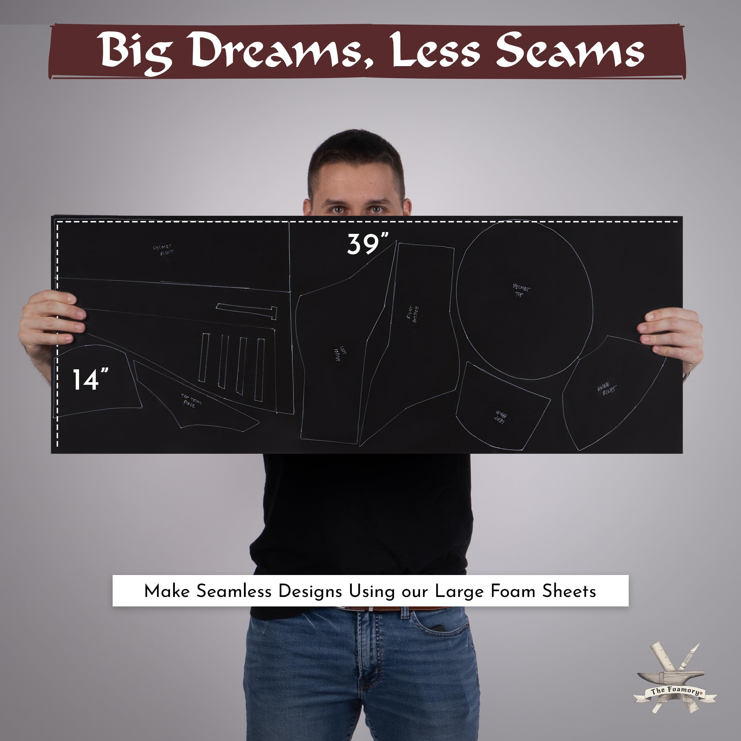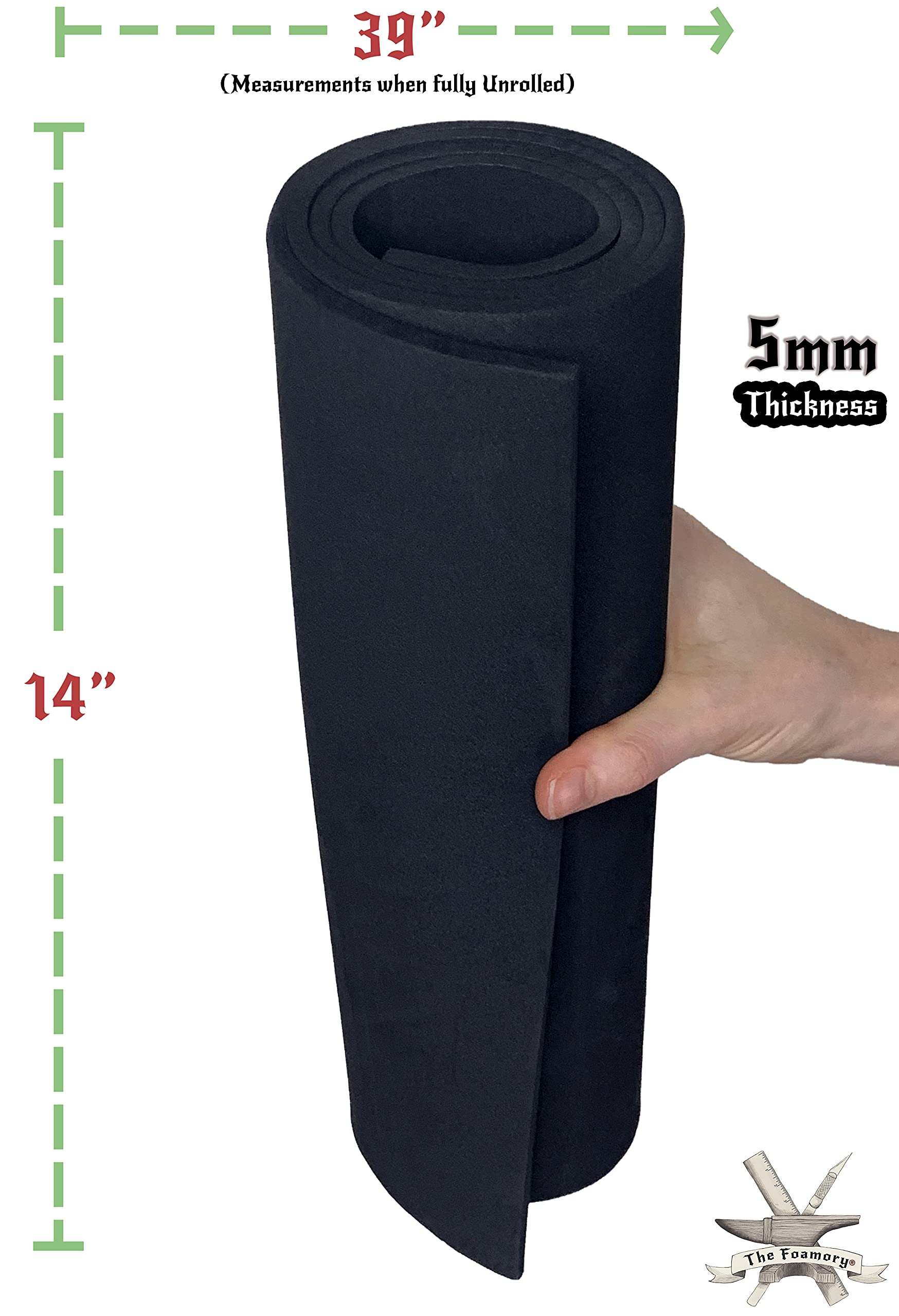 5MM THICKNESS, 14 X 39 INCH CUT: 5mm is great for Cosplay armor, medium sized accessories and detail work. The 14 x 39 inch cut allows for bigger designs, less piecing together, fewer seems and more pieces out of one sheet.