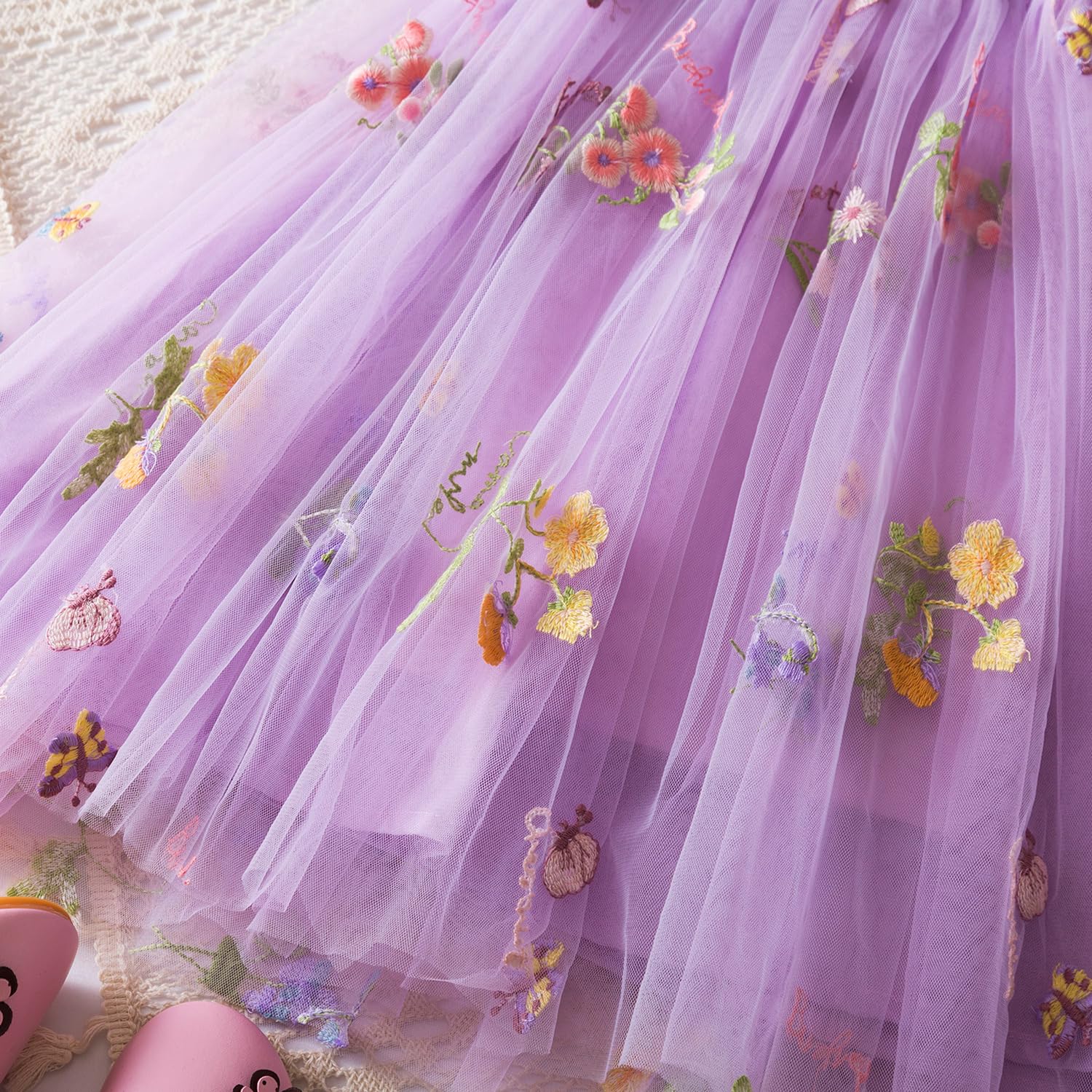 Charming Floral Embroidery: This adorable summer dress features delicate floral embroidery on soft chiffon, creating a sweet and elegant look for your little girl.