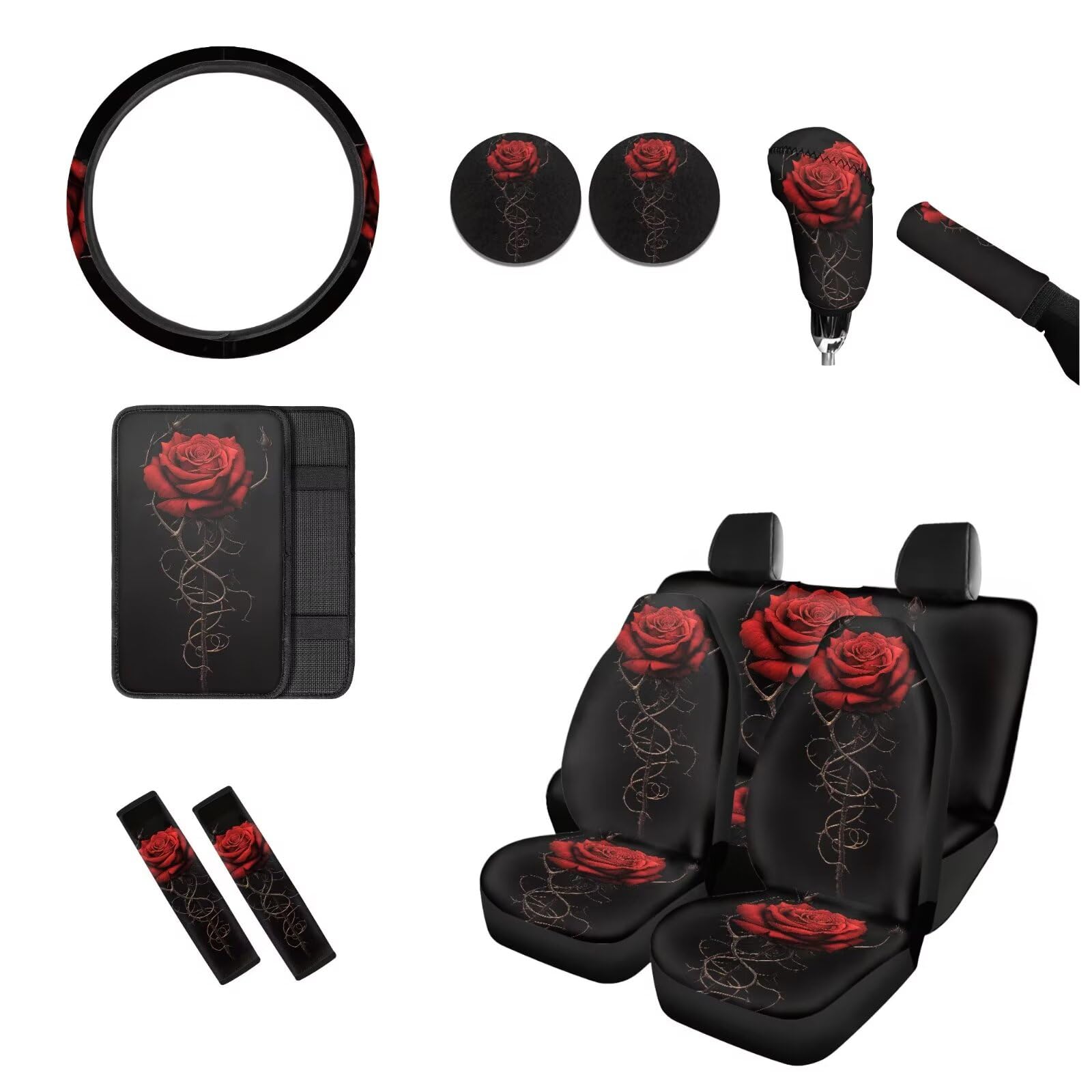 12 Pieces Car Interior Accessories Decoration for Womens Mens PACKING:2 Pieces front Front Seat Covers+1 Pieces Rear Backrest Cover+1 Pieces Rear Bottom Bench Cove+1-piece Car Gear Shift Knob Cover + 1-Piece Car Handbrake Brake Protector+1 Pieces Steering Wheel Cover+2 Pieces Shoulder Seat Belt Pads+1 Pieces Center Console Armrest Pad+2 Pieces Car Cup Our Promise: Thanks for your business! We will always strive for 100% customer satisfaction. If you have any questions, please don't hesitate to contact us directly!