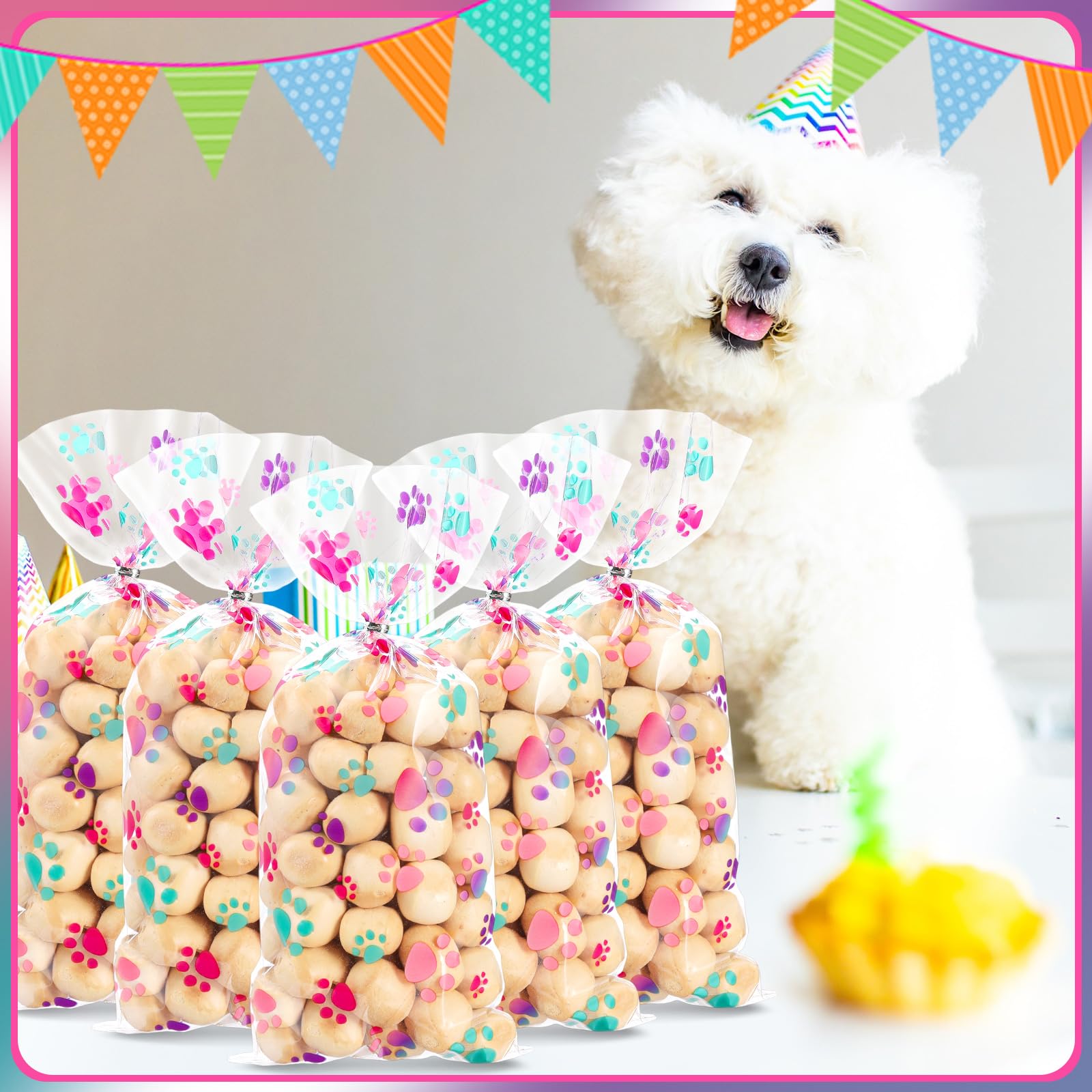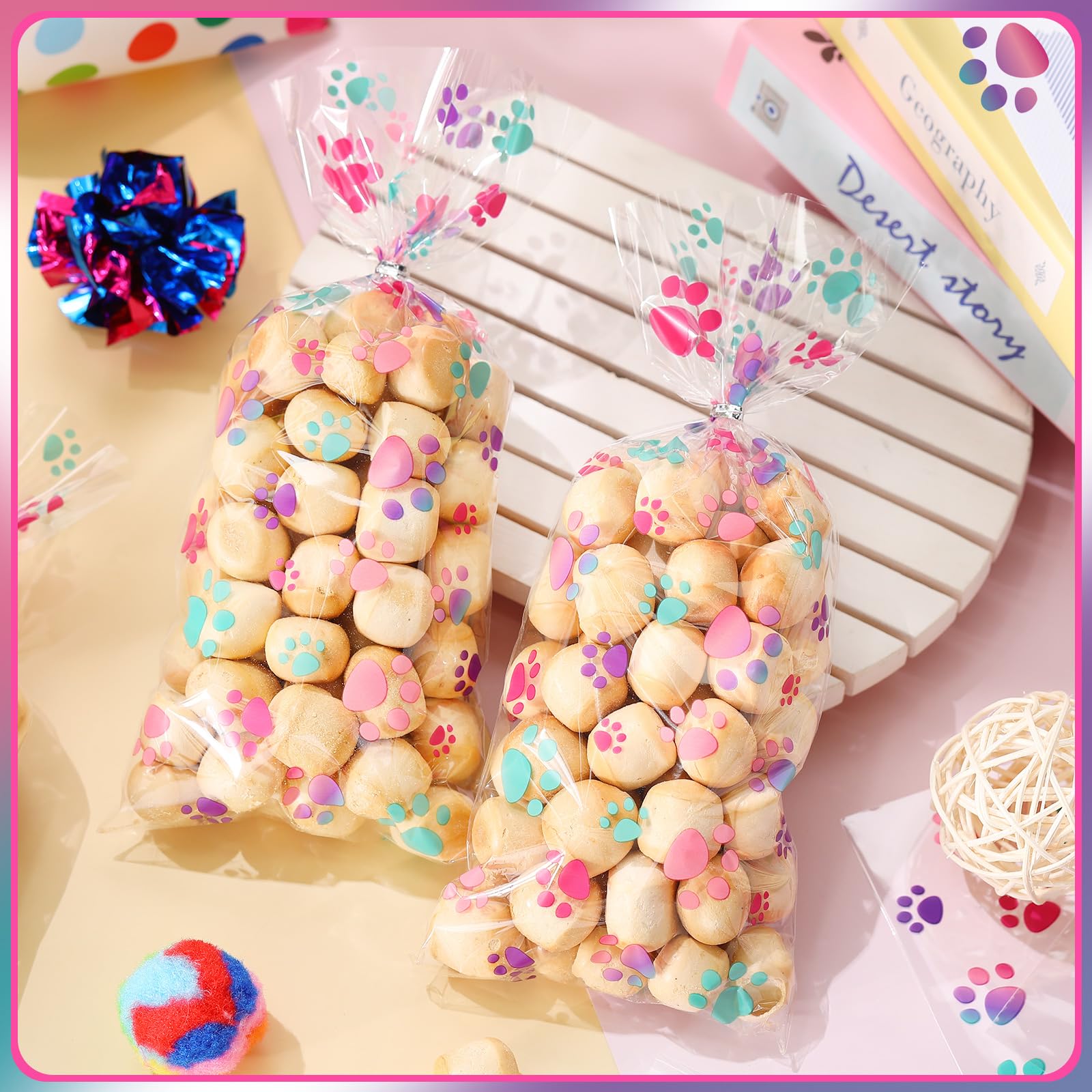Design: these cellophane bags are designed with paw patterns, which can add pet party atmosphere, catch both children and adults attention, cater to the interests and taste of children