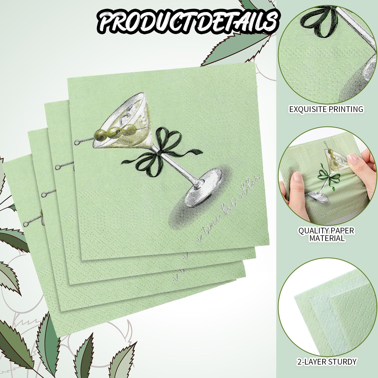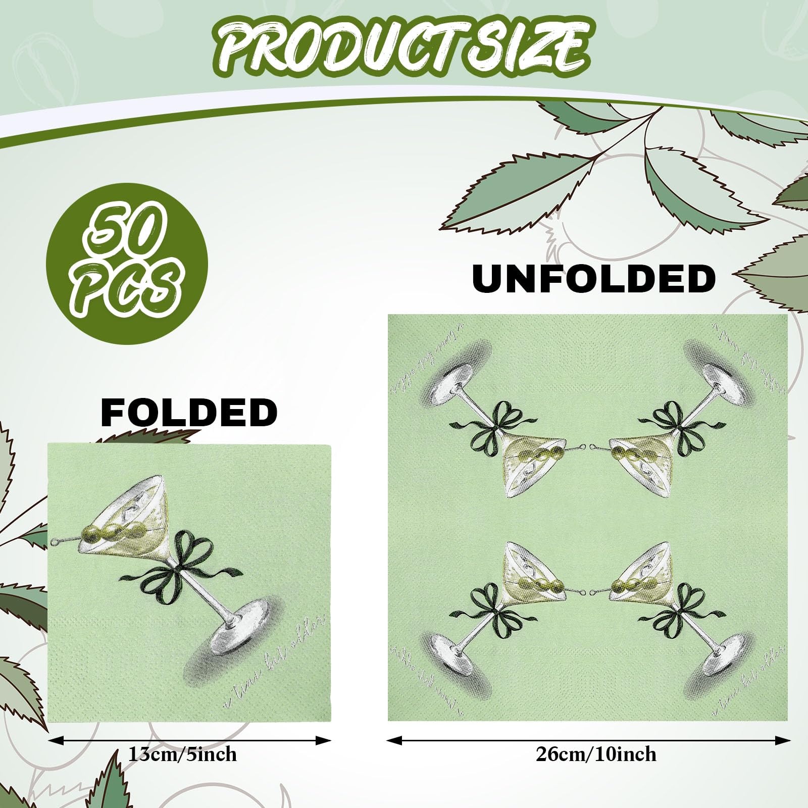 Package: with every pack offering 50 disposable napkins, the material, gorgeous design, and suitability for various occasions make these Martini napkins a valuable addition to your party essentials; Transform your parties with our Martini napkins that combine quality, style, and function flawlessly
