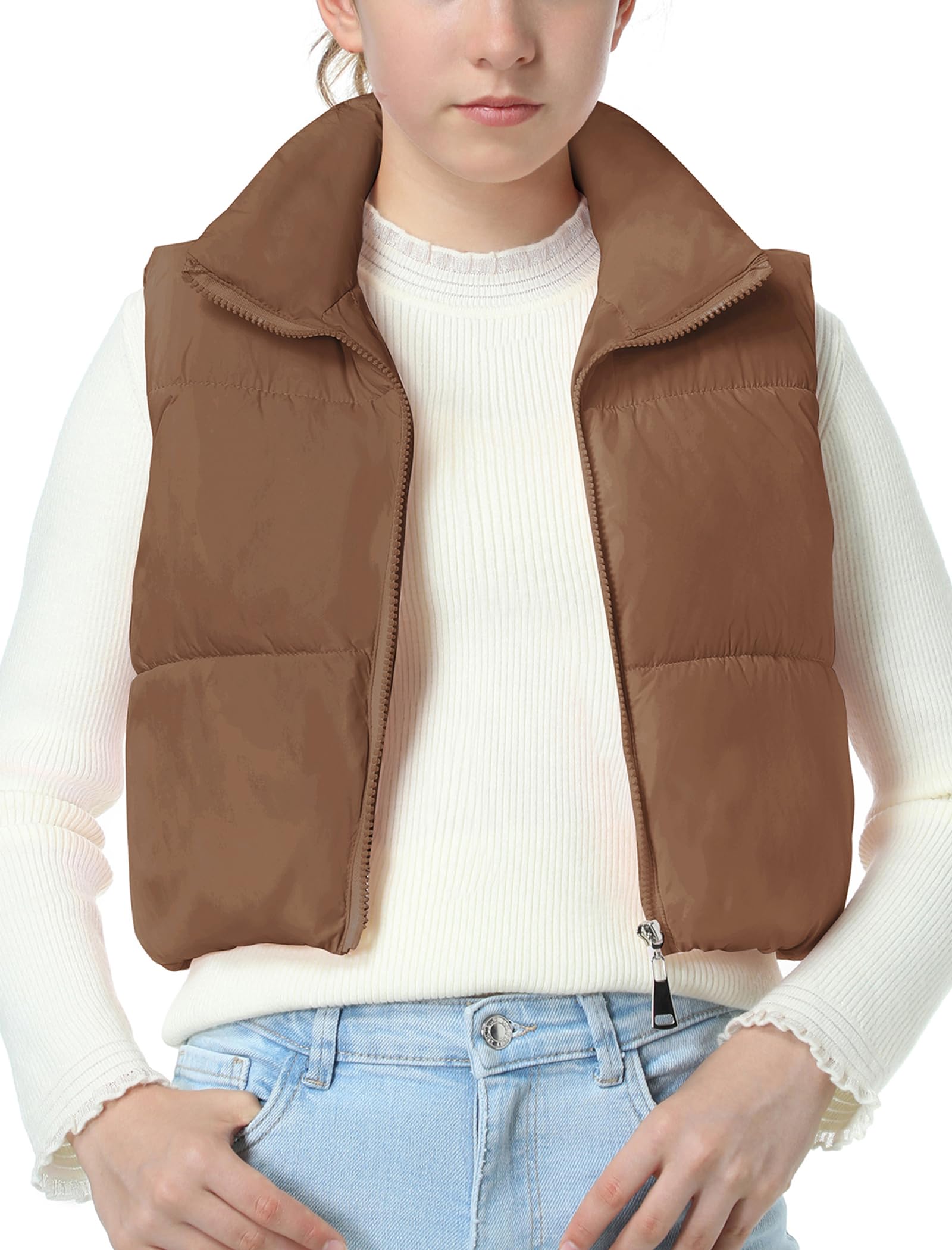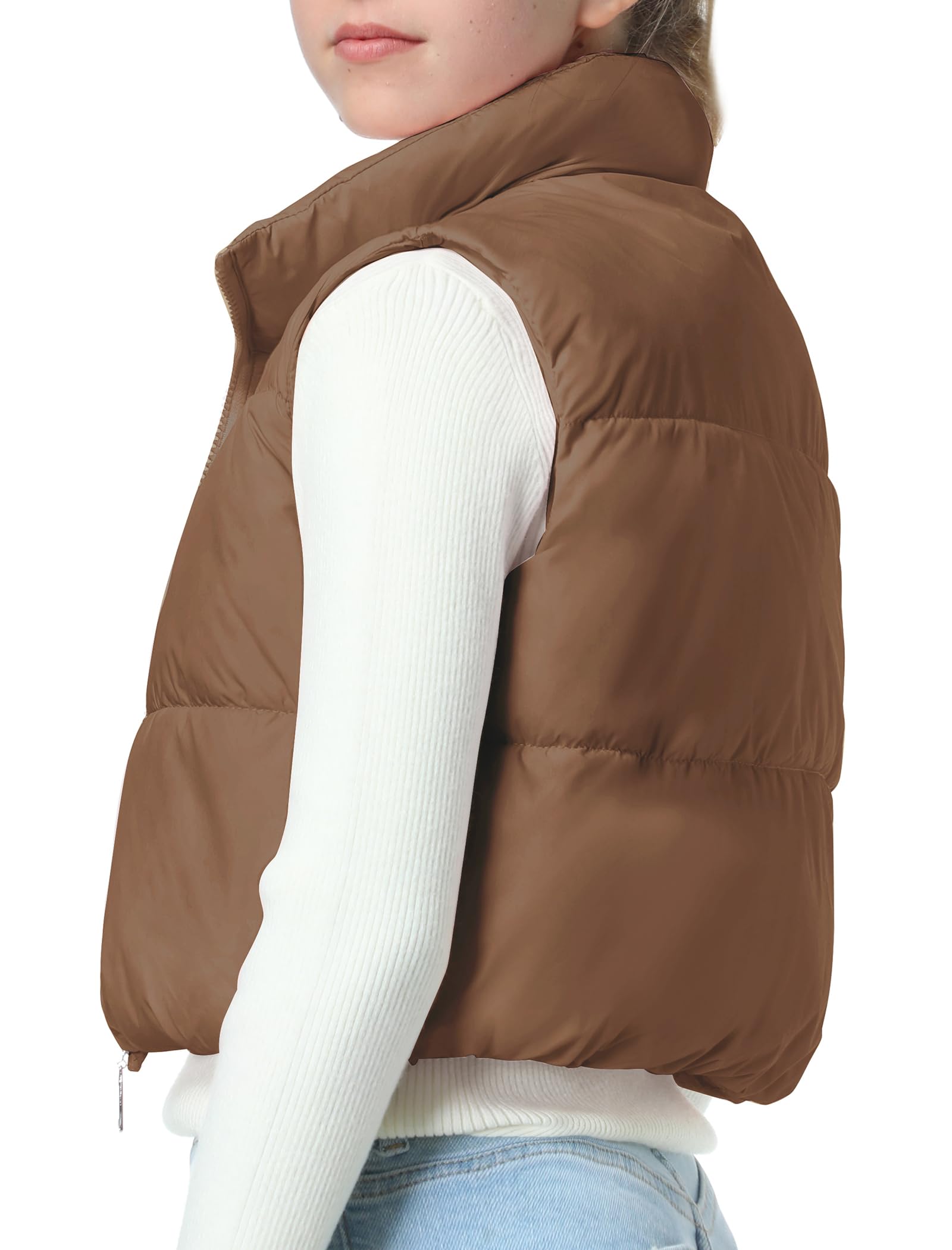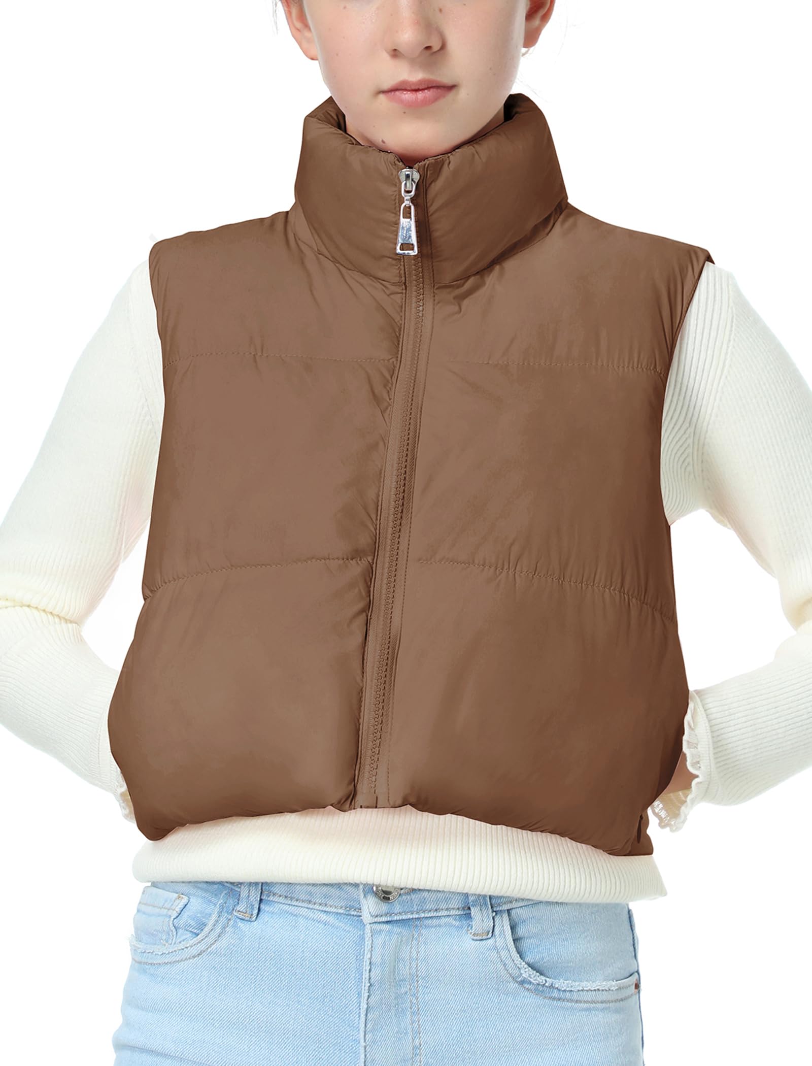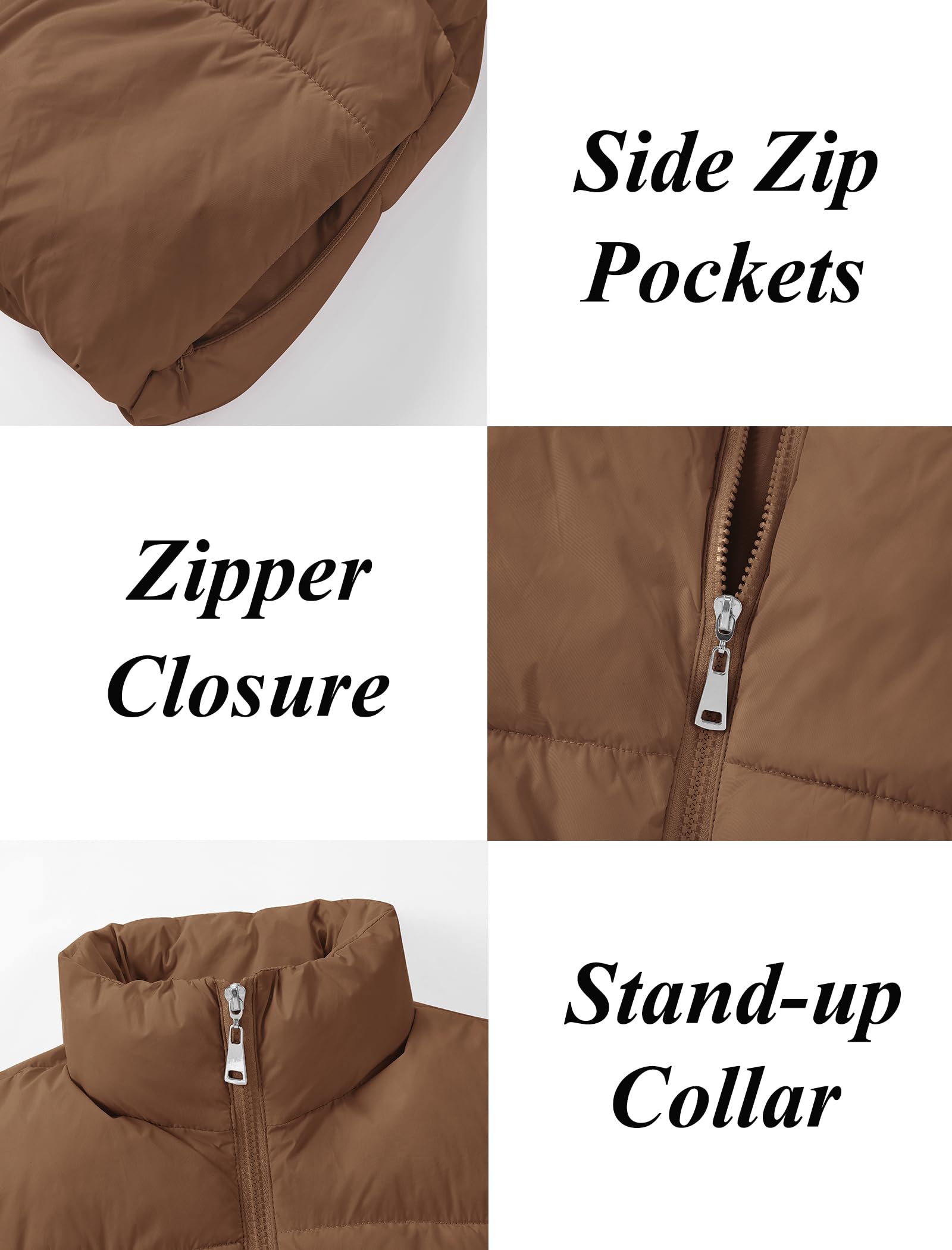 Puffer and Warm: The cropped vest has a sleeveless bodice with a smooth zipper. The stand collar traps heat and block cold to keep your neck warm. Two zipper pockets offer a cozy spot for your hands