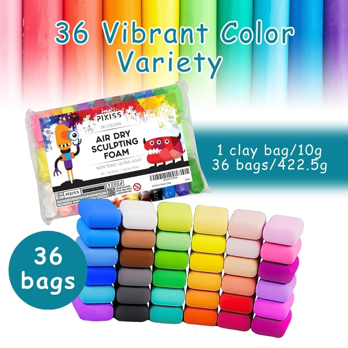 Vibrant Color Variety - Dive into a world of creativity with 36 bags of .53oz foam clay colors wide range of bright and captivating shades, essential for all your crafting needs.