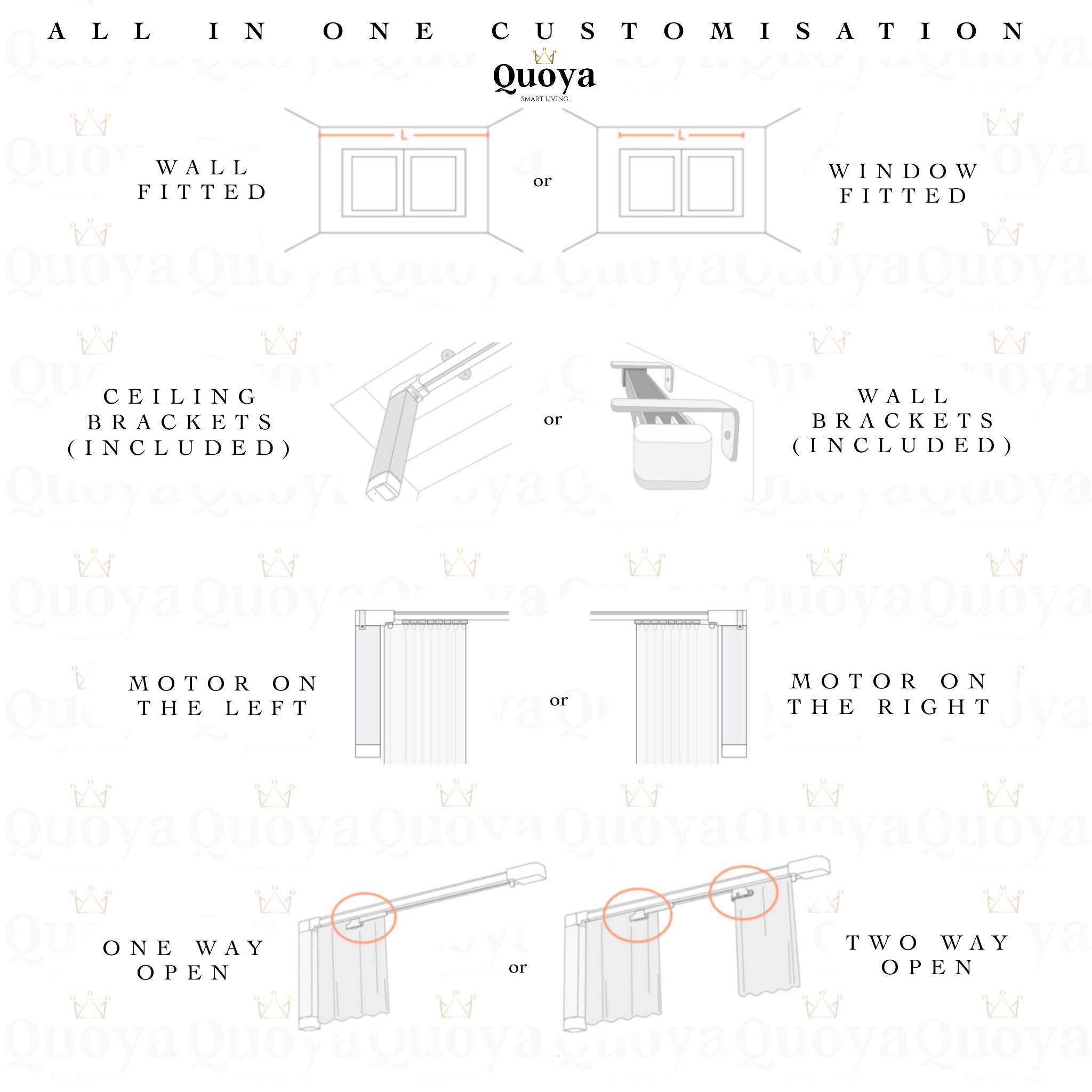 【QUOYA Smart Electric Curtain Range】 Tailored for every home and lifestyle: 1. ❮QL500 offers powerful, heavy-duty performance with a reinforced track system designed for precision and durability – ideal for large or heavy curtains❯ 2.❮QL600/AT5810 delivers a sleek, ultra-slim design that blends seamlessly into modern interiors for a clean, minimalist look❯ 3.❮BL01/SW01 features next-generation beltless technology for a fast, tool-free setup – no installation, no cutting, just clip on and go❯