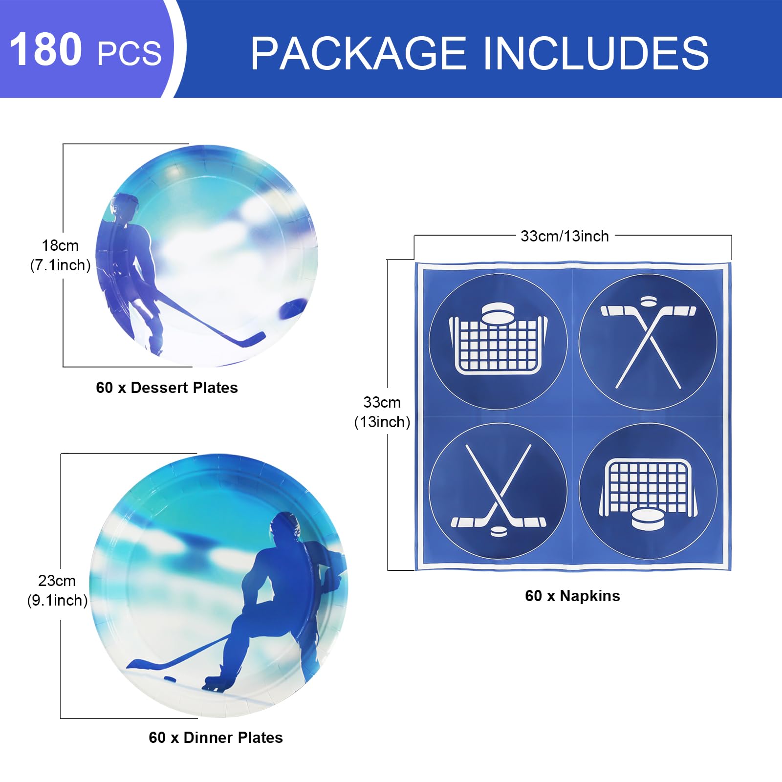 180 Pcs Plates and Napkins Set: This set includes 60 dinner plates (9.1"), 60 dessert plates (7.1"), and 60 napkins, perfect for serving up to 60 guests. From casual dinners to large celebrations, this all-in-one solution ensures a stylish, hassle-free dining experience every time