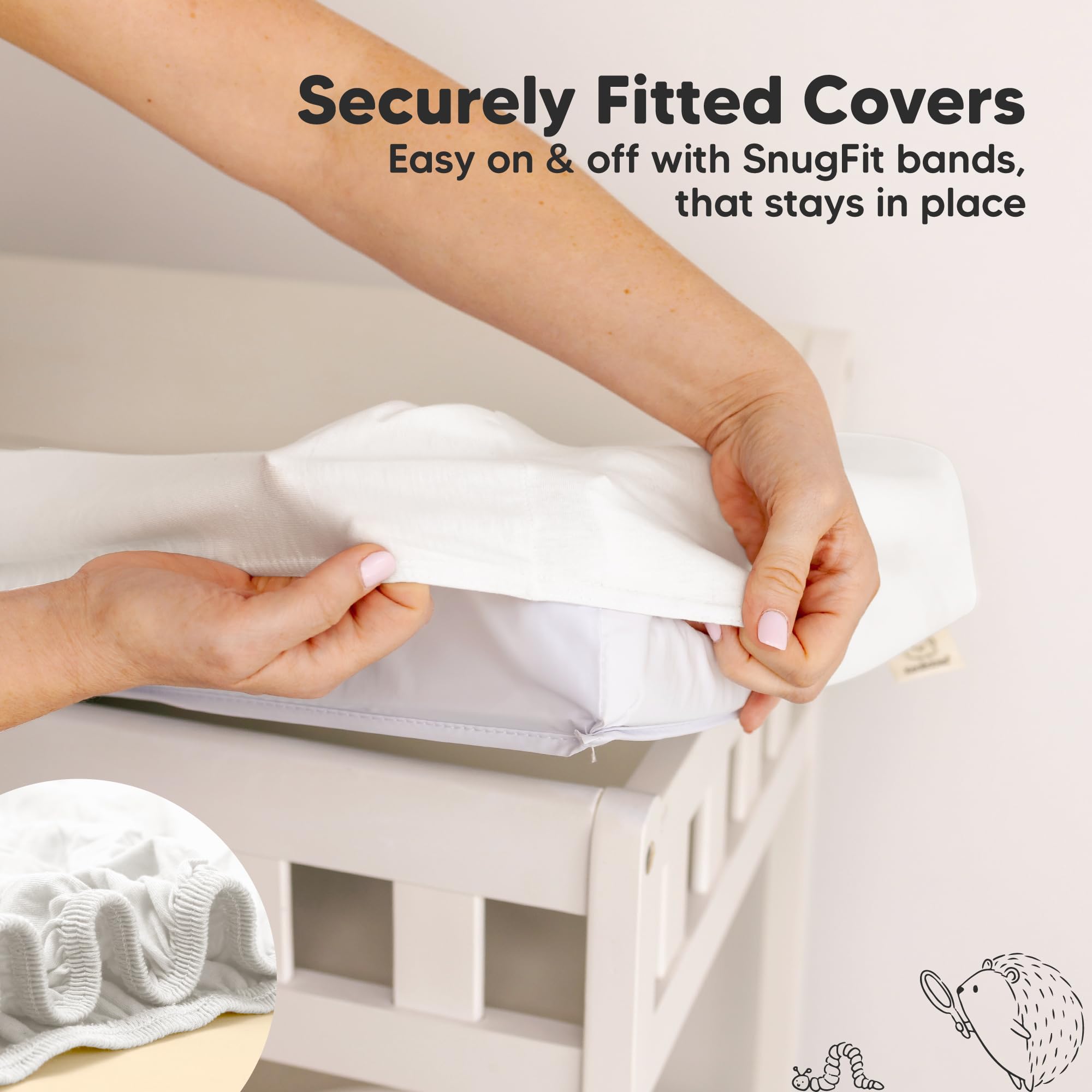 Fits Like a Hug - The SnugFit bands keep covers snug as a hug. Easy on and off, these baby changing pad cover waterproof, stay put like they’re determined to stay in place, staying smooth and secure, ready for every wiggle your baby throws their way.