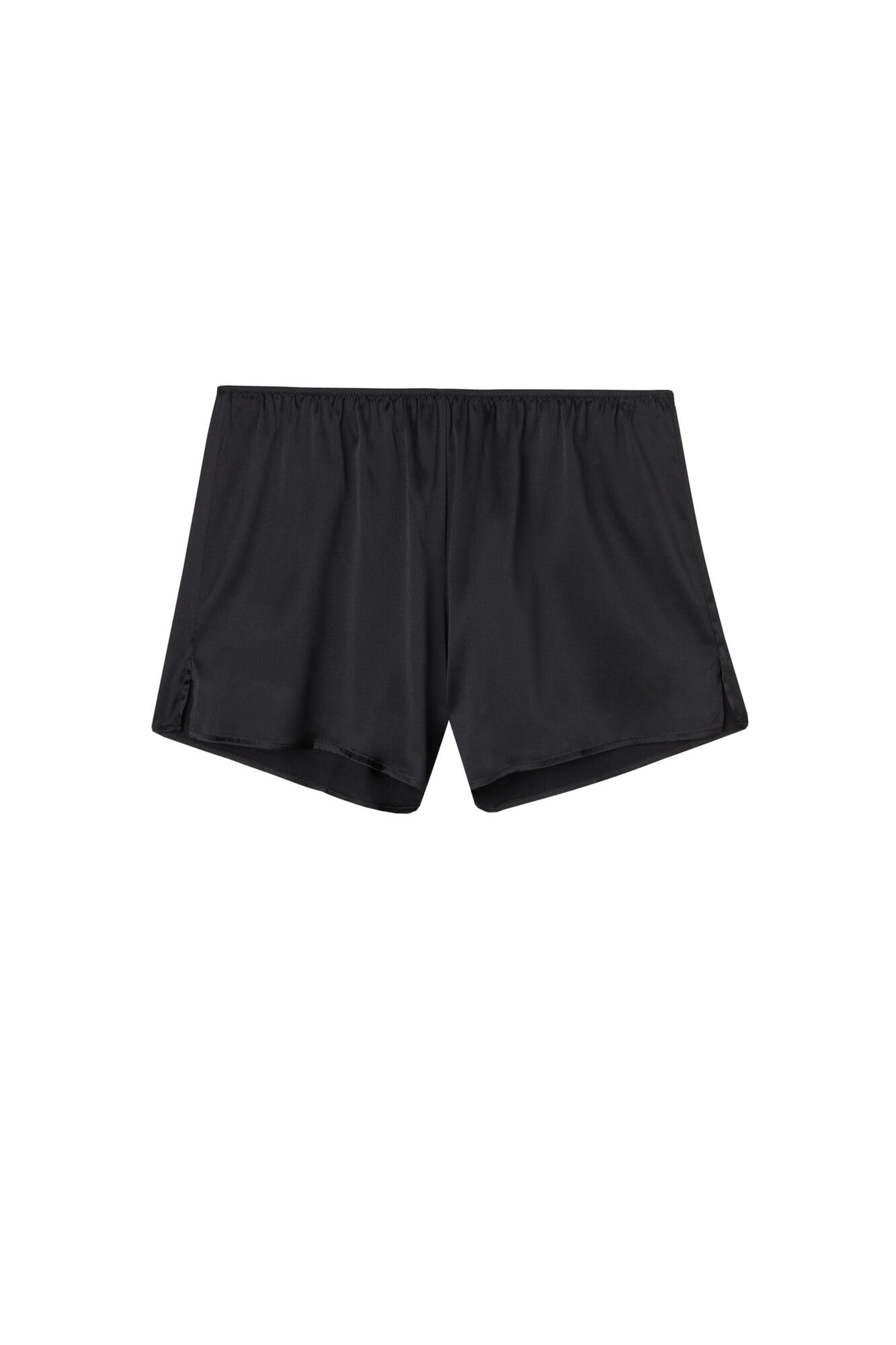 Description Shorts in light stretch silk satin with small side slits. Ideal to wear as a refined pair of shorts for night or as elegant loungewear.