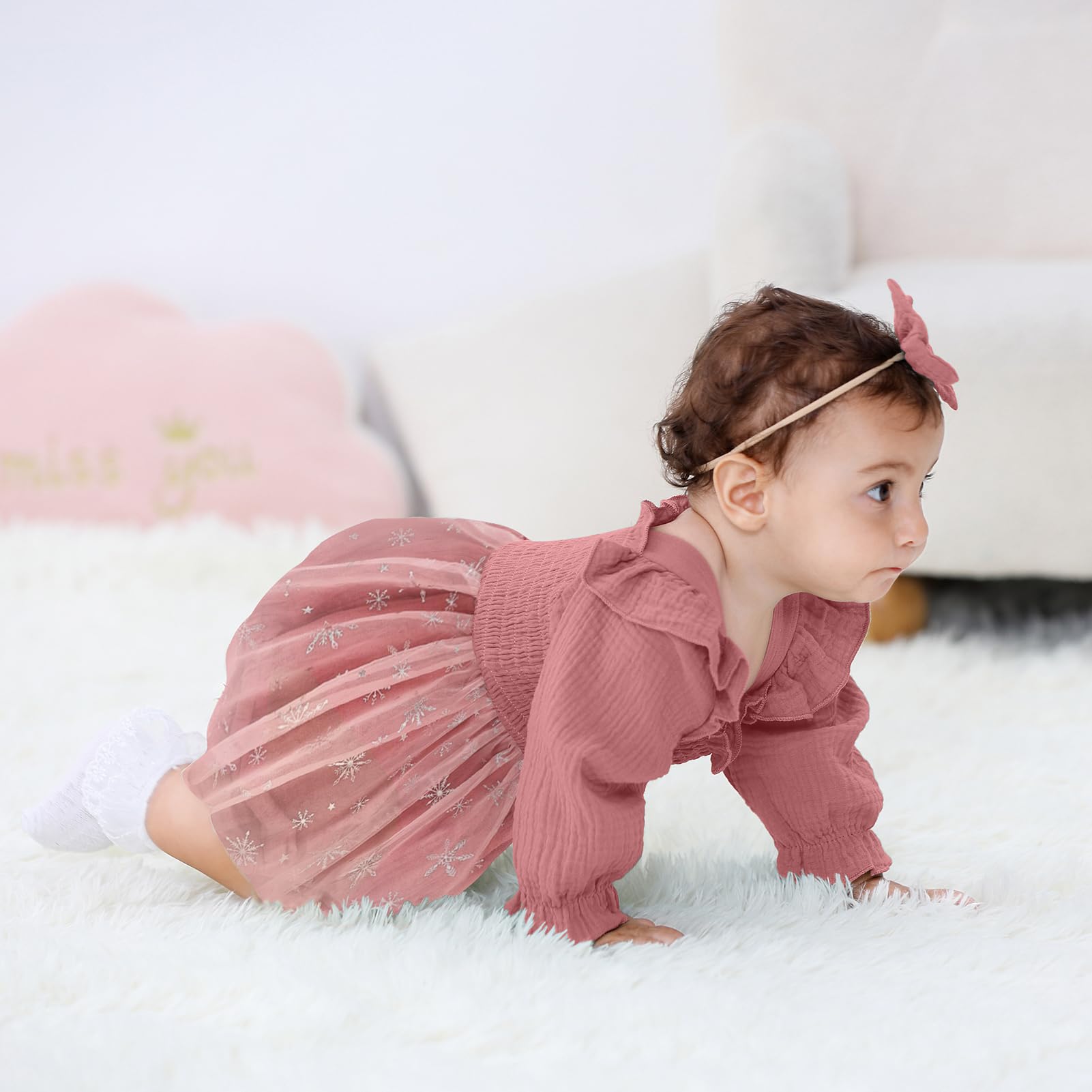 Material: Baby girls birthday romper made of Cotton+tulle fabric, super soft and breathable, comfortable absorbent to wear, friendly to baby's skin, cares for newborns too.