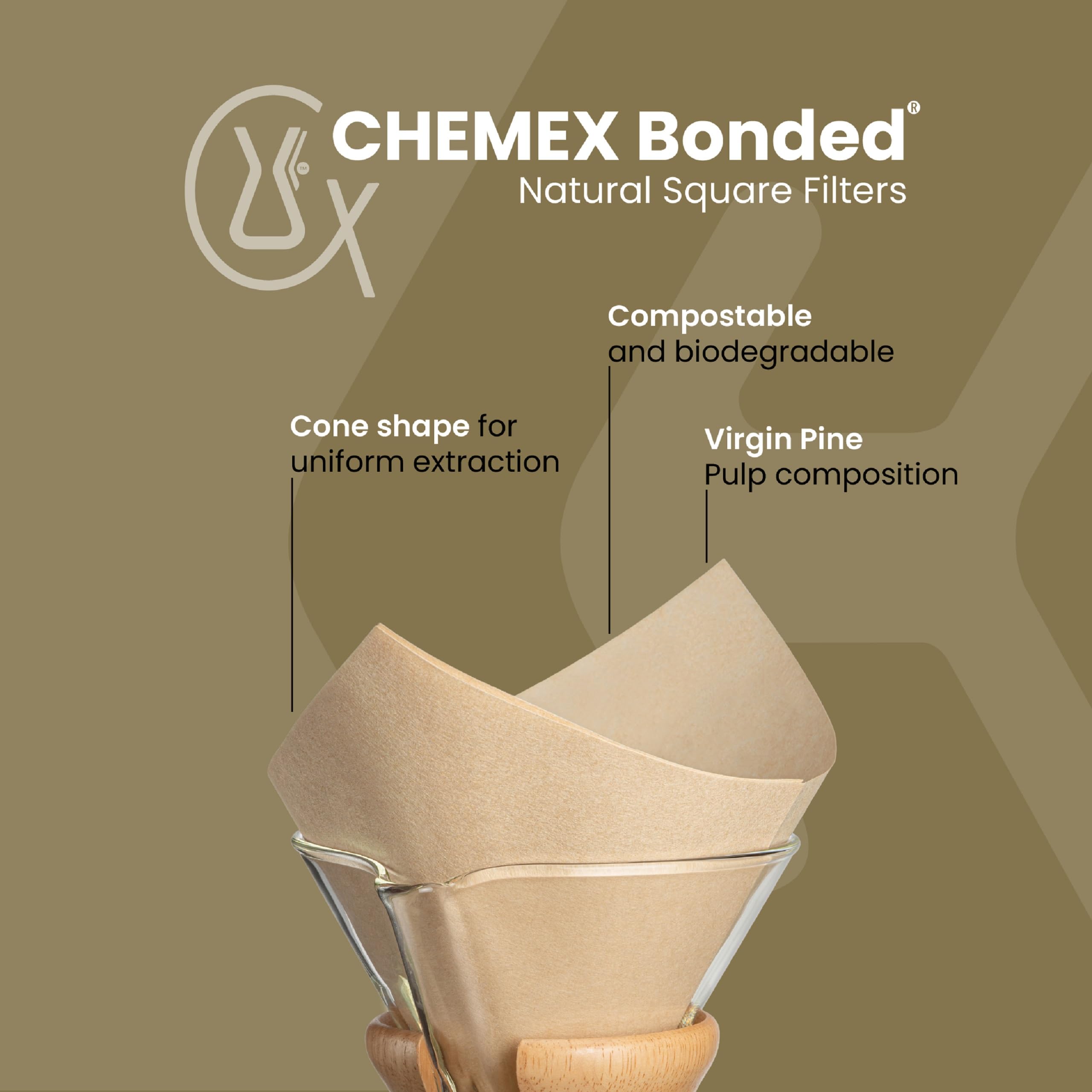 Step 1: Fold the CHEMEX filter in half. Then fold in half again, bringing the two corners together. Place your finger between the 3rd and 4th layer and open into a funnel.