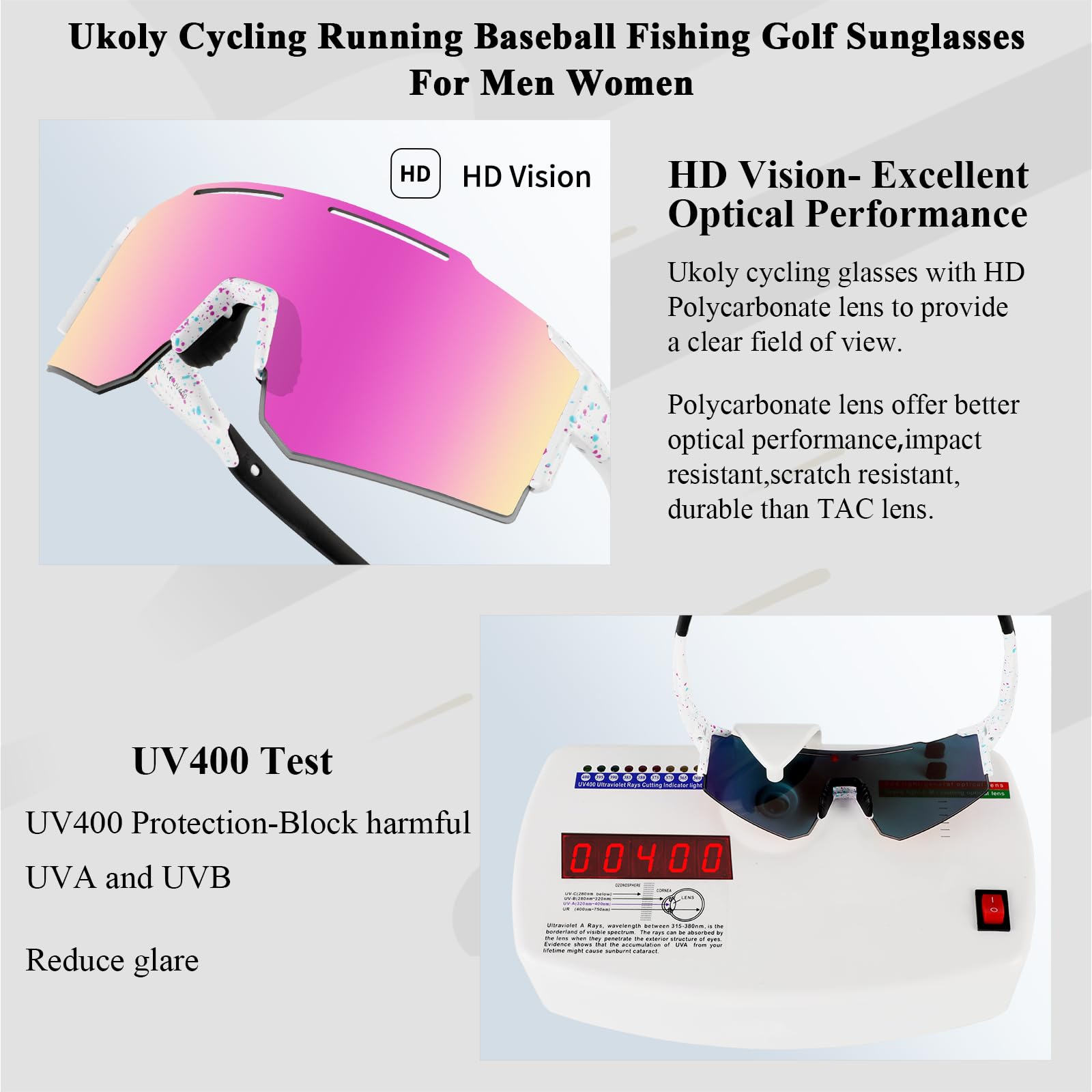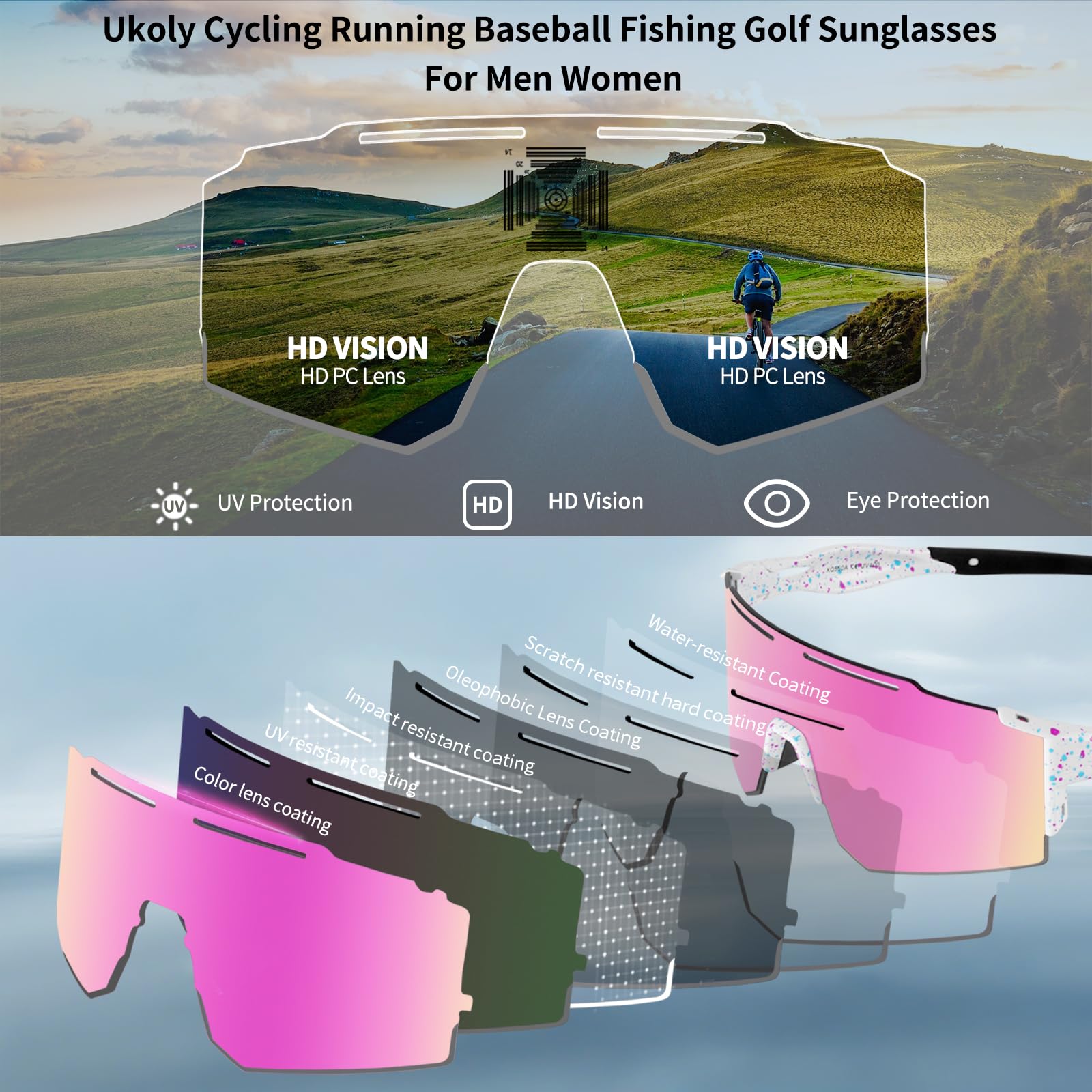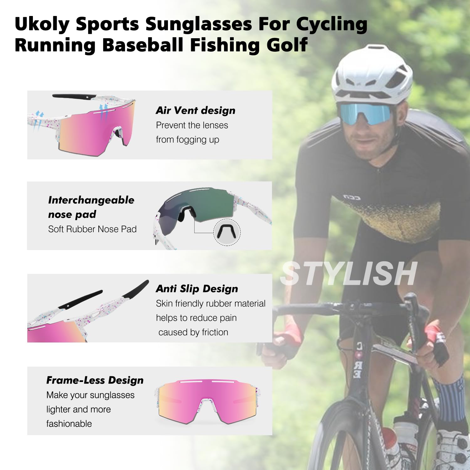 Ukoly Cycling Sunglasses with Interchangeable Nose Pad Men Women,Sports Sunglasses,Fishing Baseball Glasses