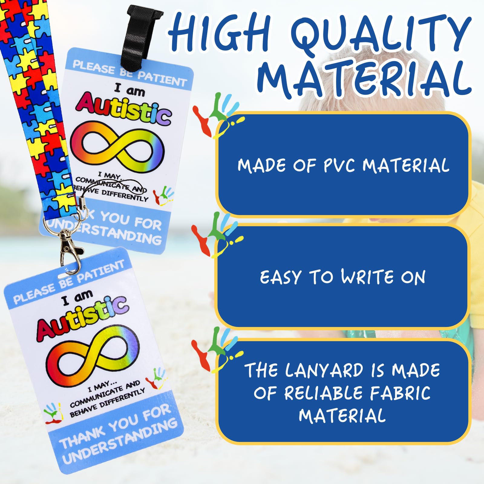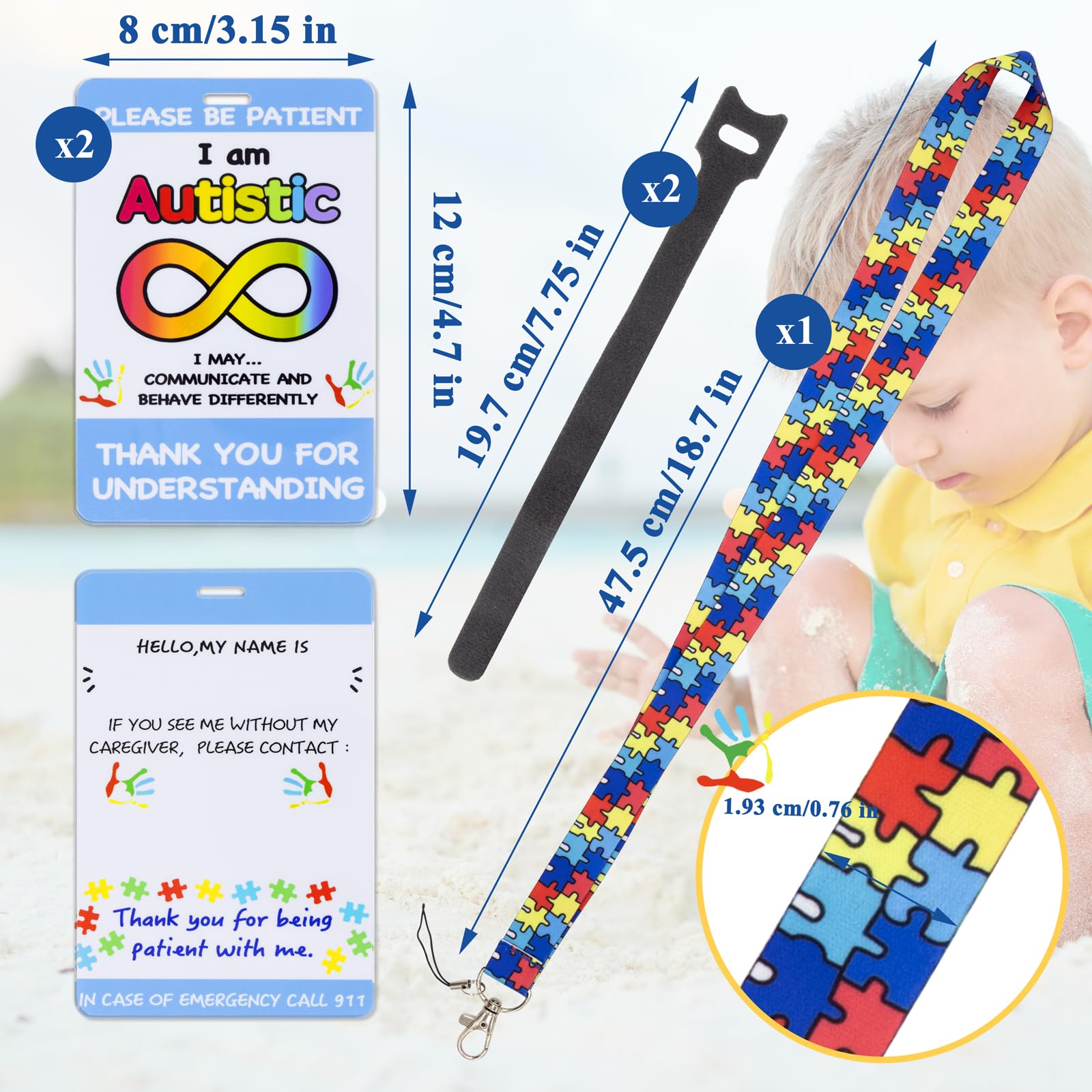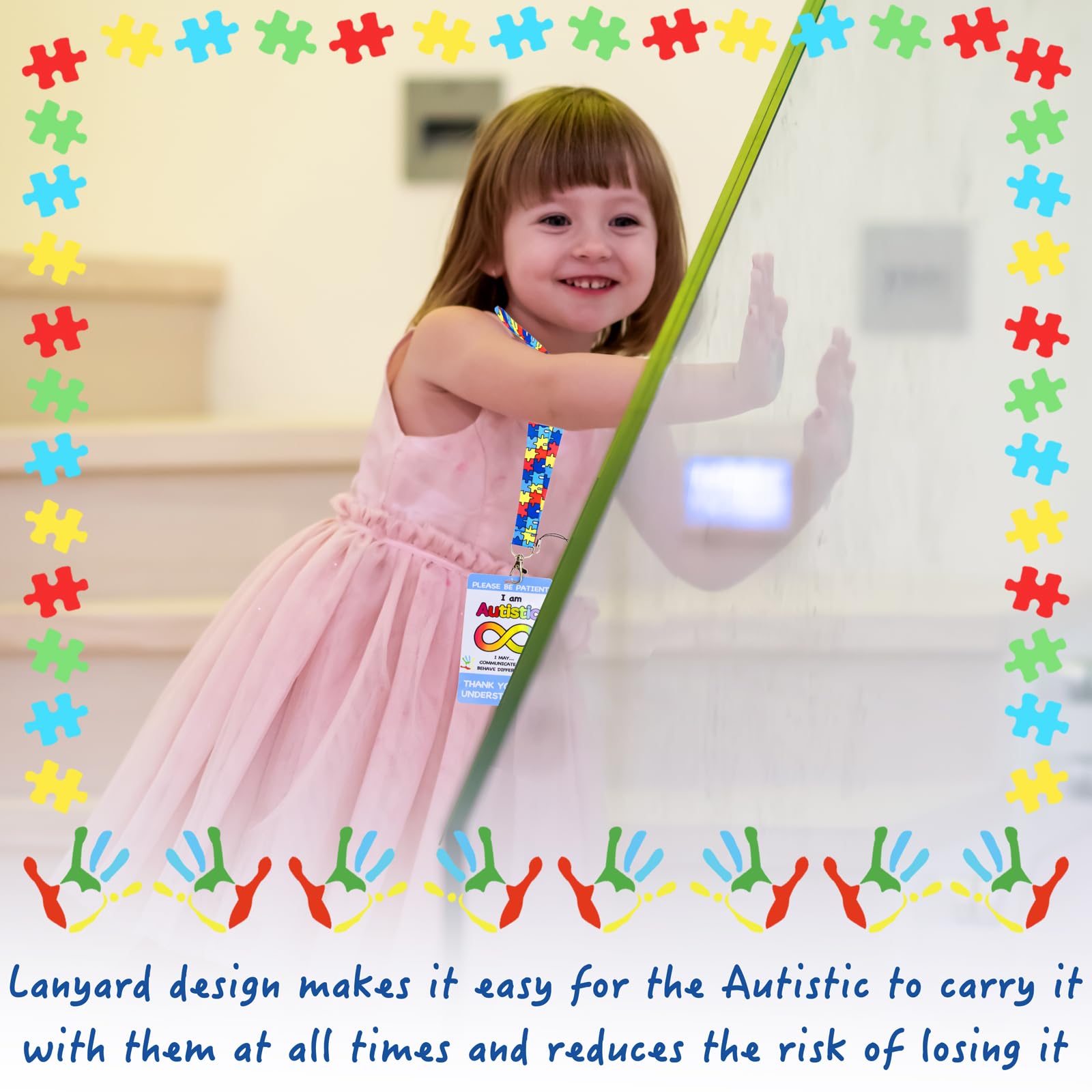 What will you get: You will get 2 autism safety tag cards, a lanyard and 2 hook and loops for your daily use. Perfect for people with autism and their teachers, family and friends.
