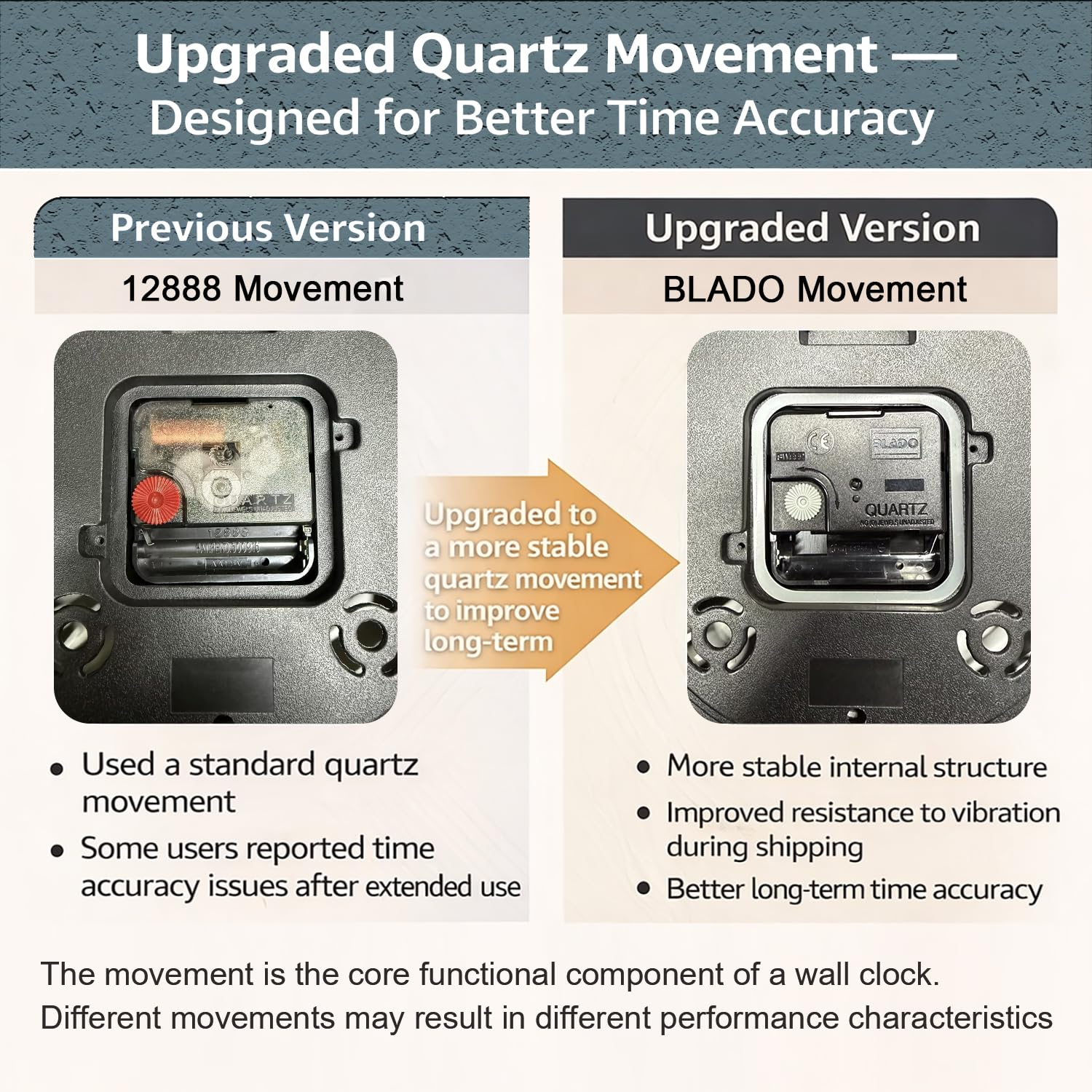 Upgraded BLADO Silent Quartz Movement: Features a BLADO silent quartz movement for more stable and accurate timekeeping. Enhanced vibration resistance ensures quiet, reliable performance for both indoor and outdoor use. (1 AA battery, not included)