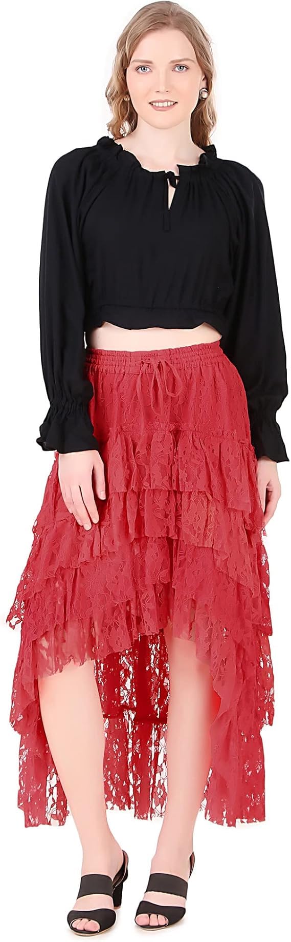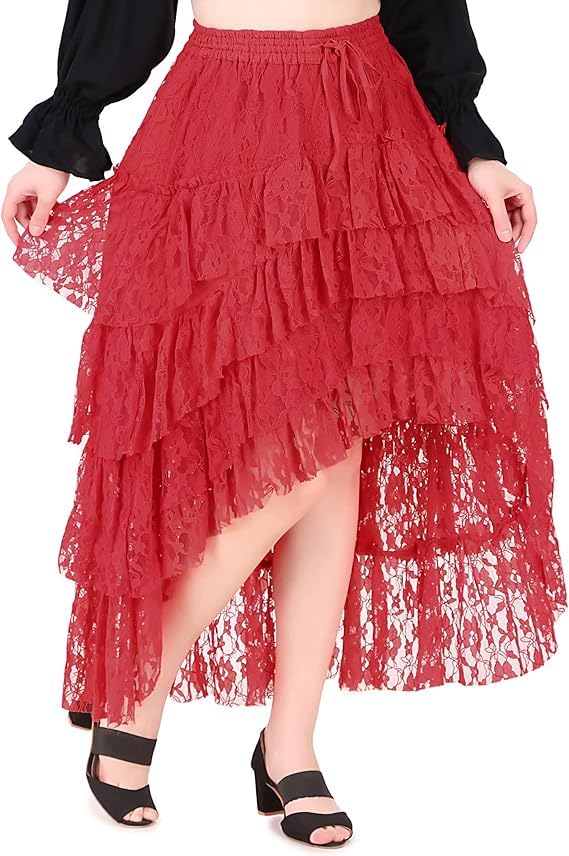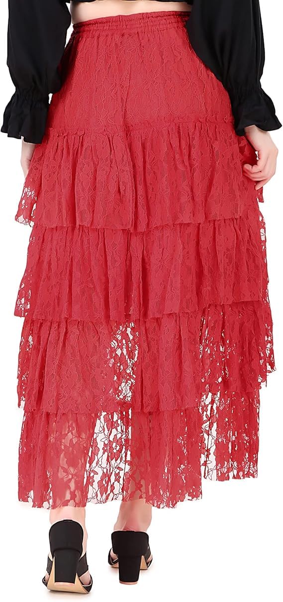 Eye-Catching Ruffles: Featuring four tiers of ruffles, this skirt adds a dramatic flair to your costume. The playful movement of the ruffles creates a stunning silhouette, making it a standout piece for any costume ensemble.