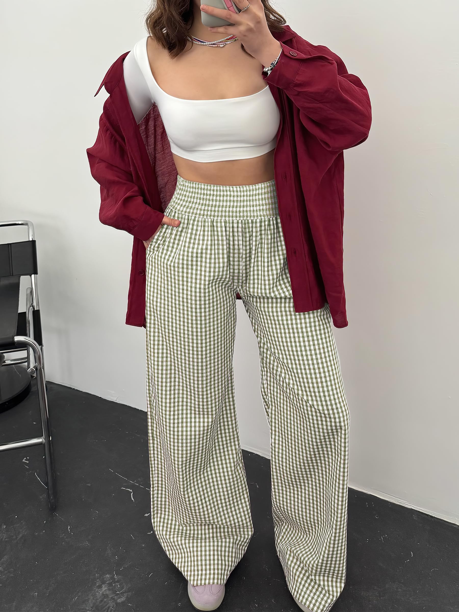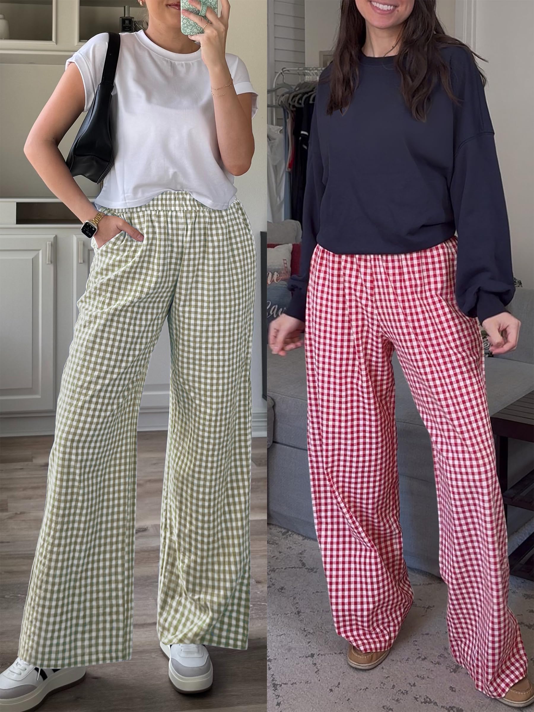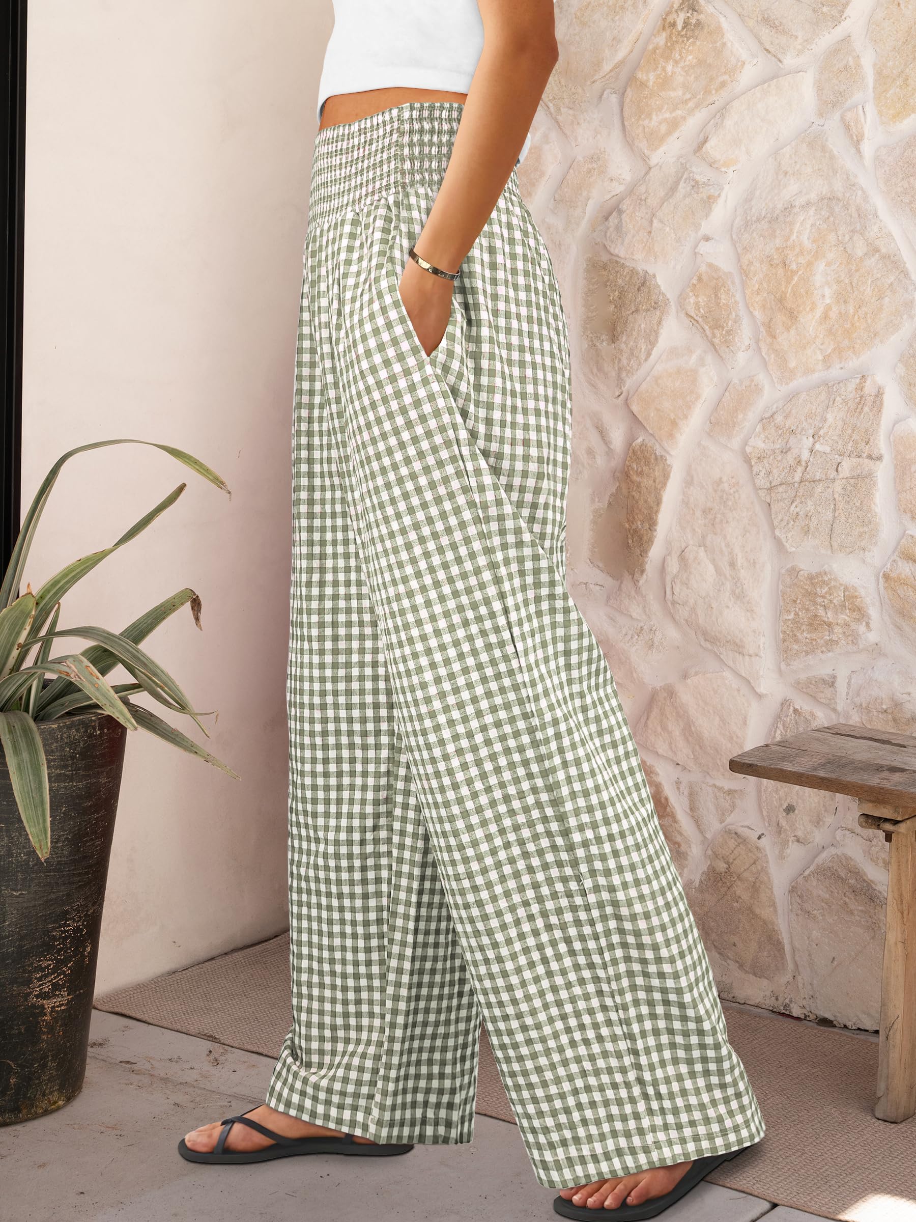 Features - Women's casual palazzo pants, smocked elastic waist, wide leg, long, plaid&stripe design, soft and breathable. Our pants are perfect for daily wear, lounging at home, hanging around outside, traveling, vacation, or office work. Easily matched with slippers, heels or sneakers.