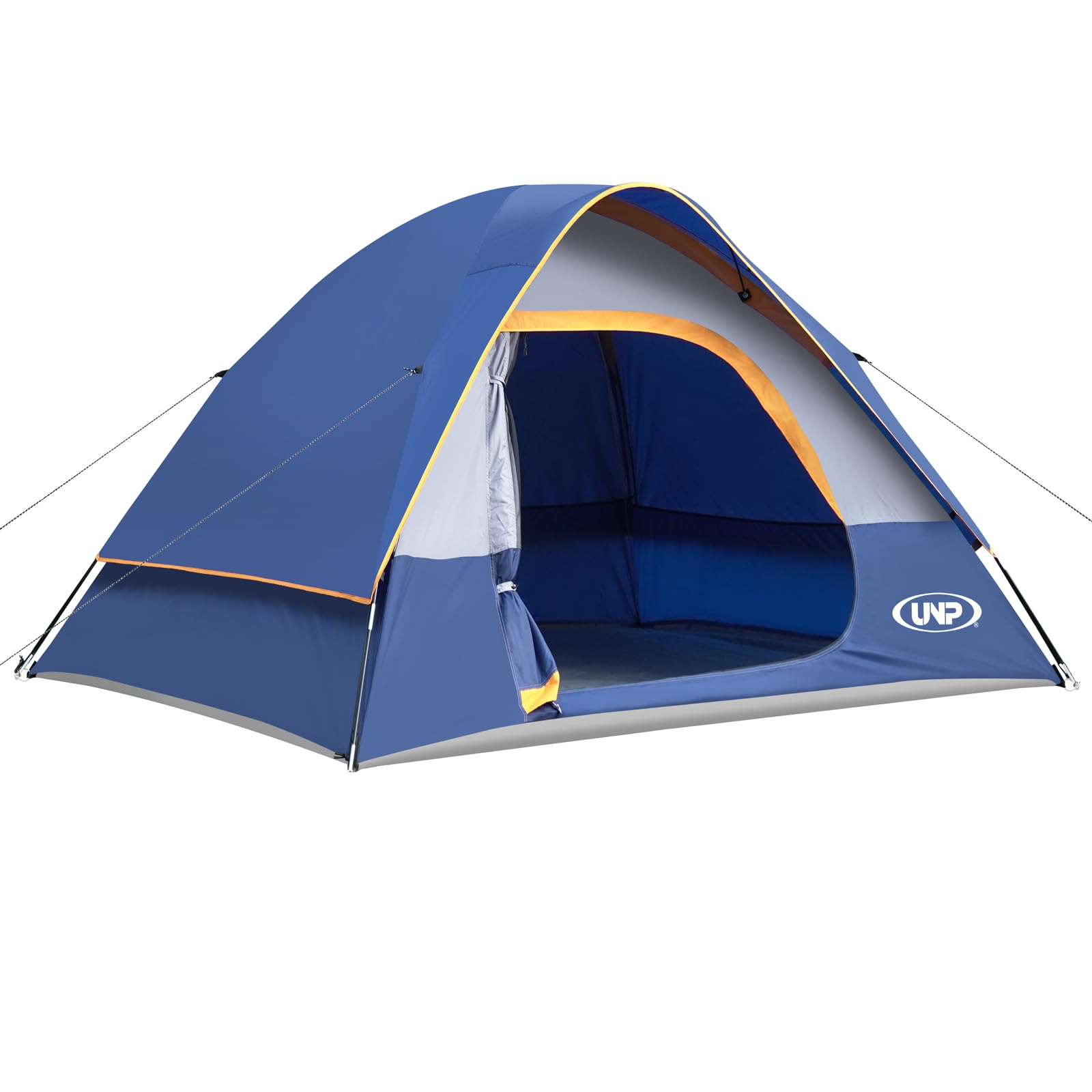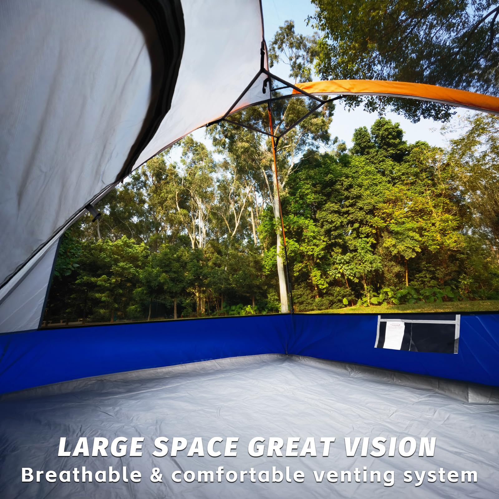 Windproof & Rainproof : The camping tent is made of stronger tear-resistant polyester. It comes with a removable rainfly, the special eave and zippers designed for keeping the rain outside the tent. The ropes of tent and piles ensure safety and stability