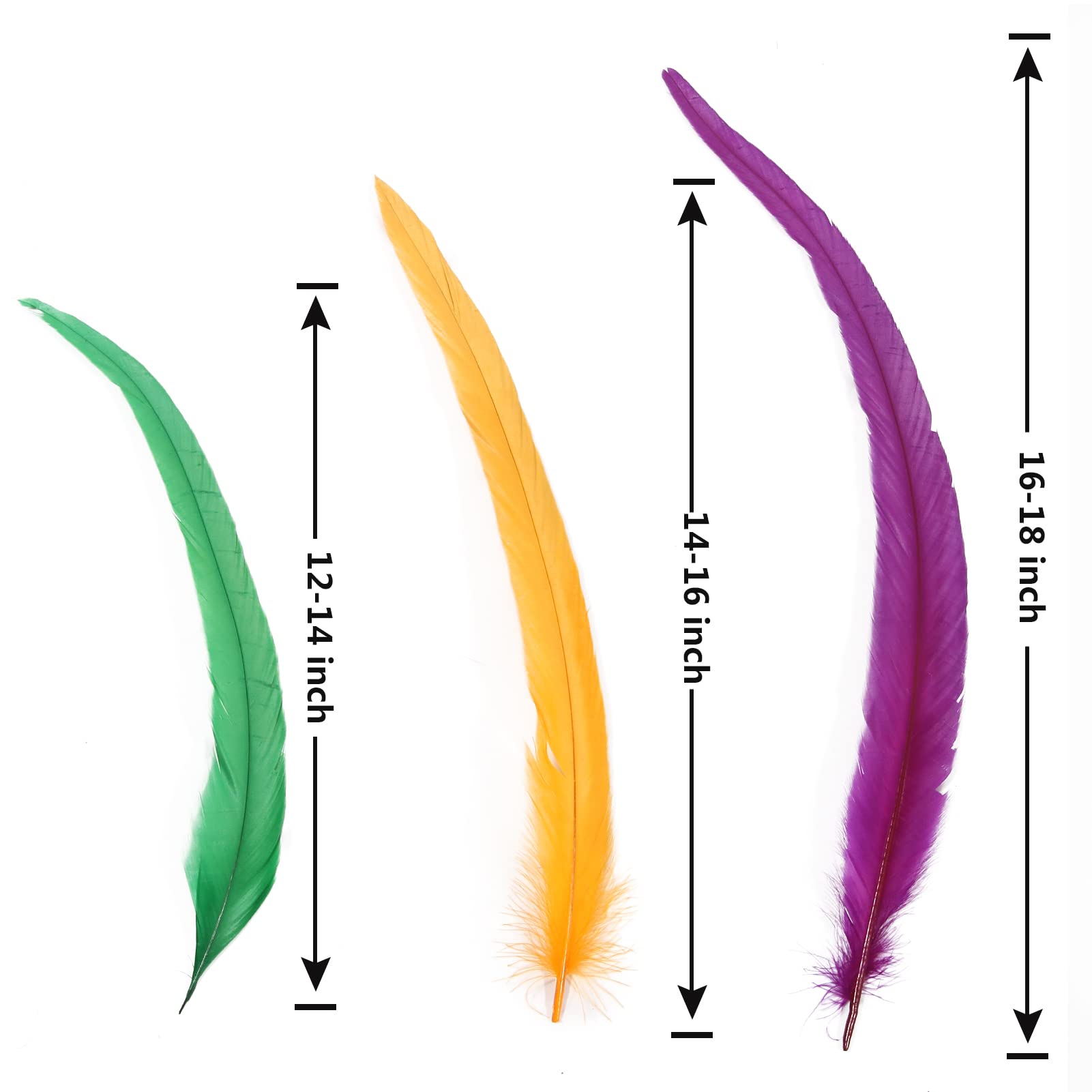 ❤️Feather size: There are four sizes for you to choose,size is divided into 12-14inch (30-35cm),12-14inch(35-40cm),16-18inch(40-45cm).These are real rooster tail feathers, each one is unique and the shape may vary.