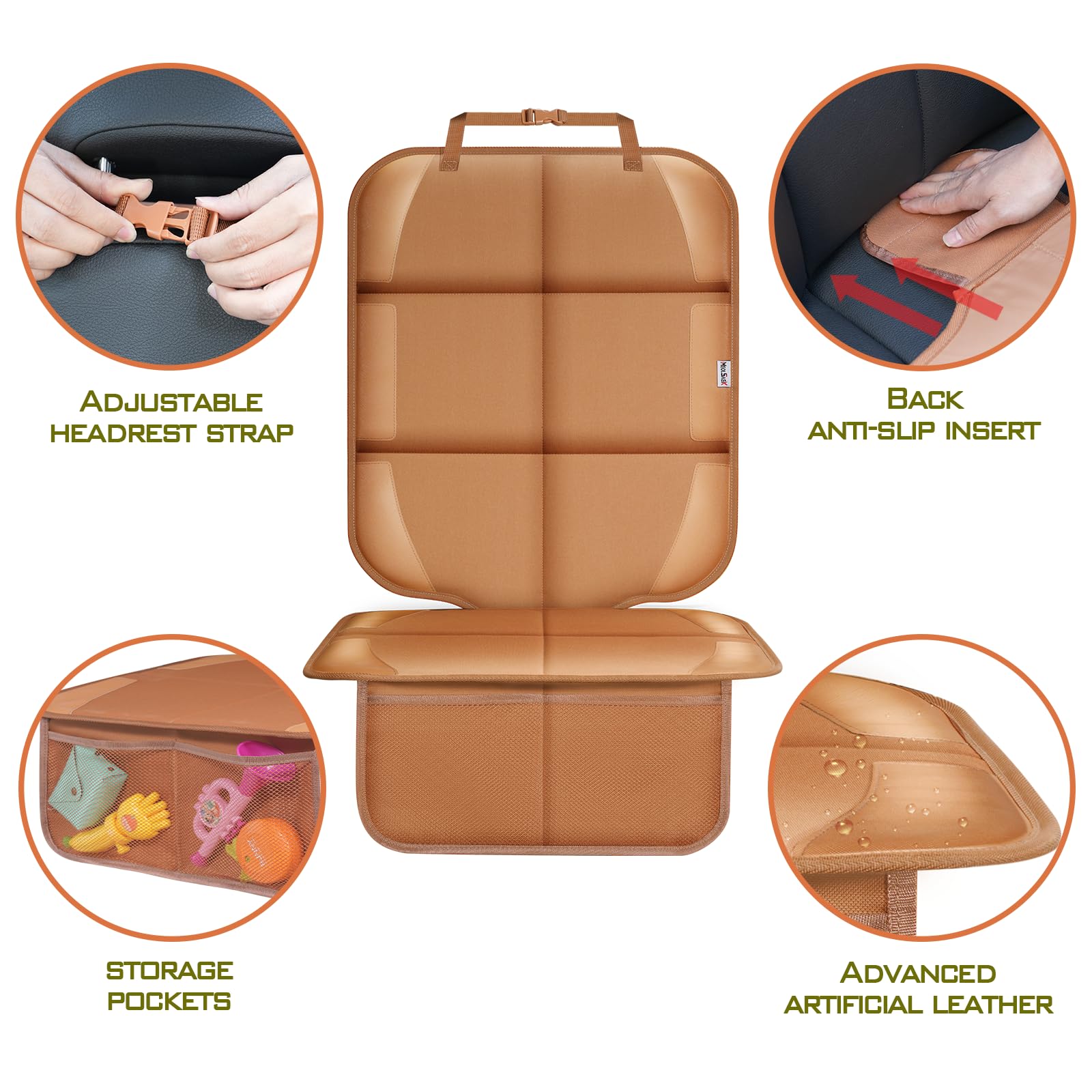 【Protect Seat from Infant Booster Imprint】- Car seat protector made of 600D fabric and PVC corner. Foam padding inside, good resilience. Installed under the baby car seat to protect seat against wear and tear, effectively extend the life of the car seat