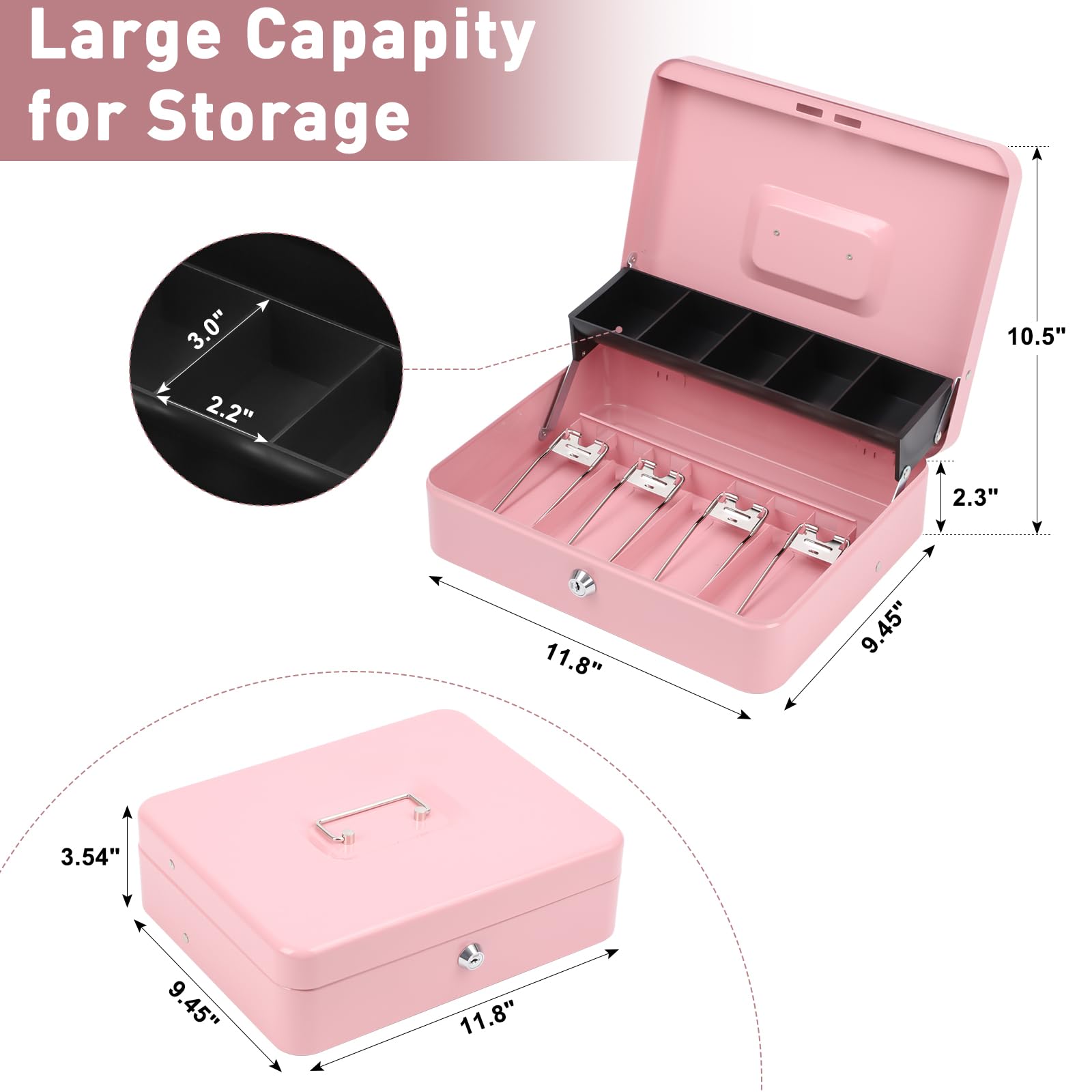 SIZE AND COLOR: 11.81"x 9.45"x 3.54" (300*240*90mm), pink. Perfect safe lock box for festivals. Smaller than some but big enough to store all the cash you need, it’s the perfect size for traveling and daily using