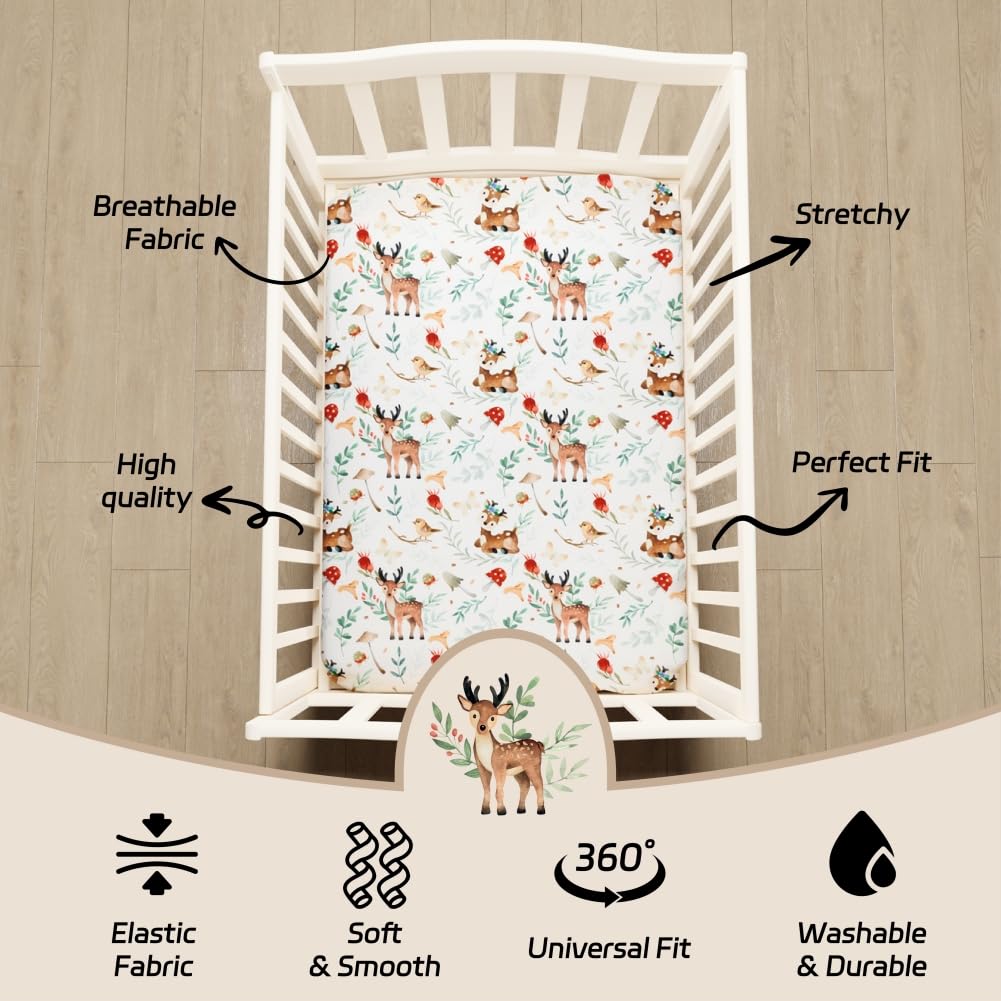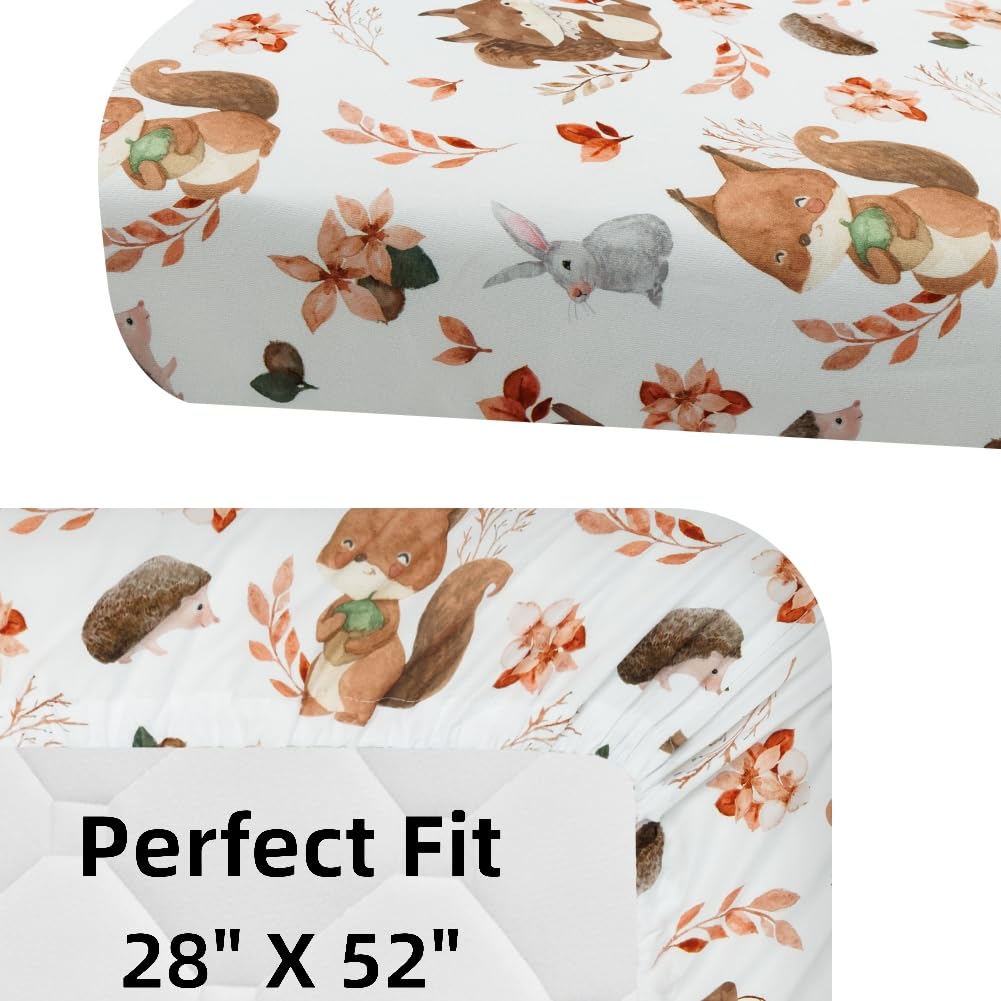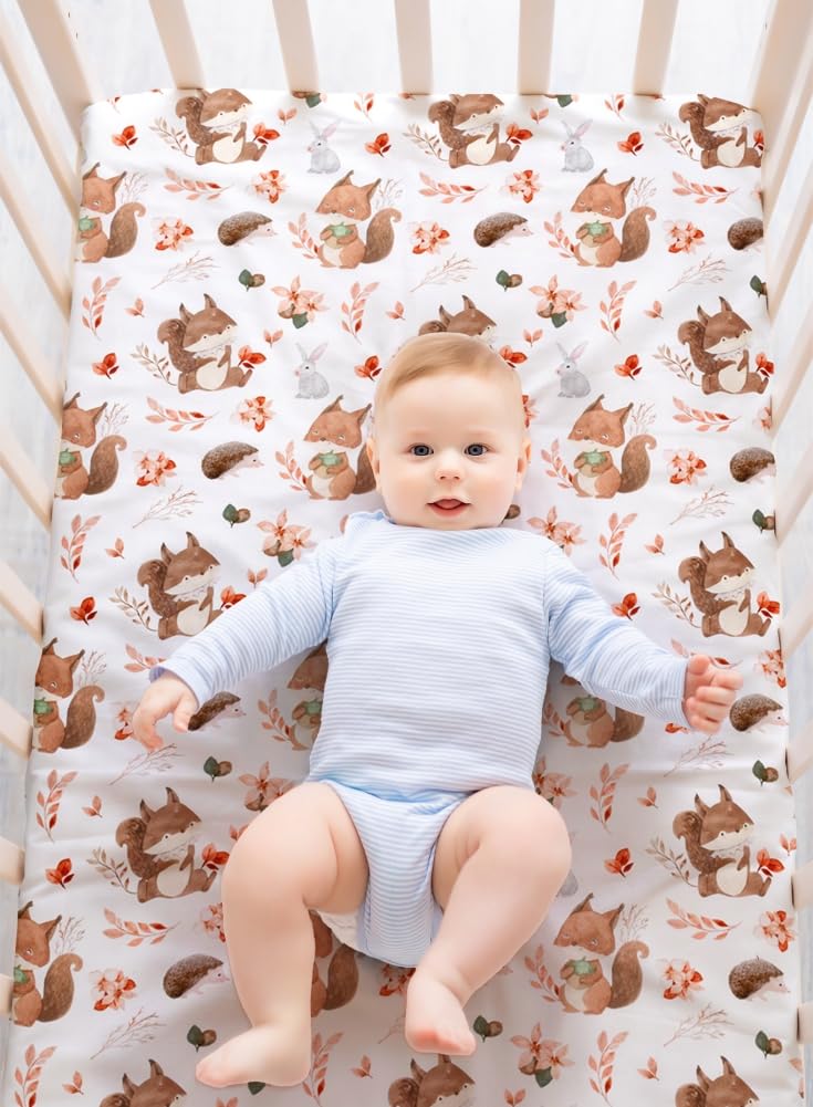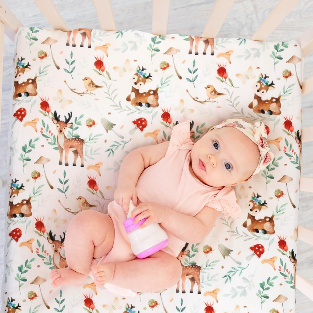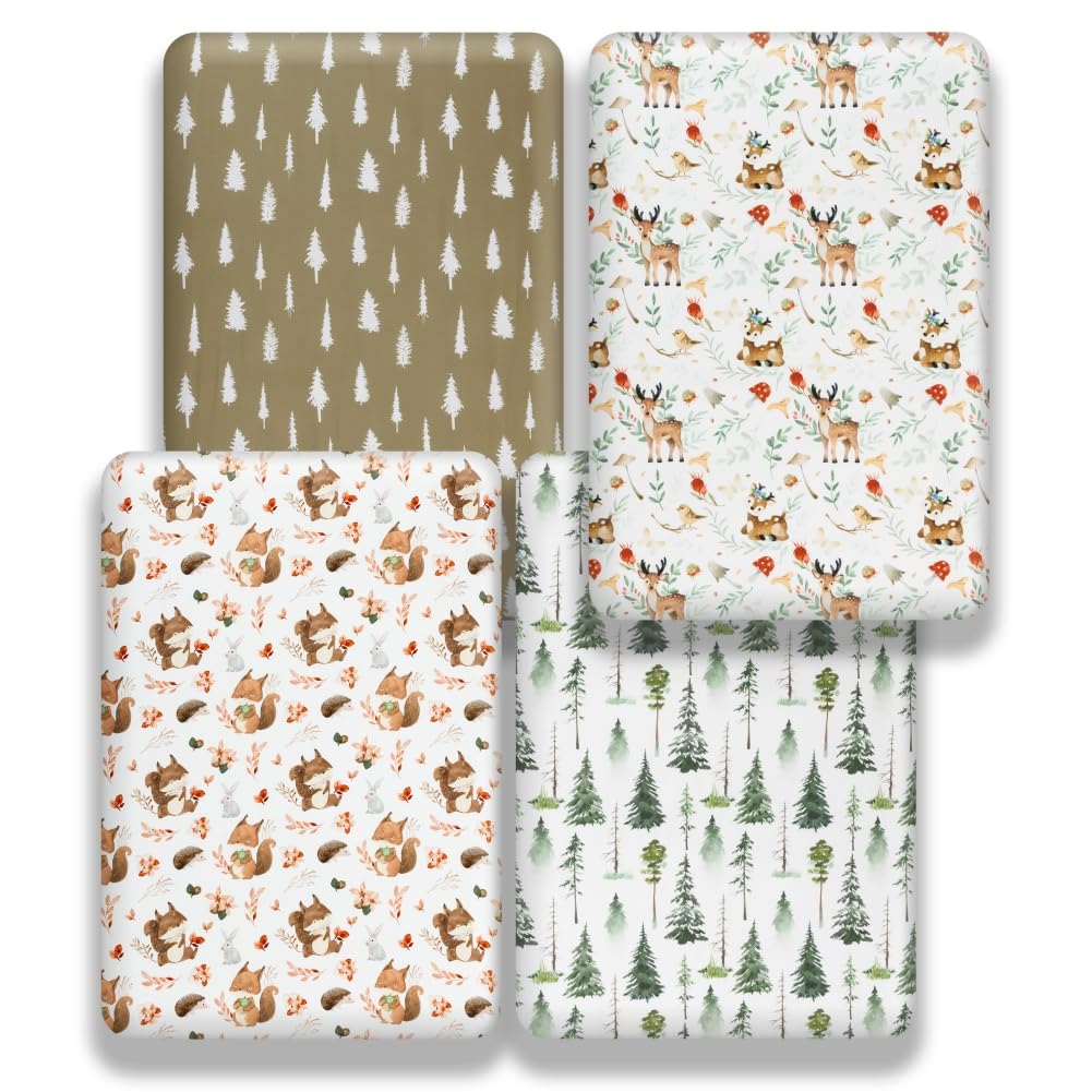 4 PACK VALUED SET: The woodland themed crib sheets set included 4 pack baby crib sheets with different colors and designs. You will have enough cribs sheets to replaces once one even two or three during washing, perfect for any nursery, for boys or girls! Buying 4 different kinds of crib sheets as a set than buying them one by one will save your money and time